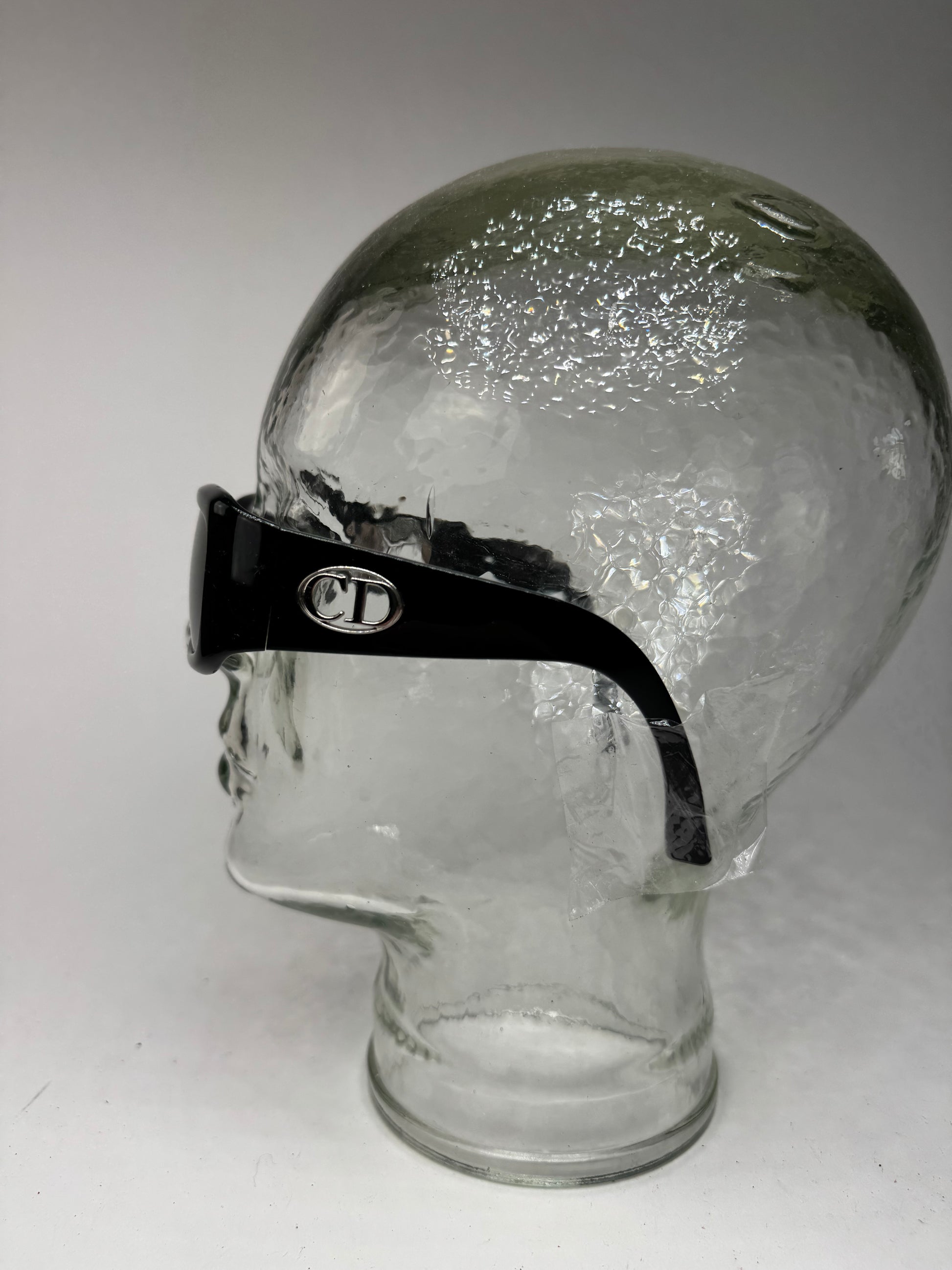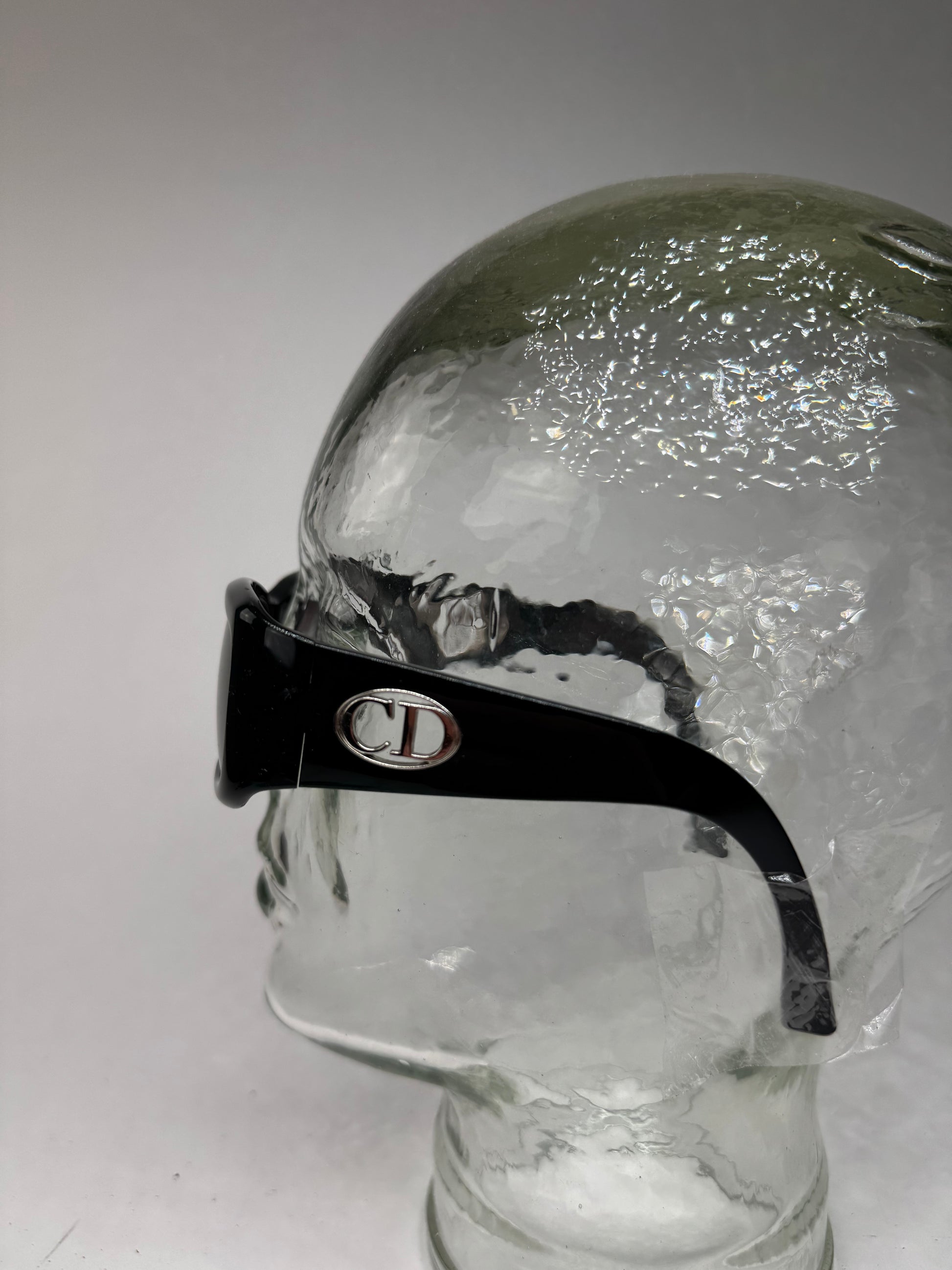 These vintage sunglasses are crafted from black acetate and feature gently curved arms with freestanding CD logos in silver-tone steel at the temples. The dark-tinted lenses and minimalist frame give the design a bold yet refined look. The “Flavor 2” model is part of Dior’s early 2000s collection, known for blending sleek modern lines with distinctive logo accents—making it a standout in the brand’s archive of unisex eyewear.