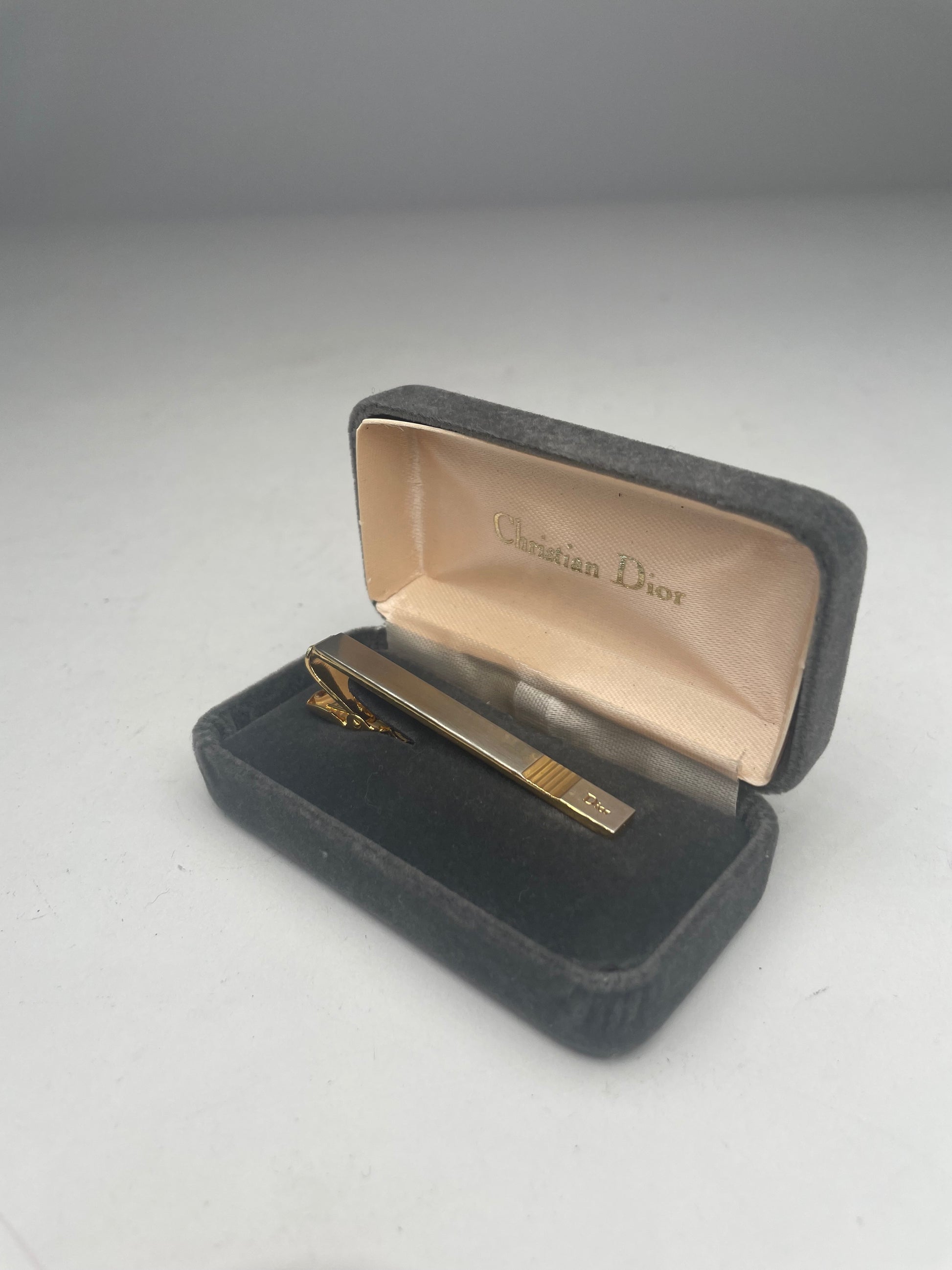 This sophisticated unisex accessory is crafted from silver and gold-tone steel. It features a sleek two-tone design and comes with the original Dior box.