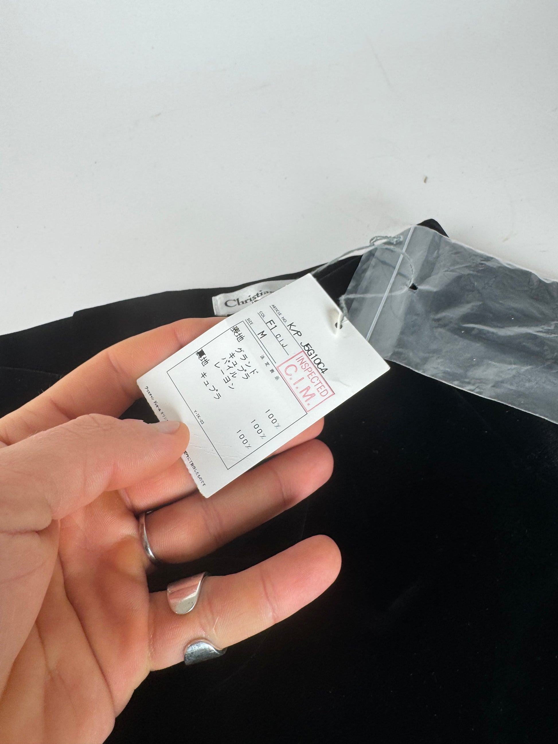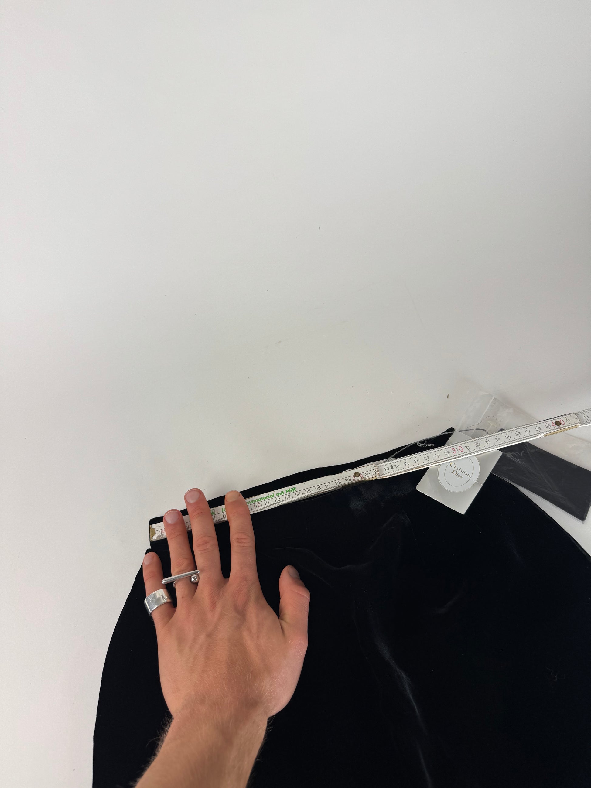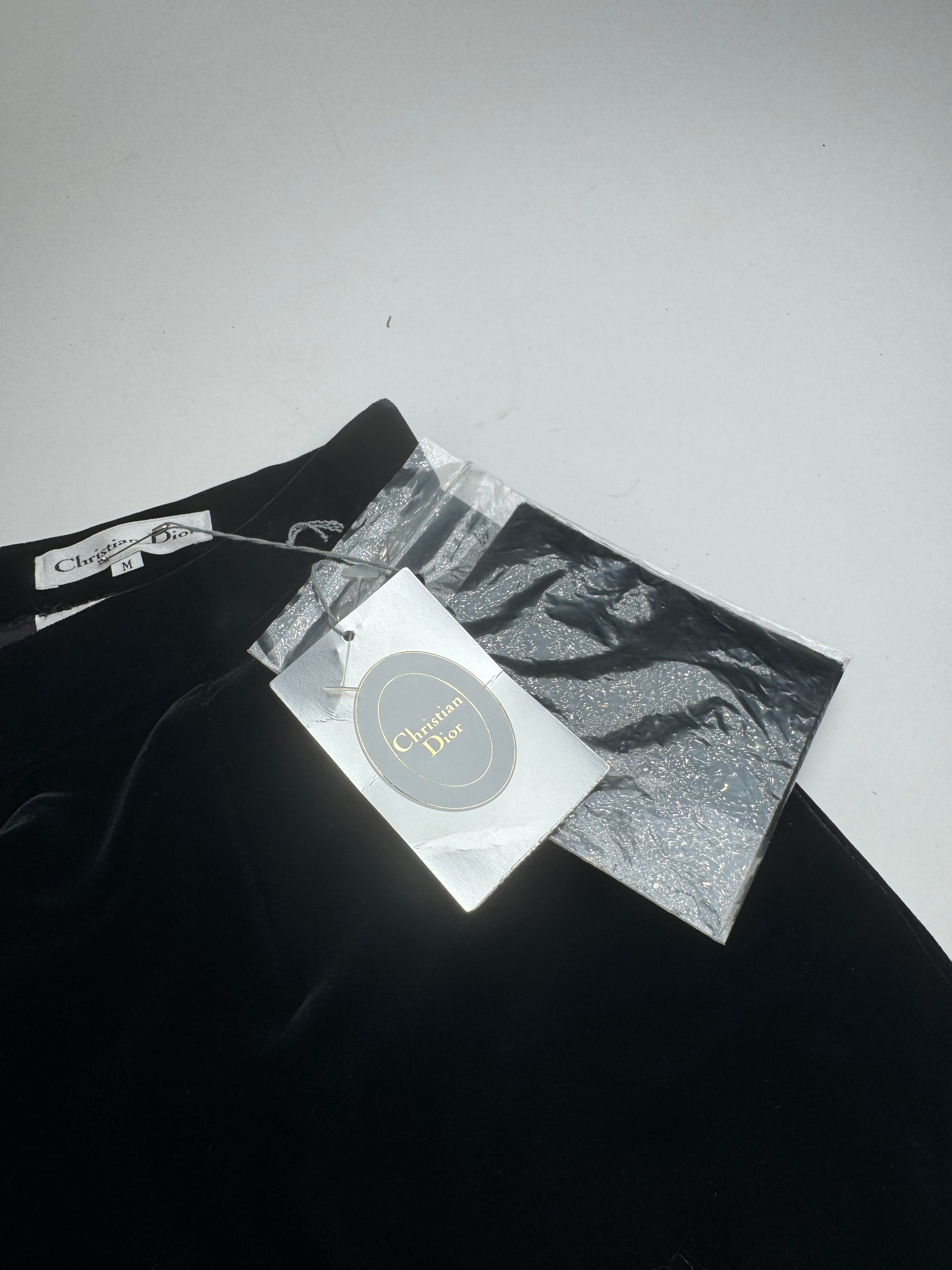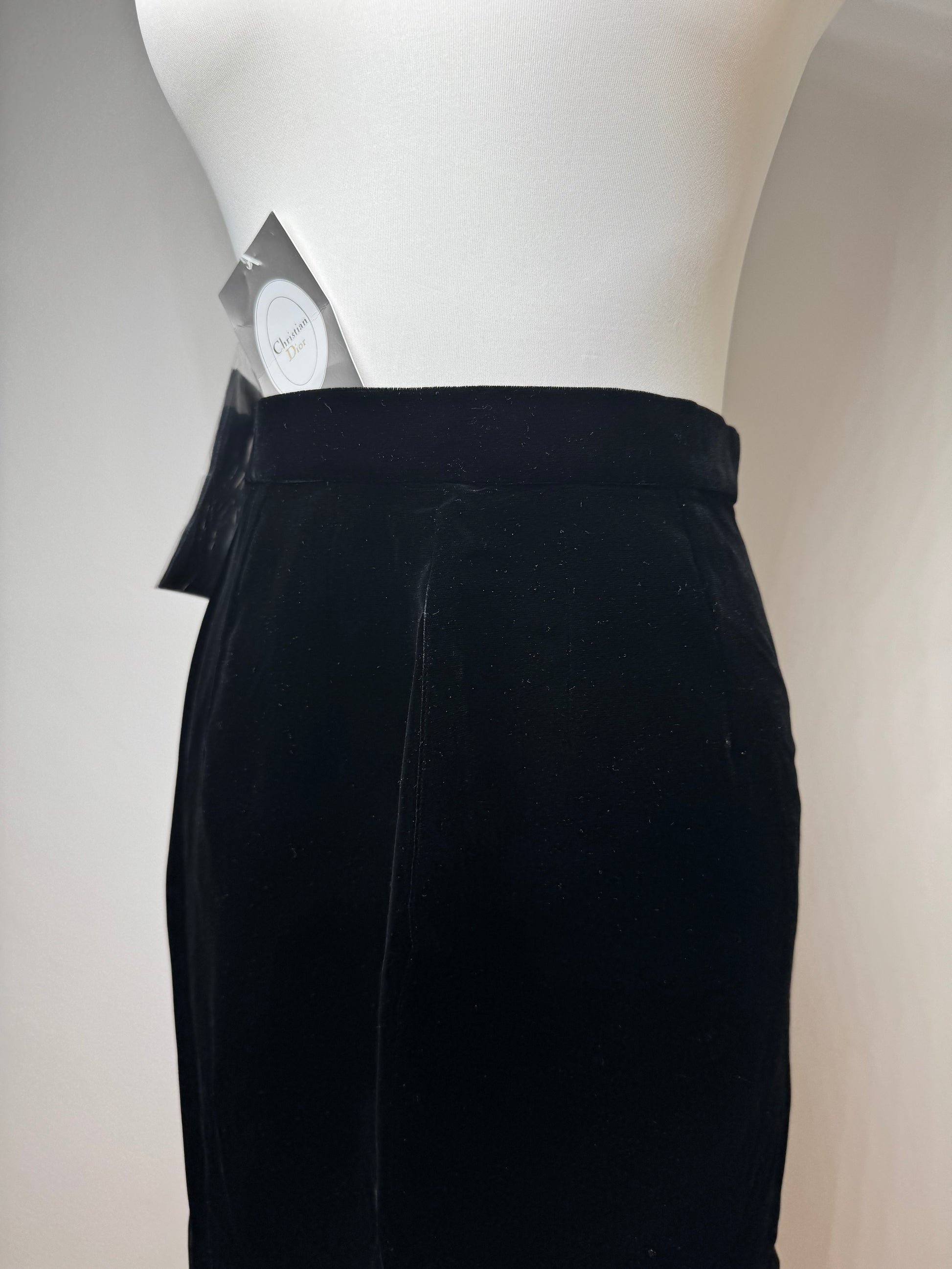 DIOR Vintage Velvet Skirt. This vintage Dior skirt is crafted from luxurious black velvet, offering a timeless and elegant silhouette. It is new with tags and labeled a size M. Designed as a high-waist fit, it adds a touch of sophistication to any wardrobe.