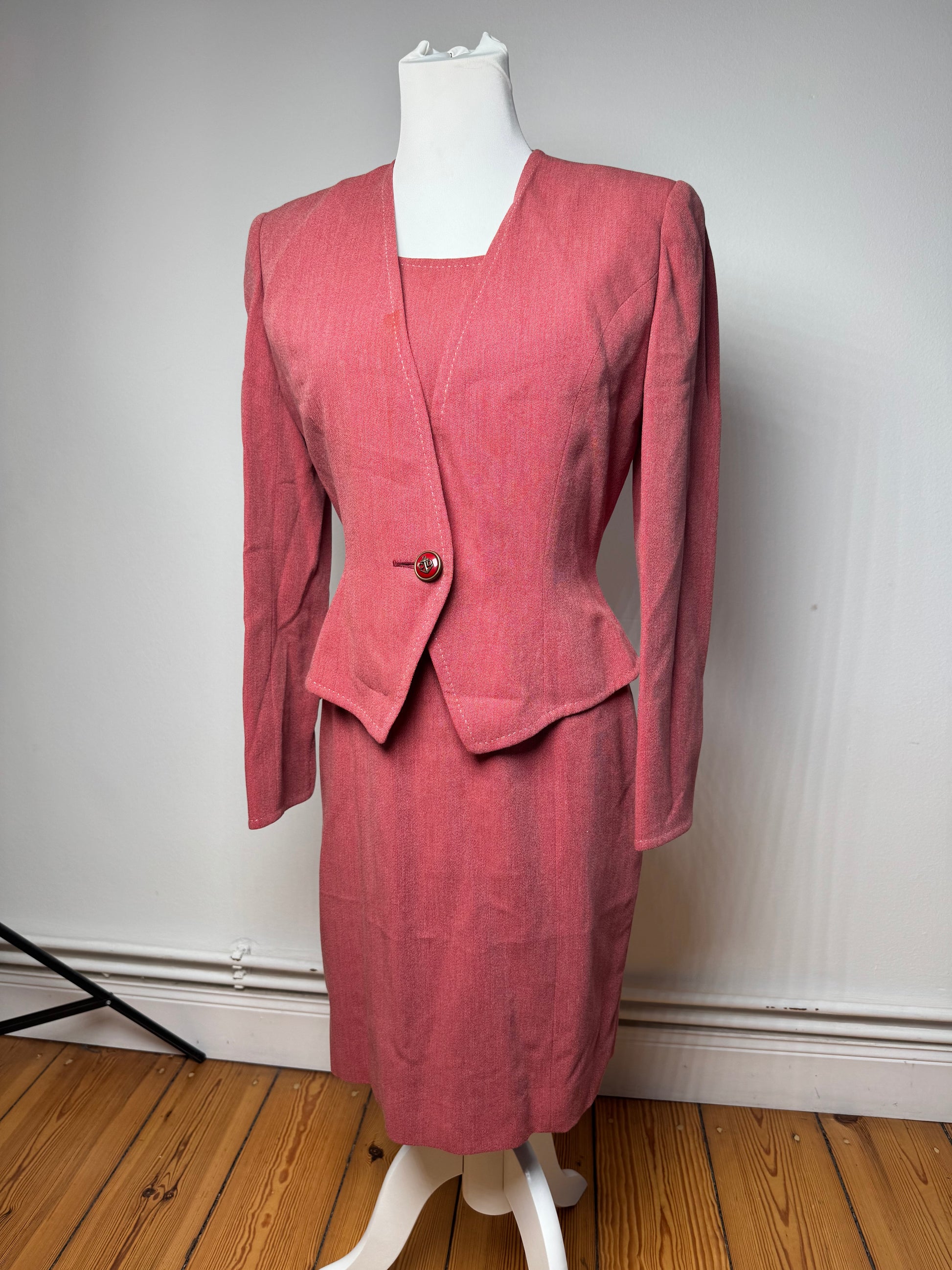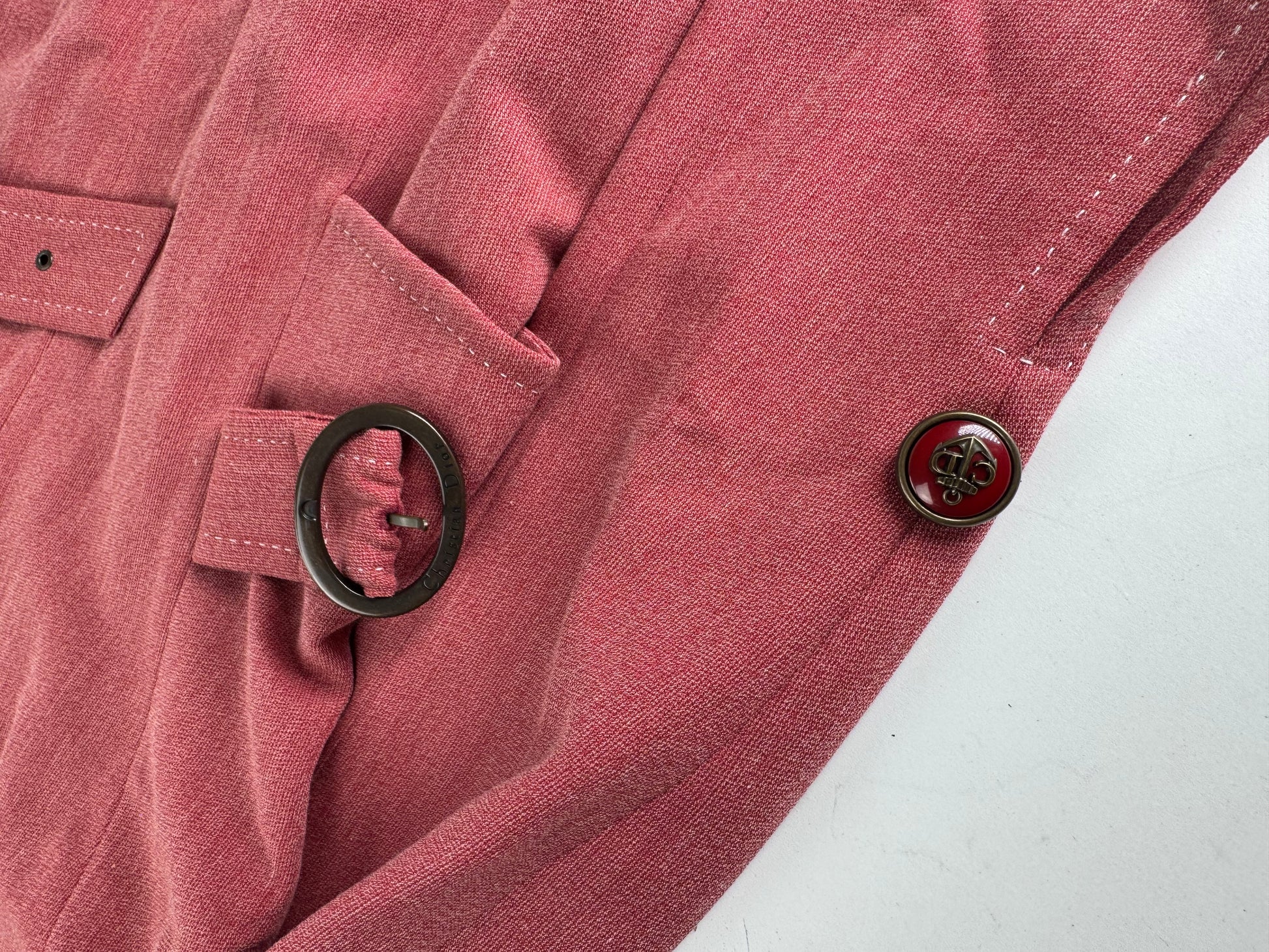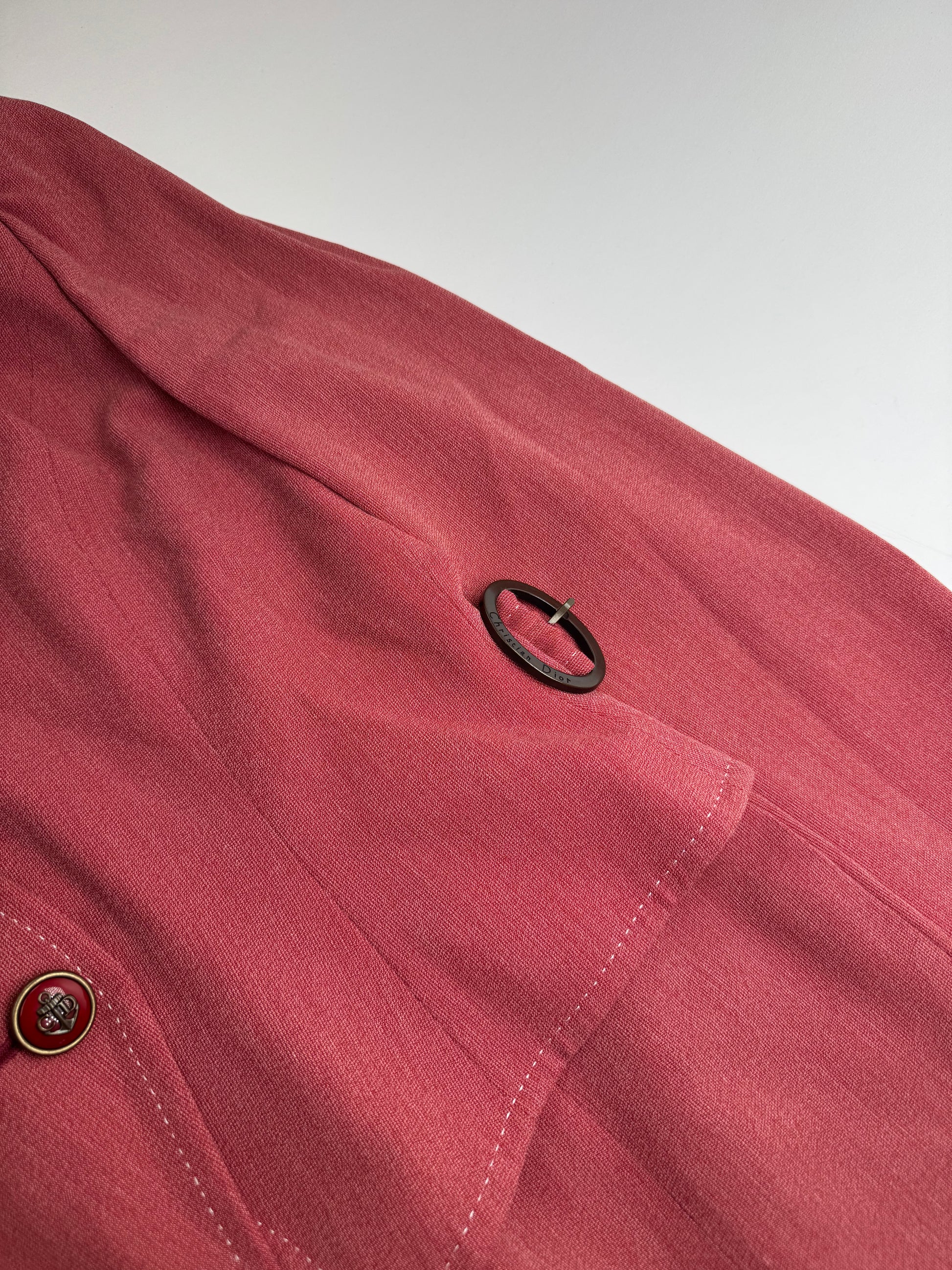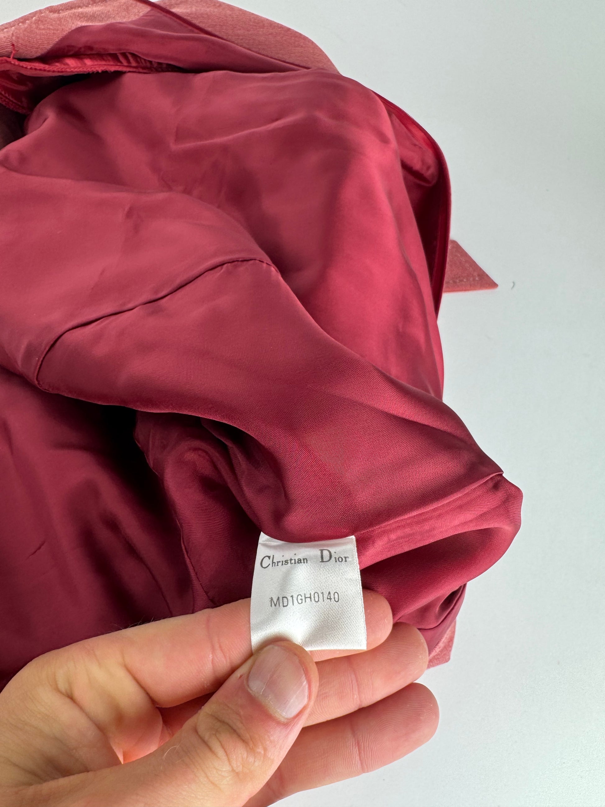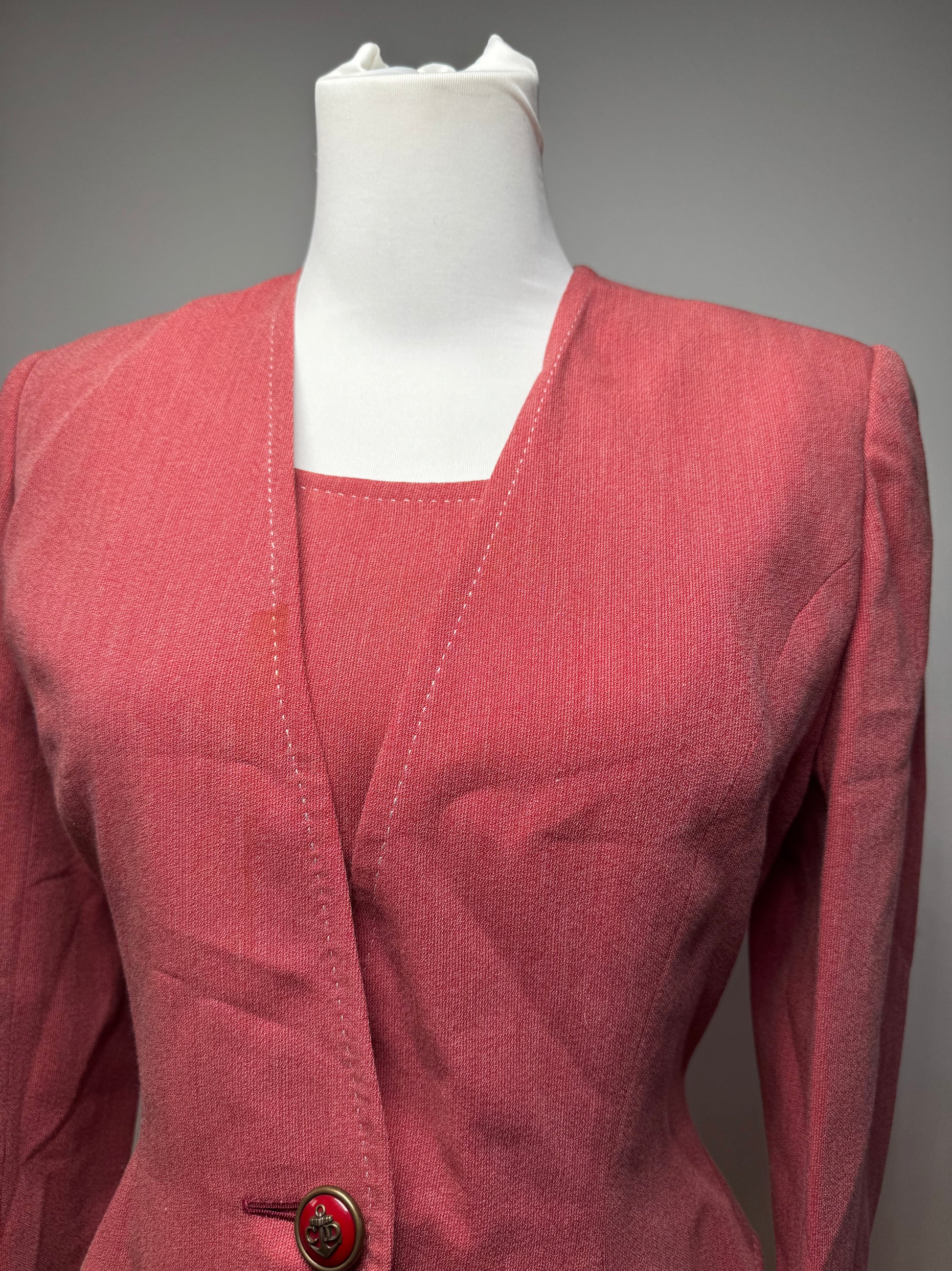 This elegant vintage dress is finely crafted of coral red wool and cotton with viscose lining. The design features structured shoulders with shoulder pads, a belt detail on the back, and a rear zipper closure. A timeless silhouette that reflects Dior’s dedication to refined tailoring and feminine elegance.
