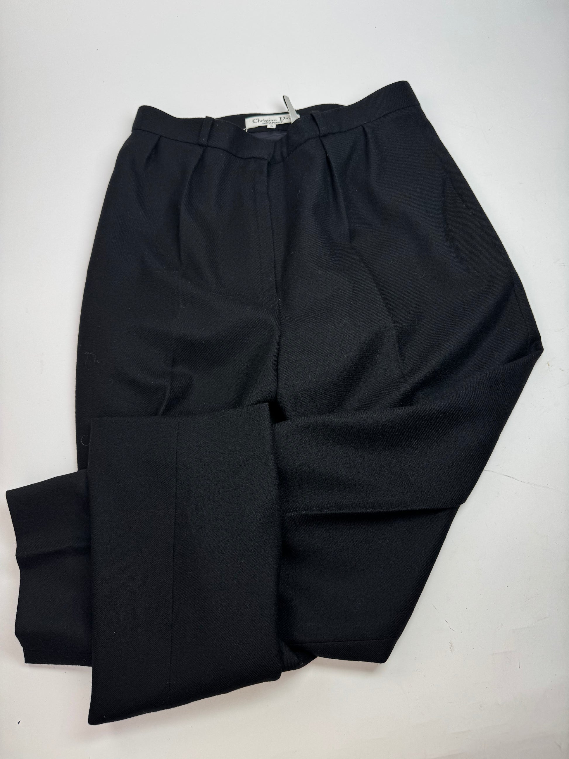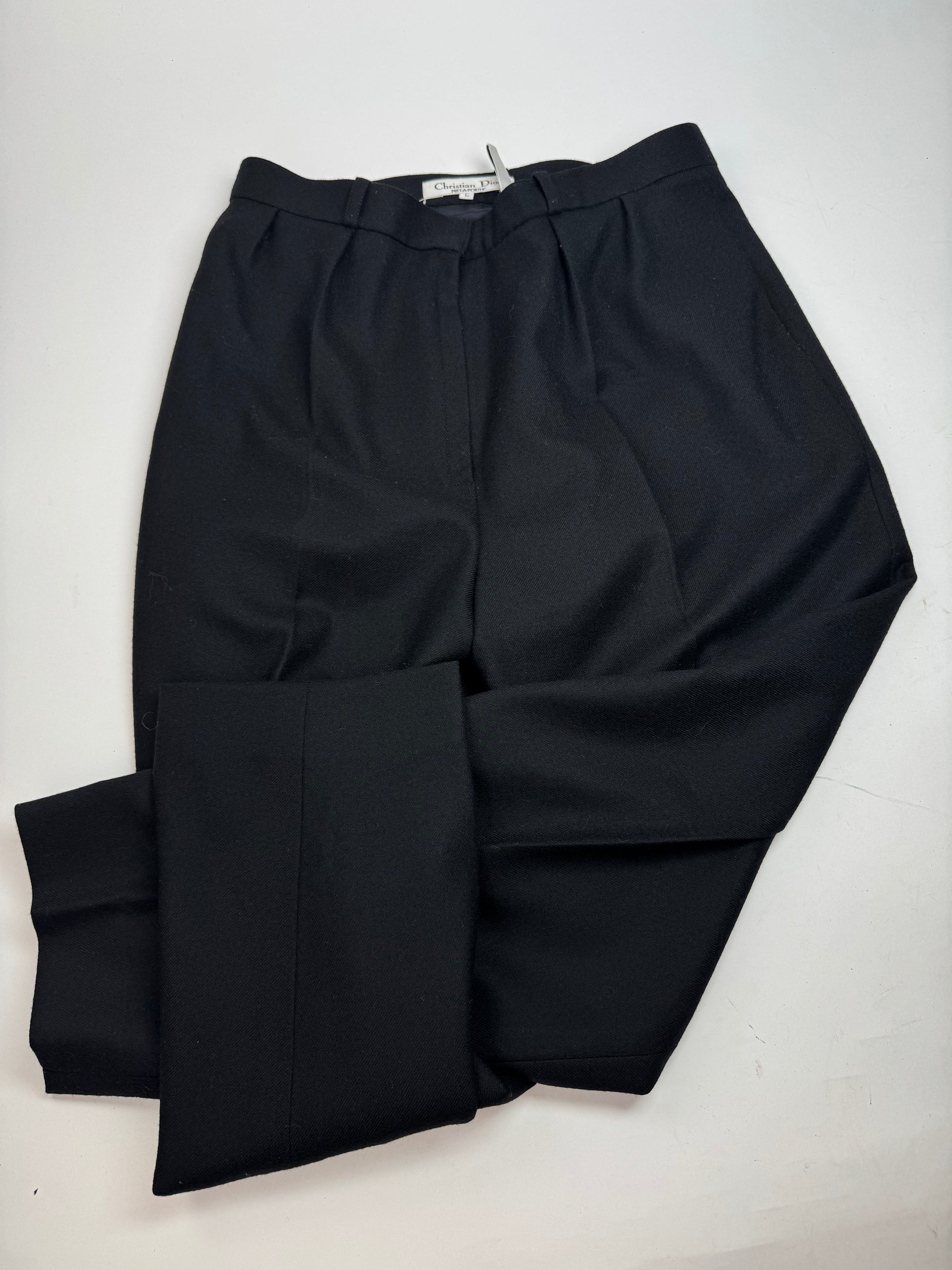 DIOR Vintage Wool Trousers. These elegant trousers are finely crafted from soft wool and feature a high-waisted silhouette. The piece is lined with viscose for comfort and structure. This item is in excellent vintage condition with light general signs of wear.