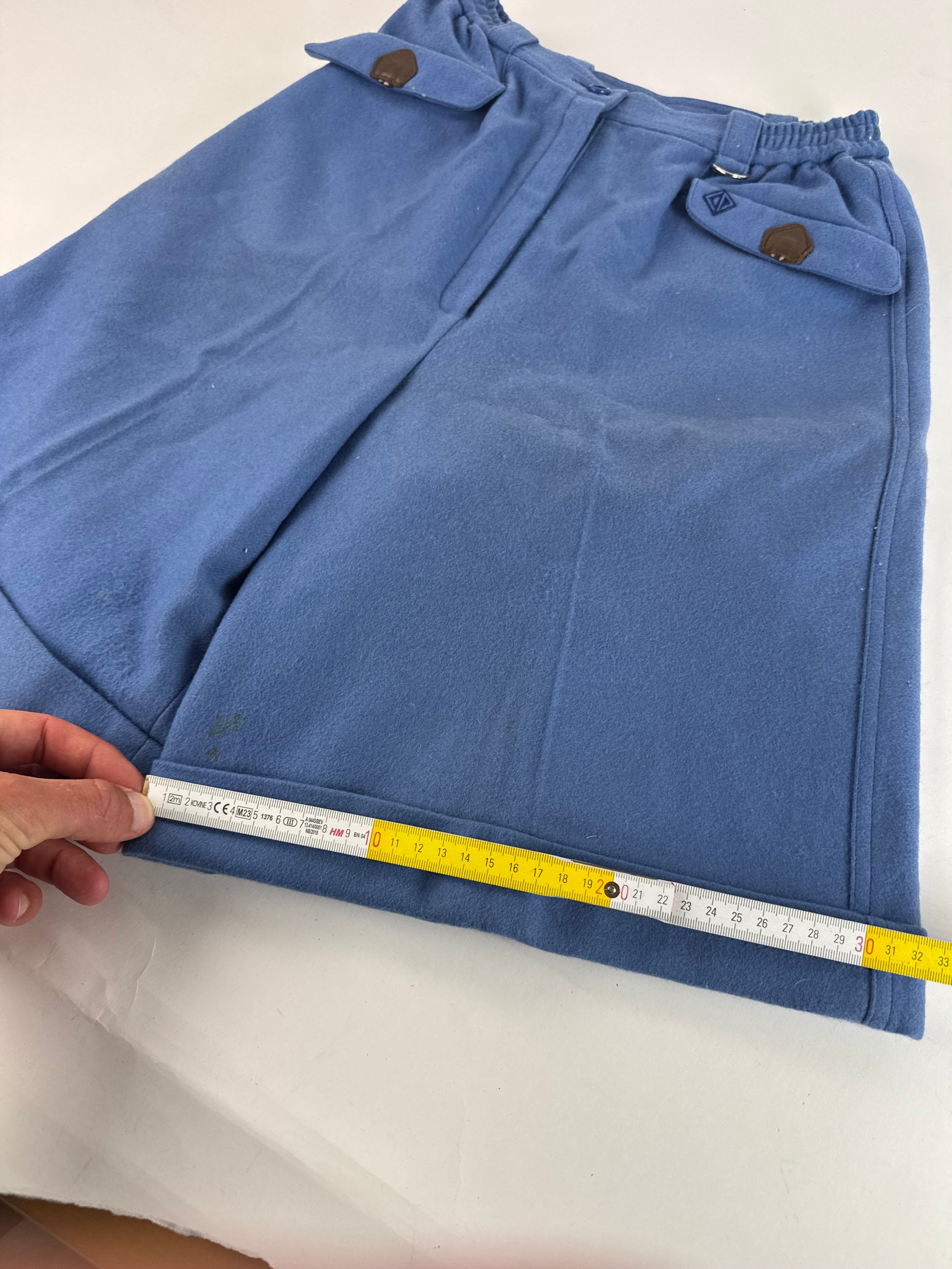 This chic pair of shorts features a blue cotton-nylon blend with brown leather accents, blue plastic buttons, and silver-tone steel detailing.