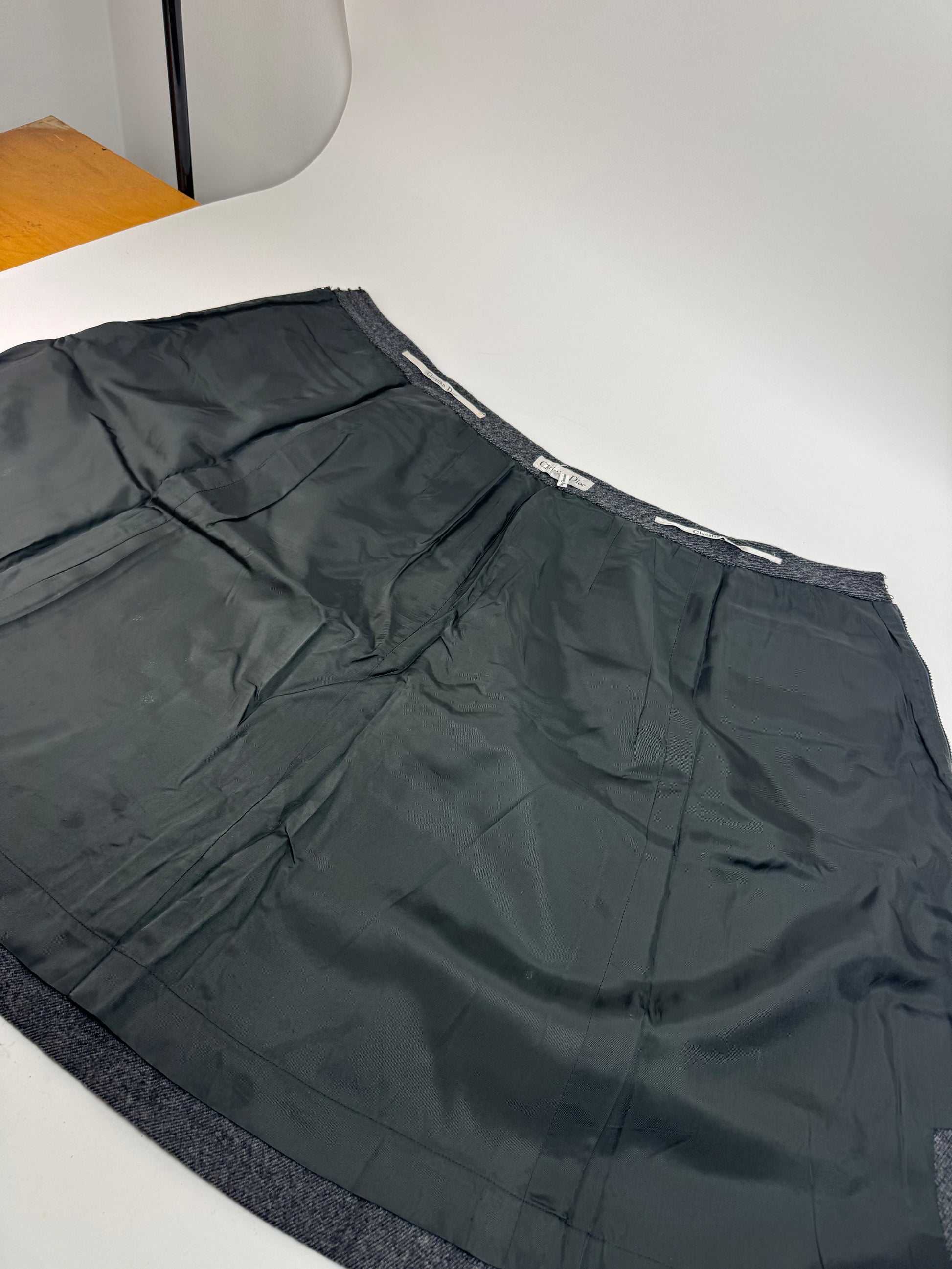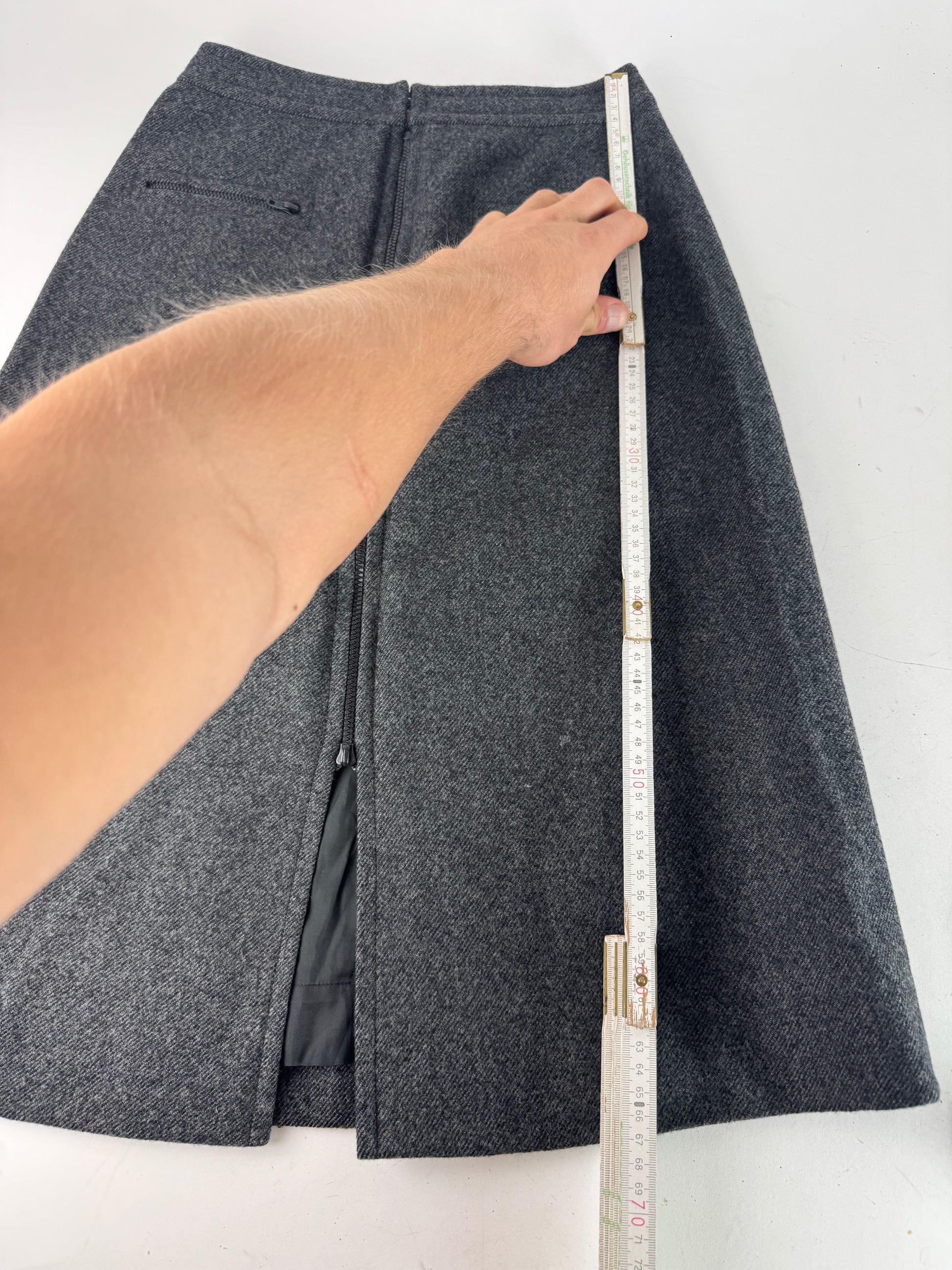 Condition Details: The wool fabric remains in excellent overall shape with only light creasing from wear. The care label is missing, but the structure and lining are well-preserved. Overall, the skirt is in very good condition.