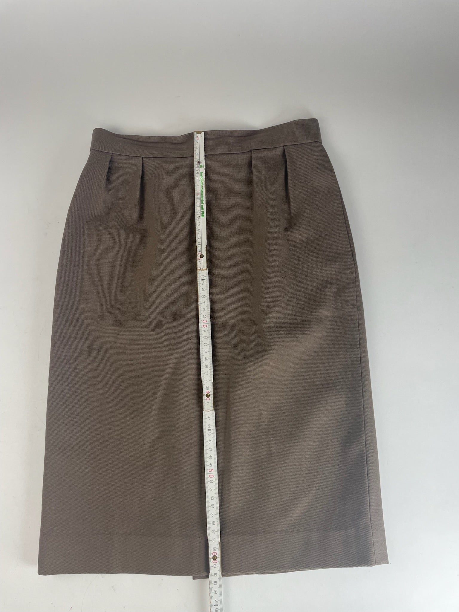 This elegant vintage skirt by Dior is crafted from high-quality wool and comes in a beautiful brown color. It is in size L and features a high-waist design. The skirt is in very good condition, showing only normal signs of wear.