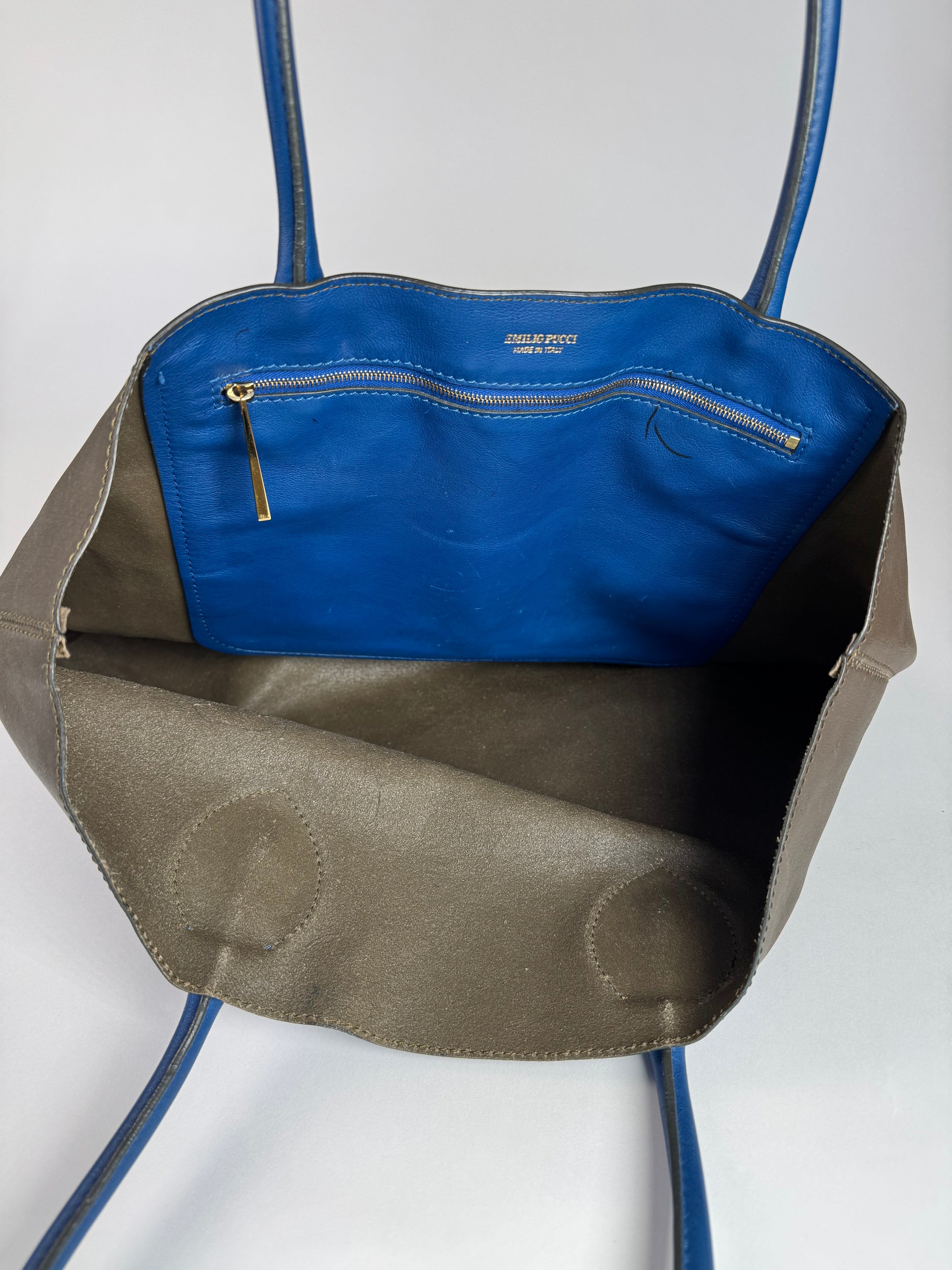 Vintage Emilio Pucci Leather Shopper Brown Blue