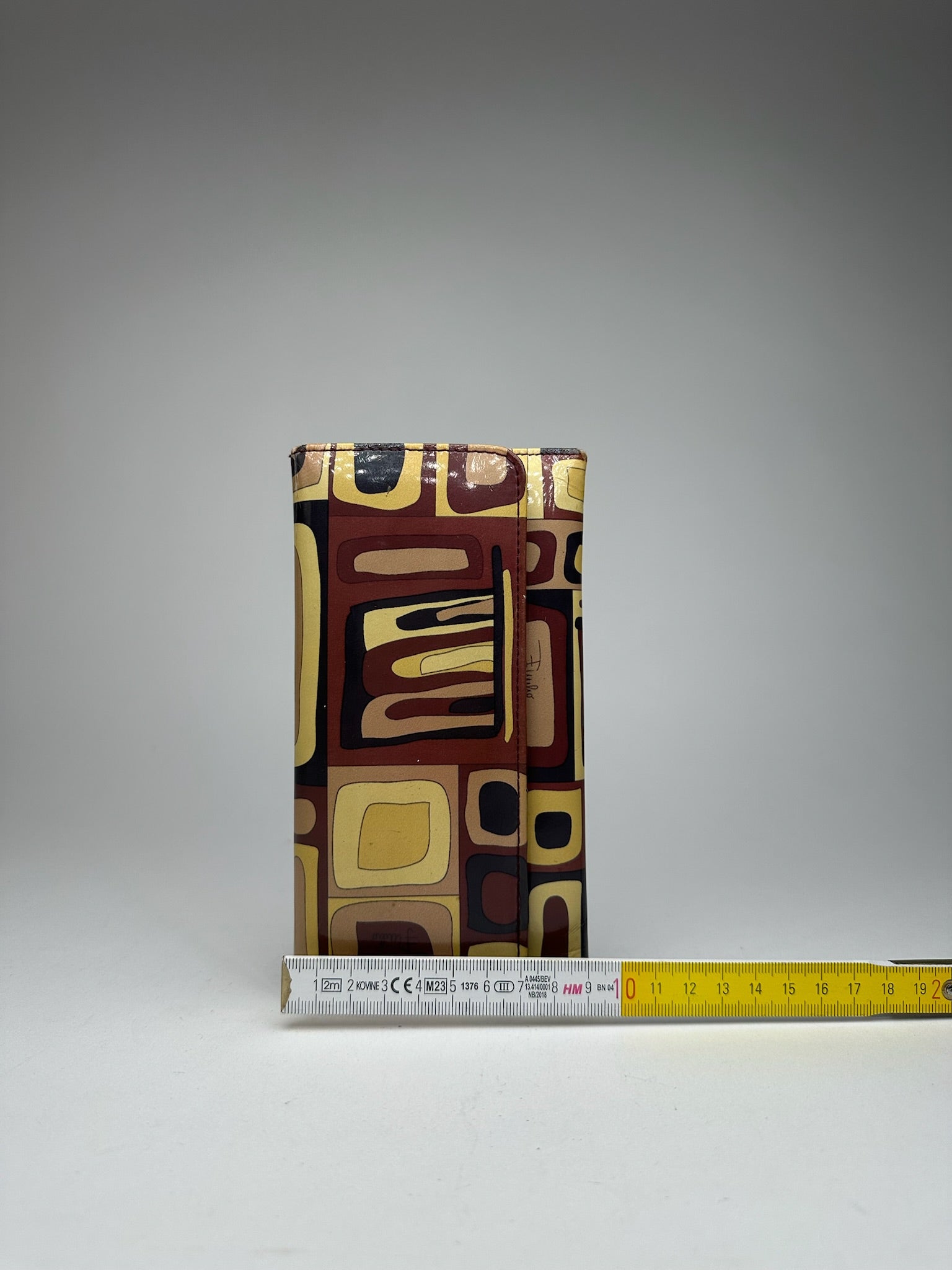 EMILIO PUCCI Vintage Wallet. This chic accessory is finely crafted of patterned leather in yellow, black, and purple tones. The interior is lined with purple leather and offers a bold, elegant design.