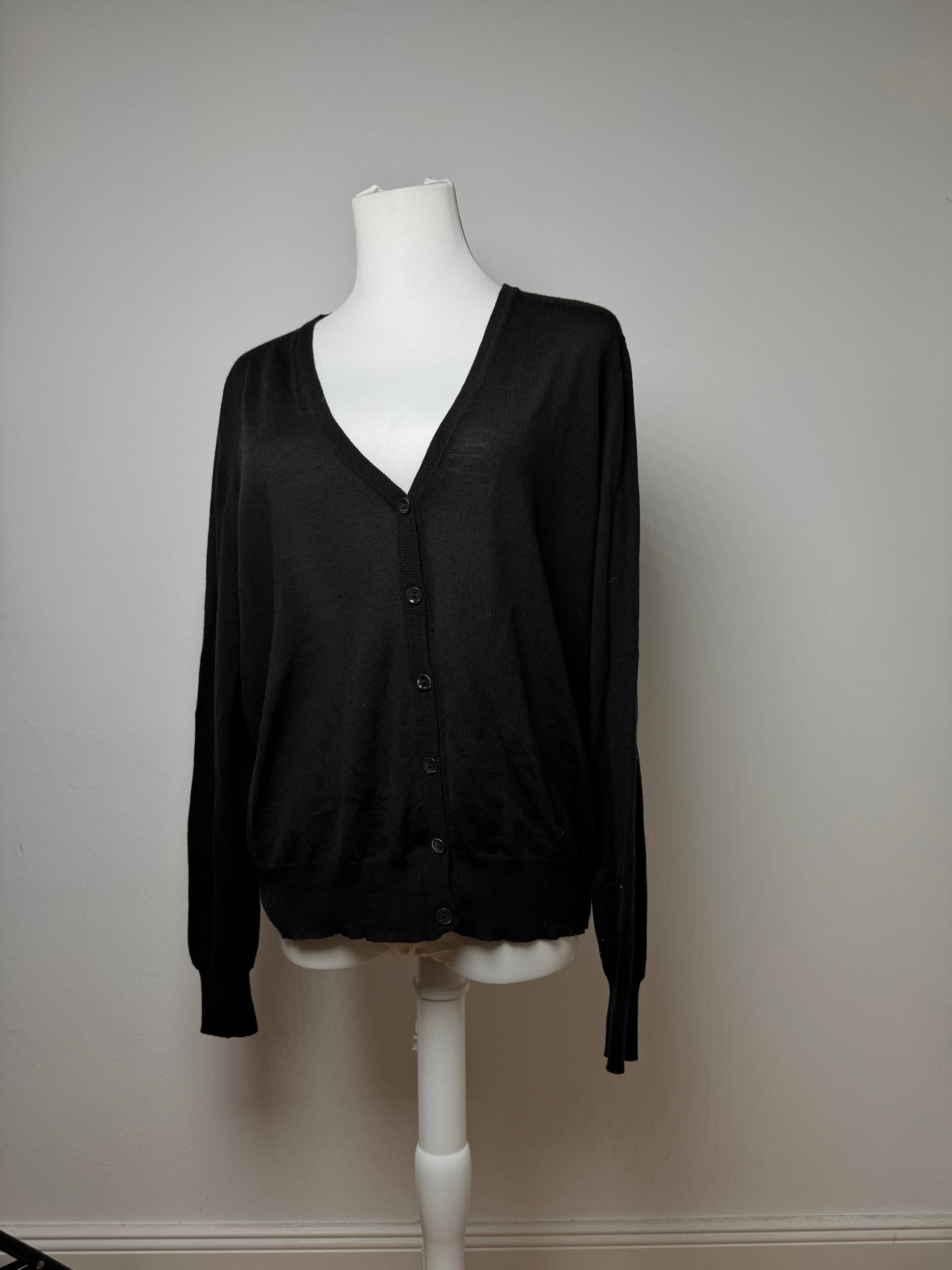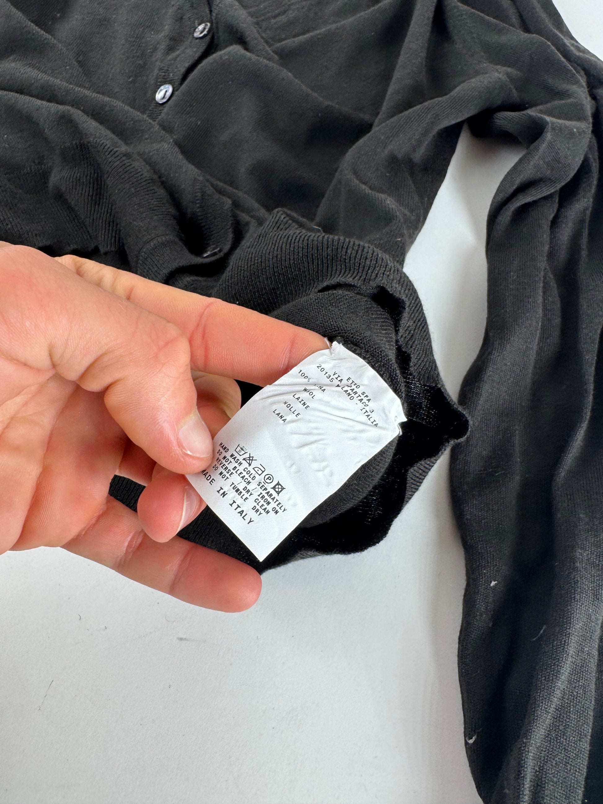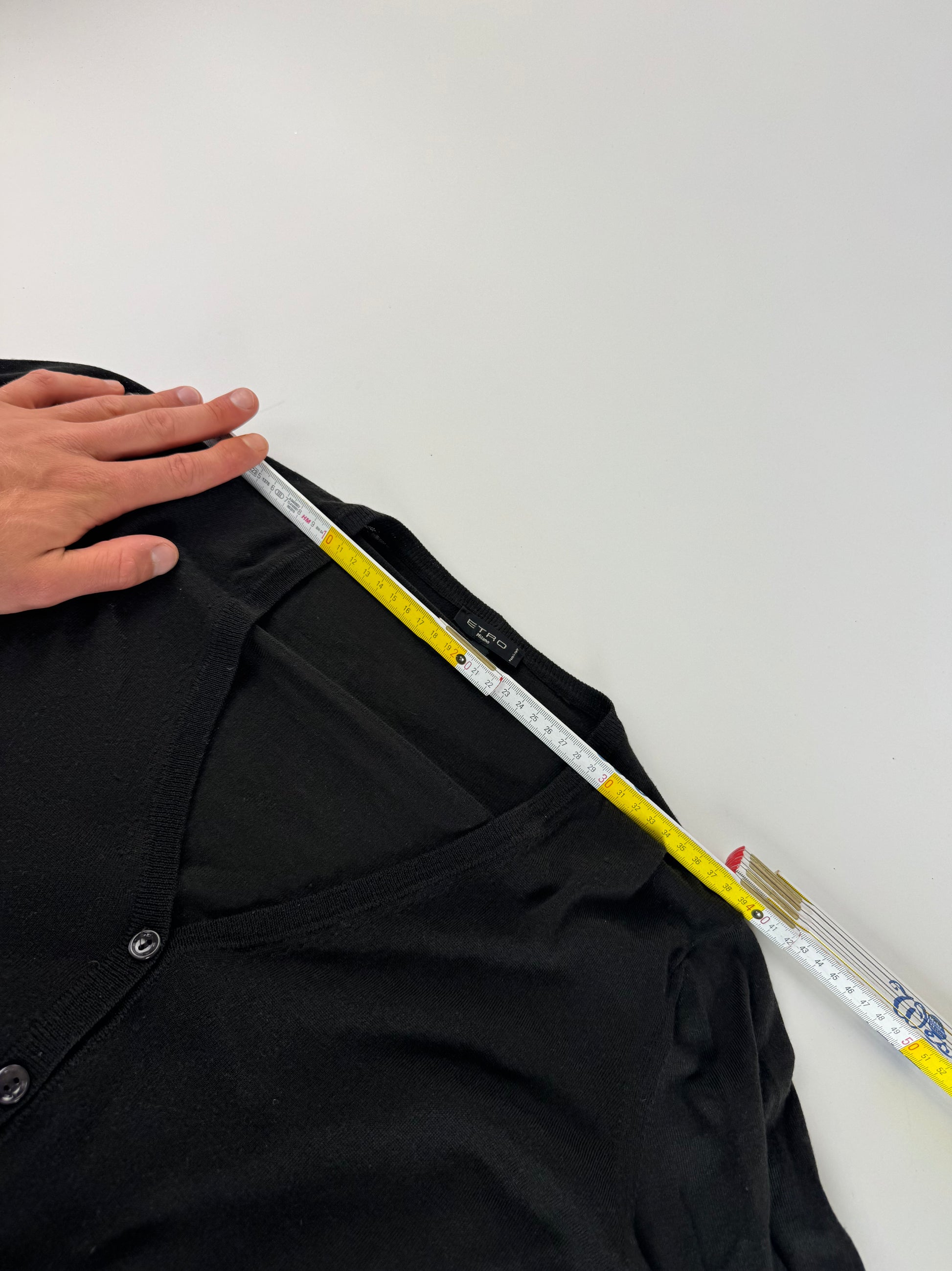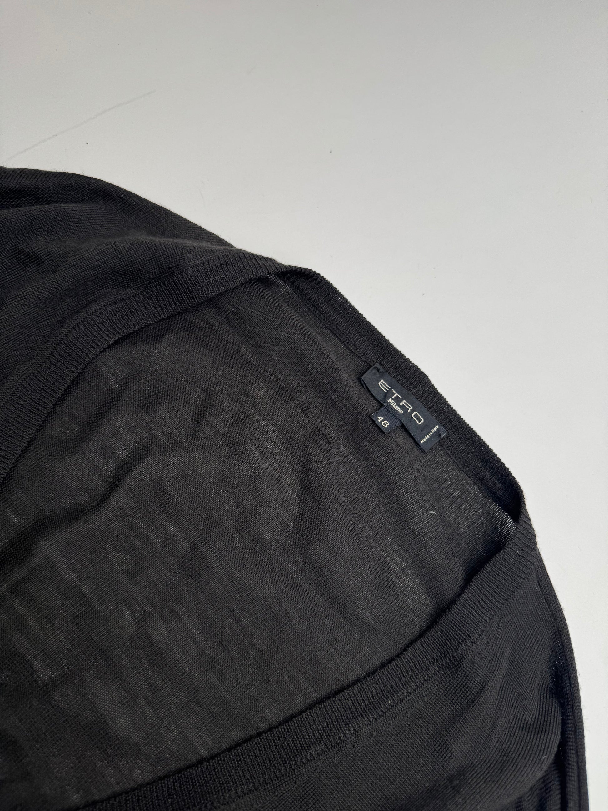 ETRO Vintage Wool Cardigan. This chic cardigan is finely crafted of 100% lana wool in an anthracite color. It features silver-tone steel buttons.