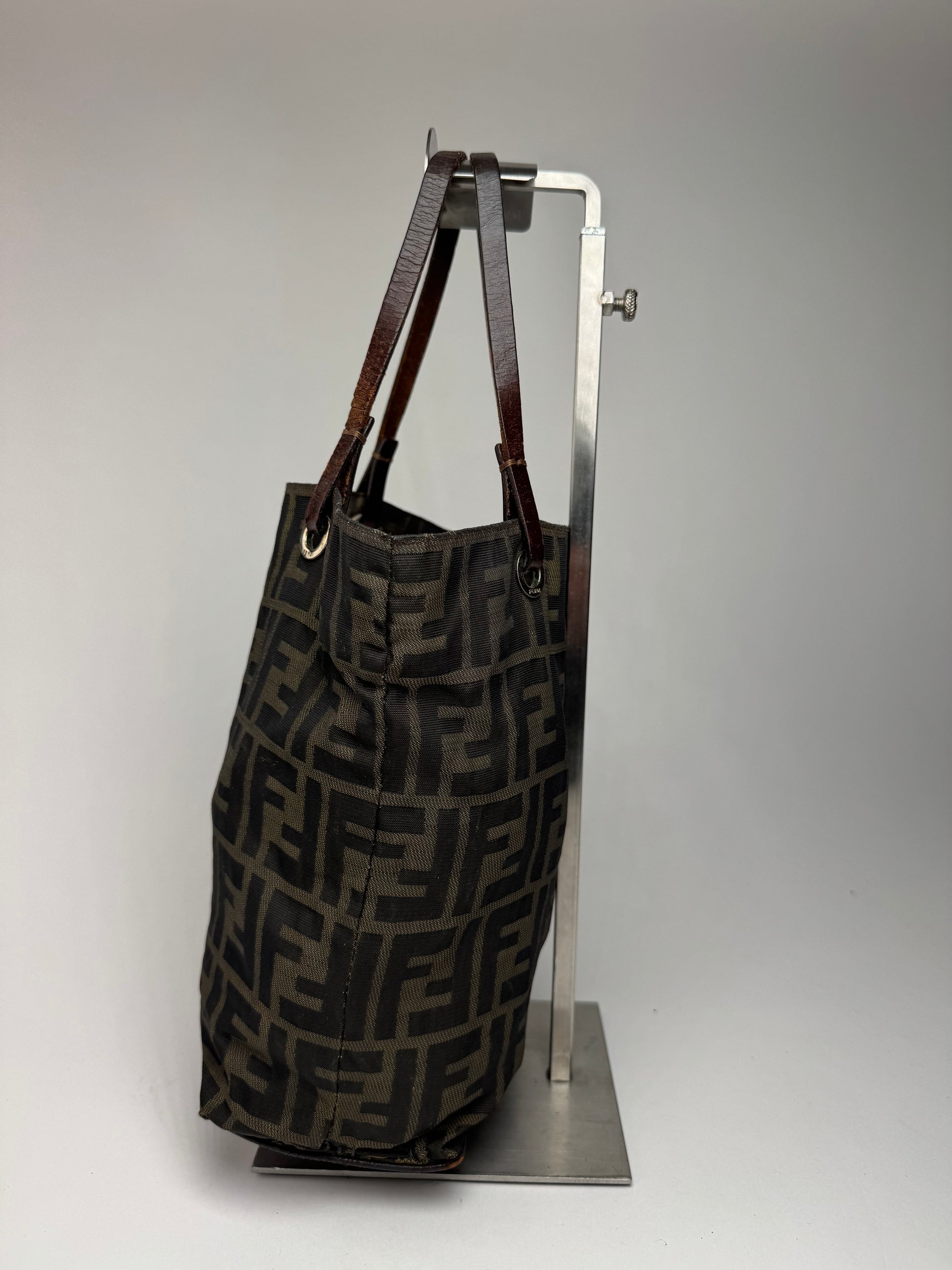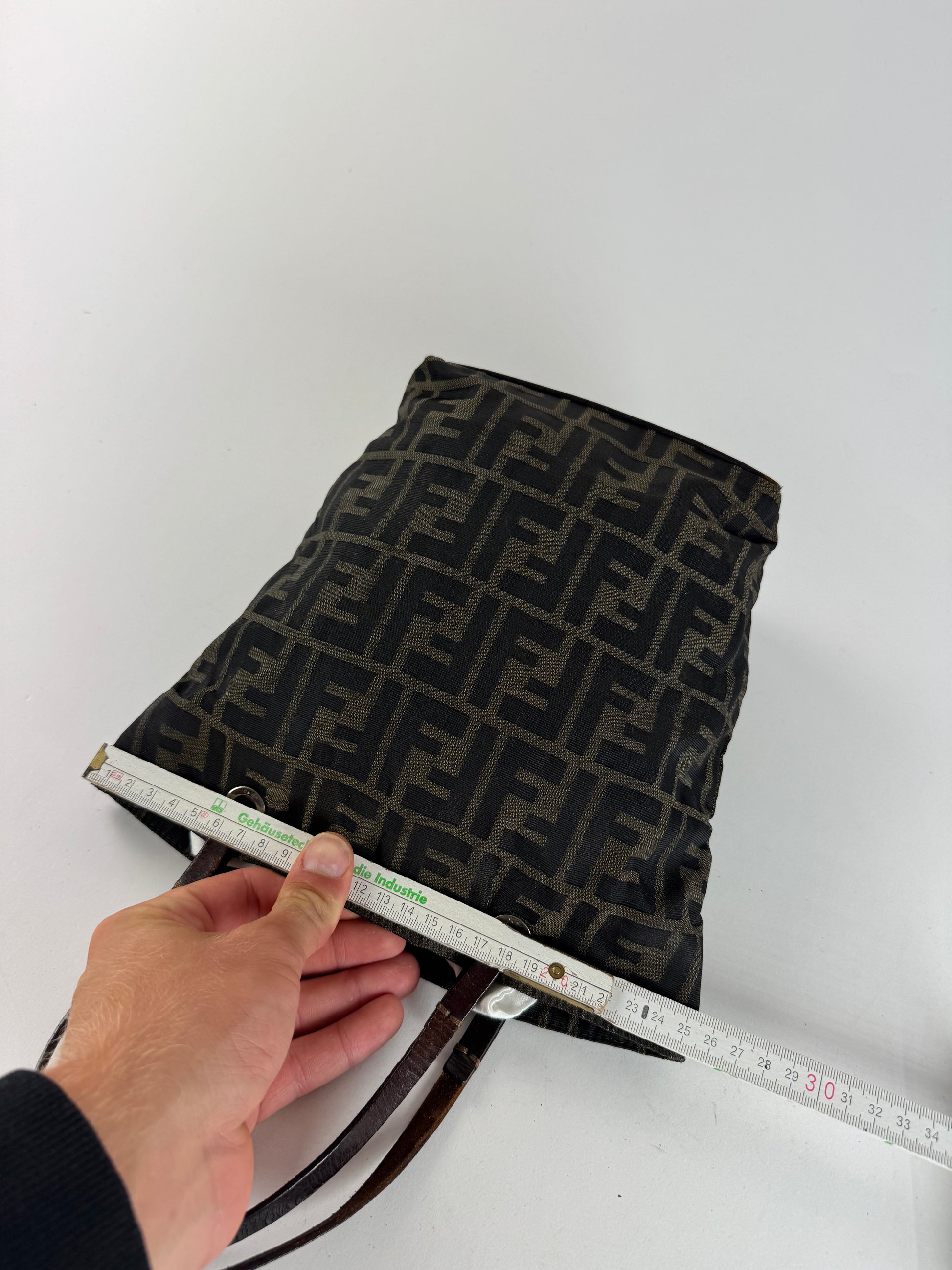 Vintage Fendi FF canvas Leaather shopper brown khaki