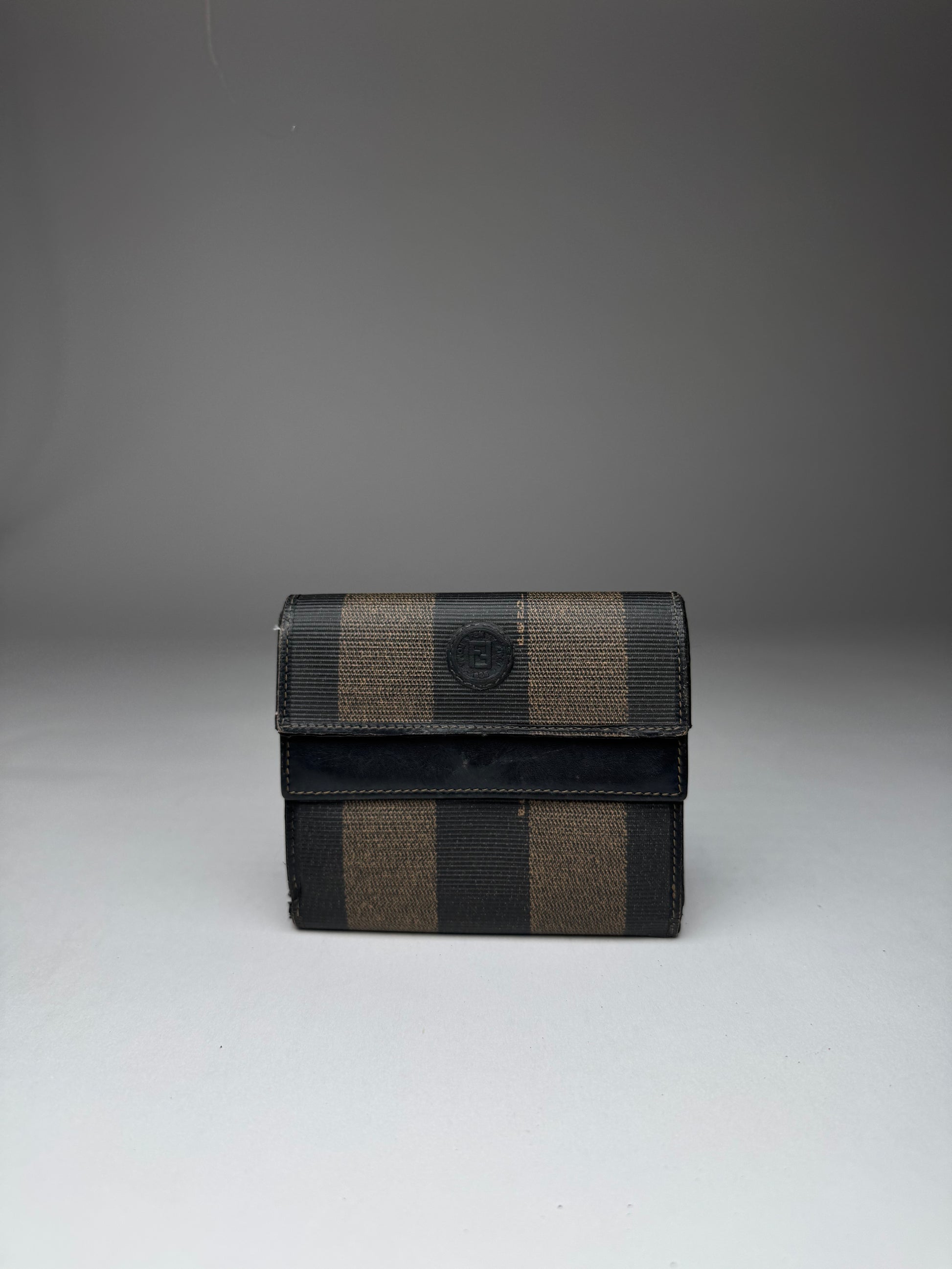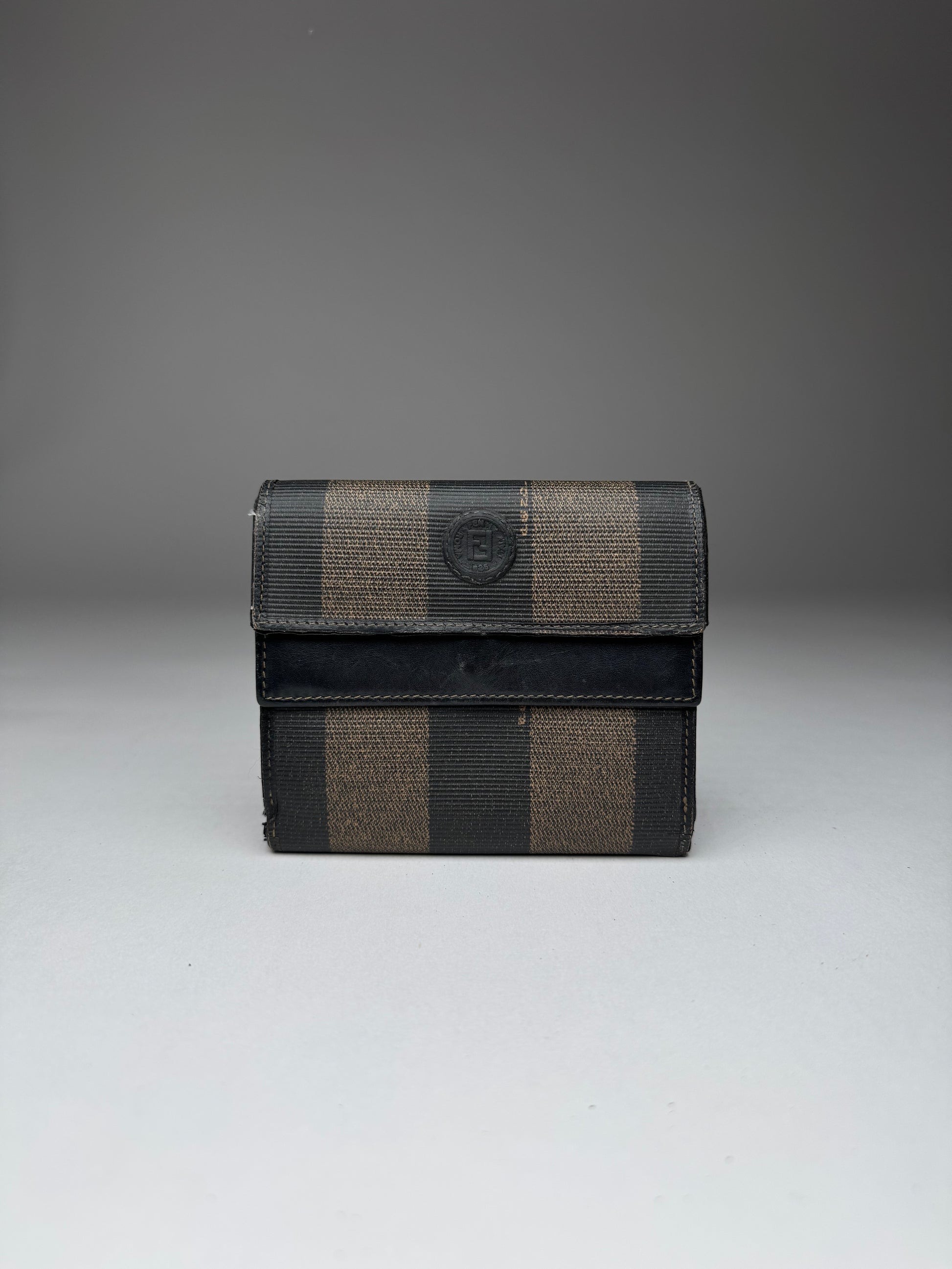 Vintage Fendi Roma Leather Wallet Striped Black Brown