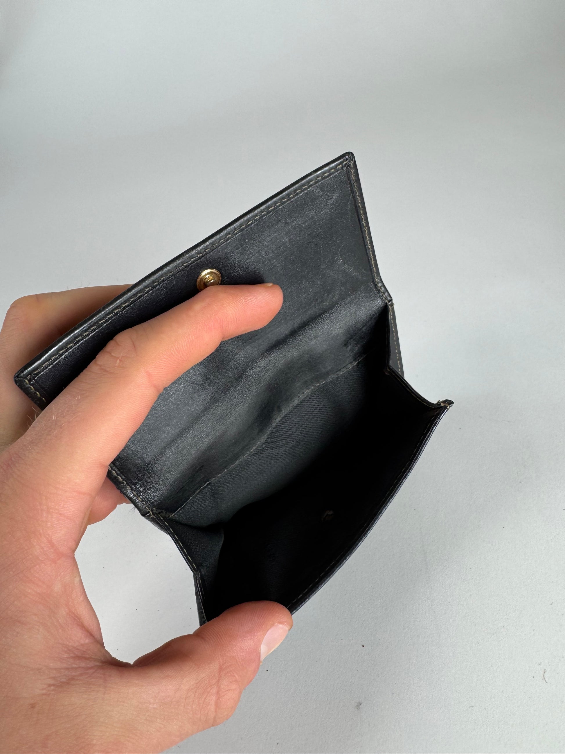 This vintage wallet is finely crafted from black and brown striped leather, featuring gold-tone stainless steel hardware. The interior is lined with black leather, complementing its classic design. Despite some scuffs and scratches, the overall condition remains very good. Made in Italy, this unisex accessory is a timeless piece of Fendi craftsmanship.