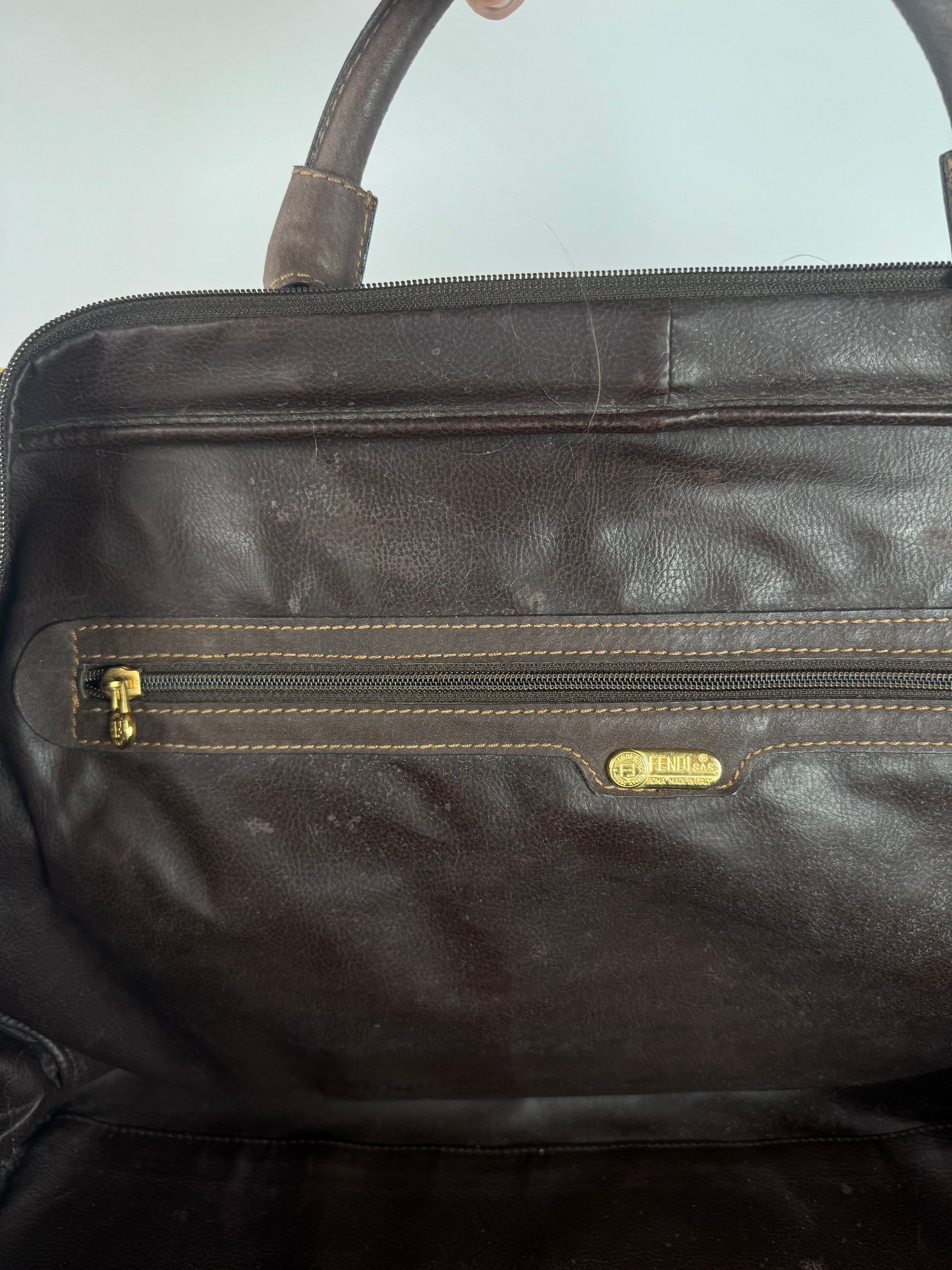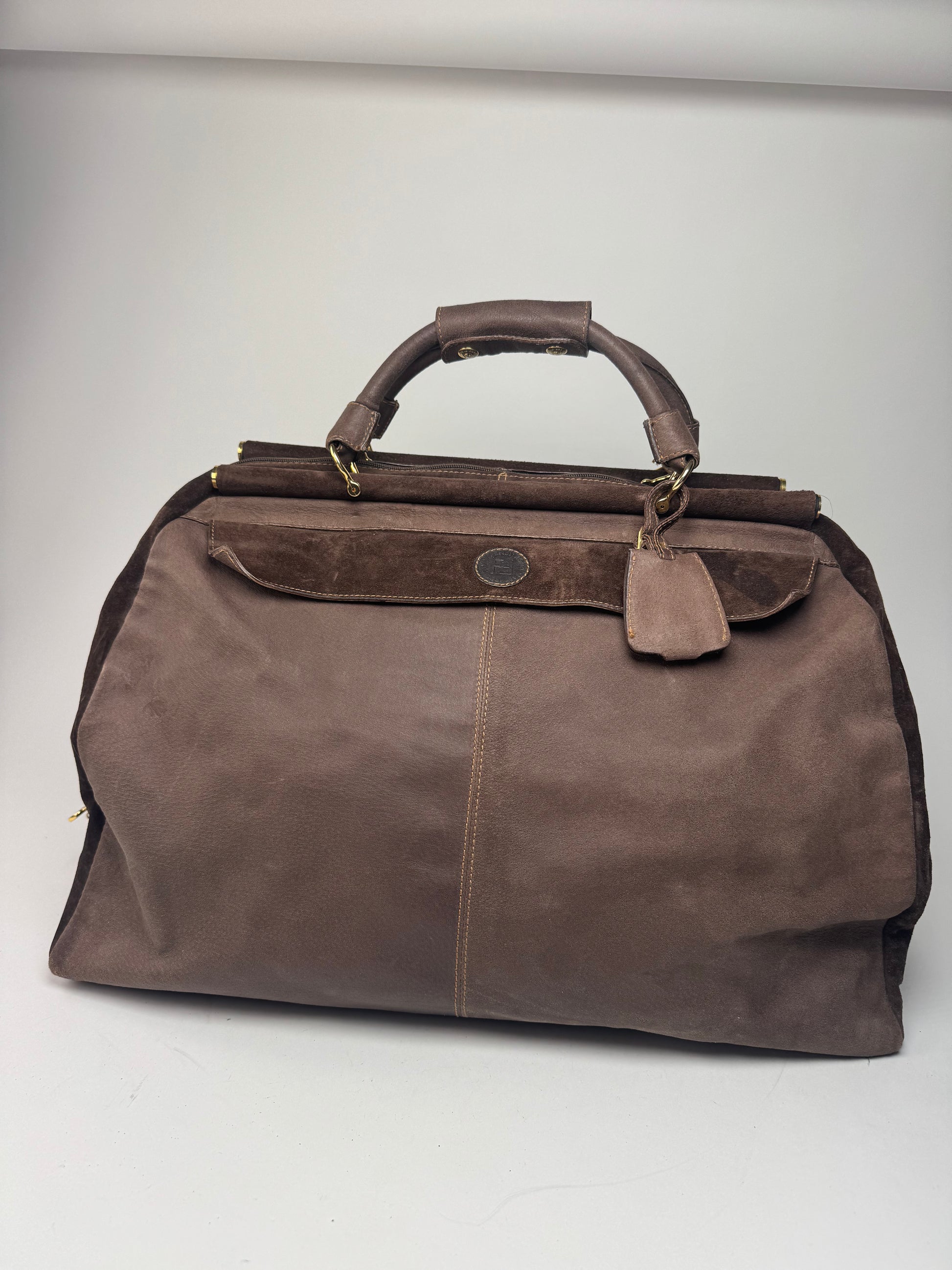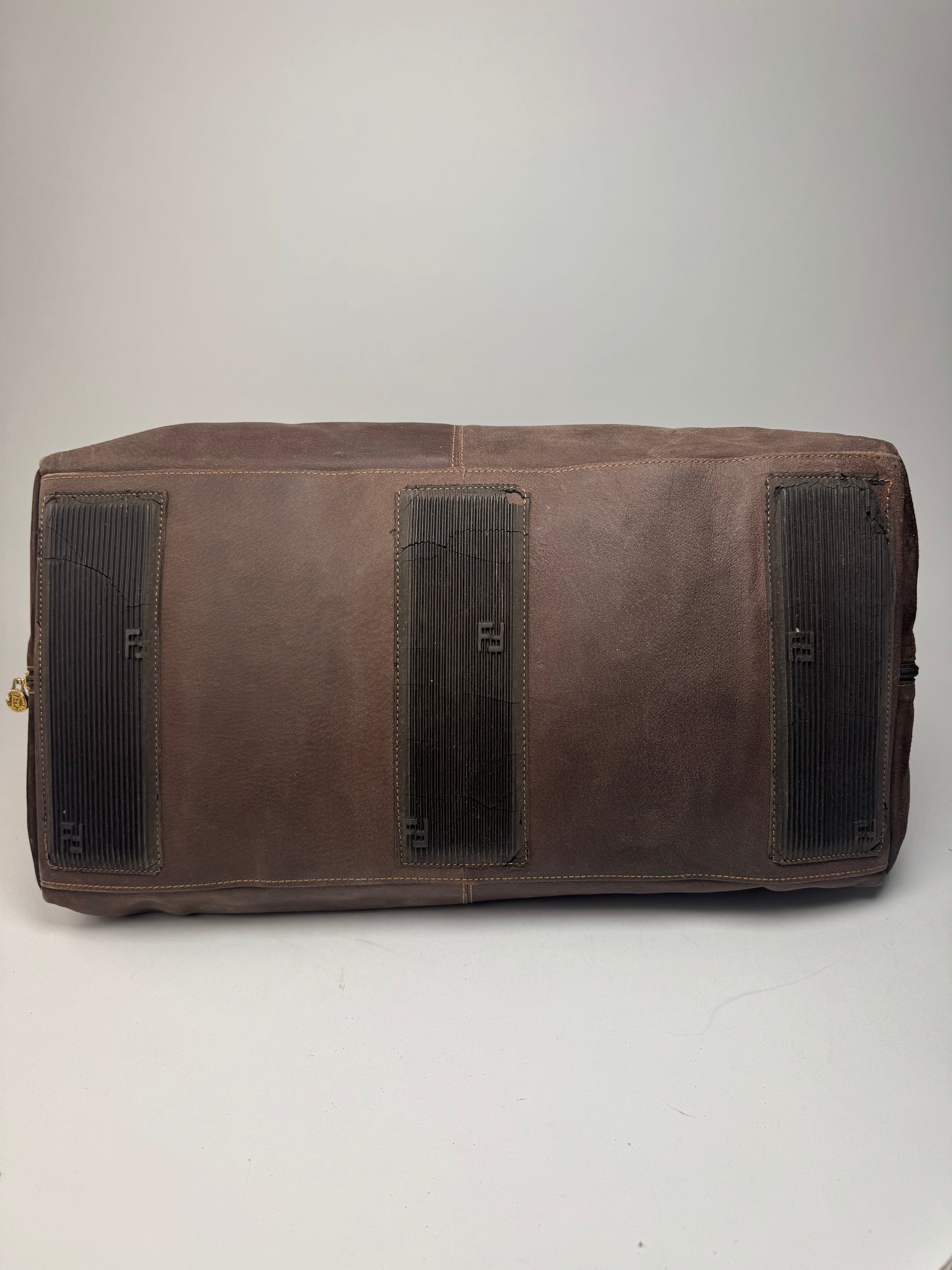 Vintage Fendi Roma Suede Leather Travel Bag Brown