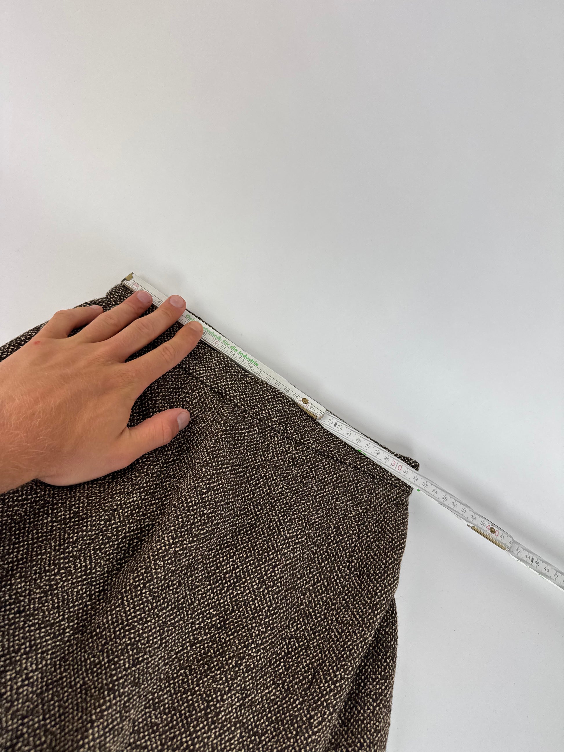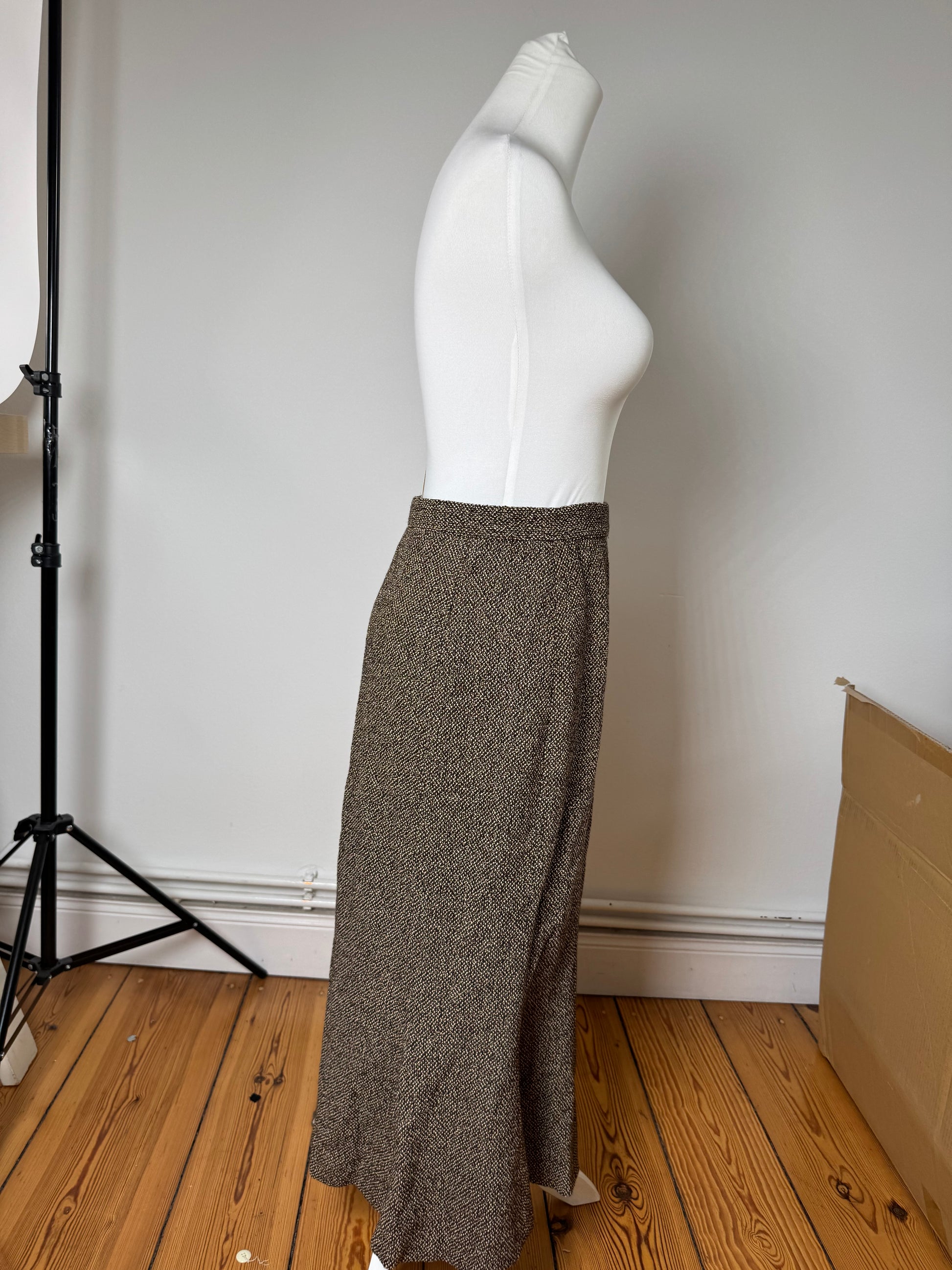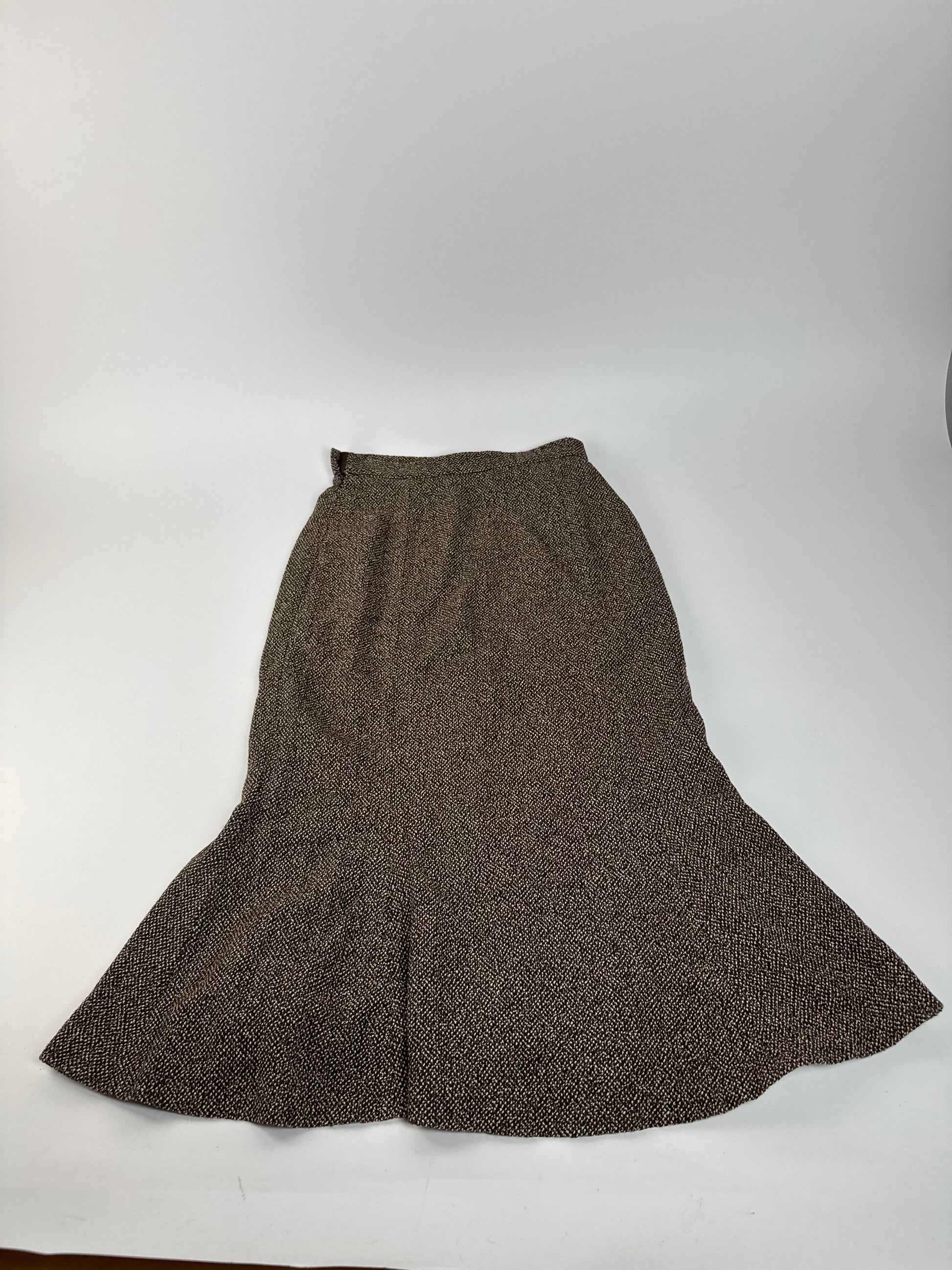 FENDI Vintage Wool Polka Dot Skirt. This elegant high-waisted skirt is finely crafted of brown and white polka dot wool. It features a brown plastic button and opens at the bottom.