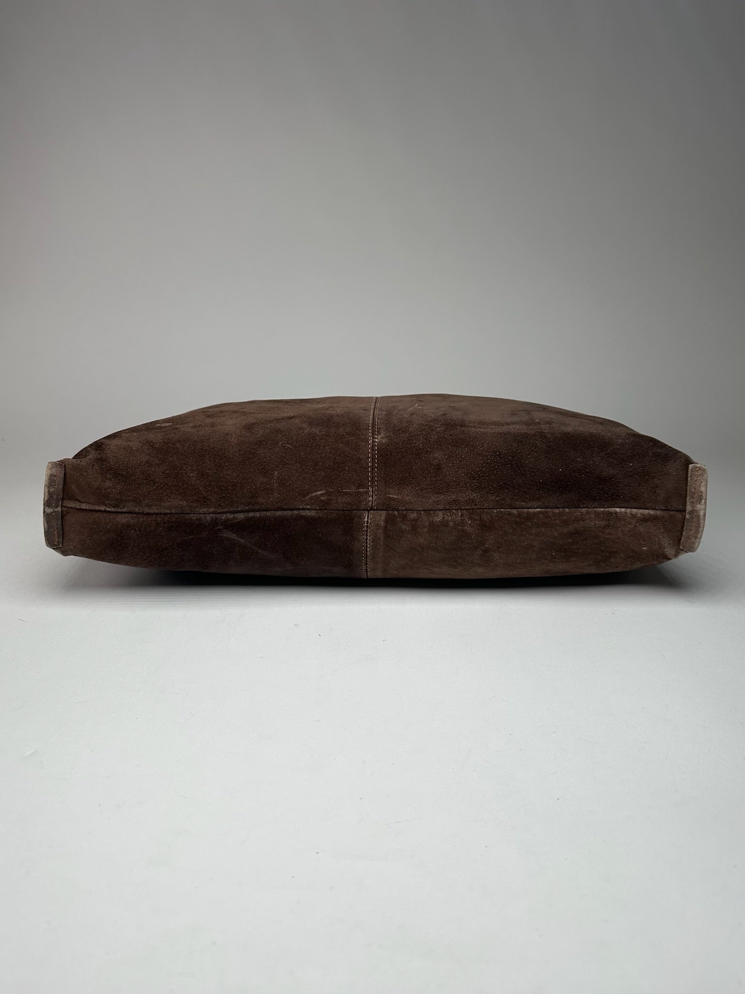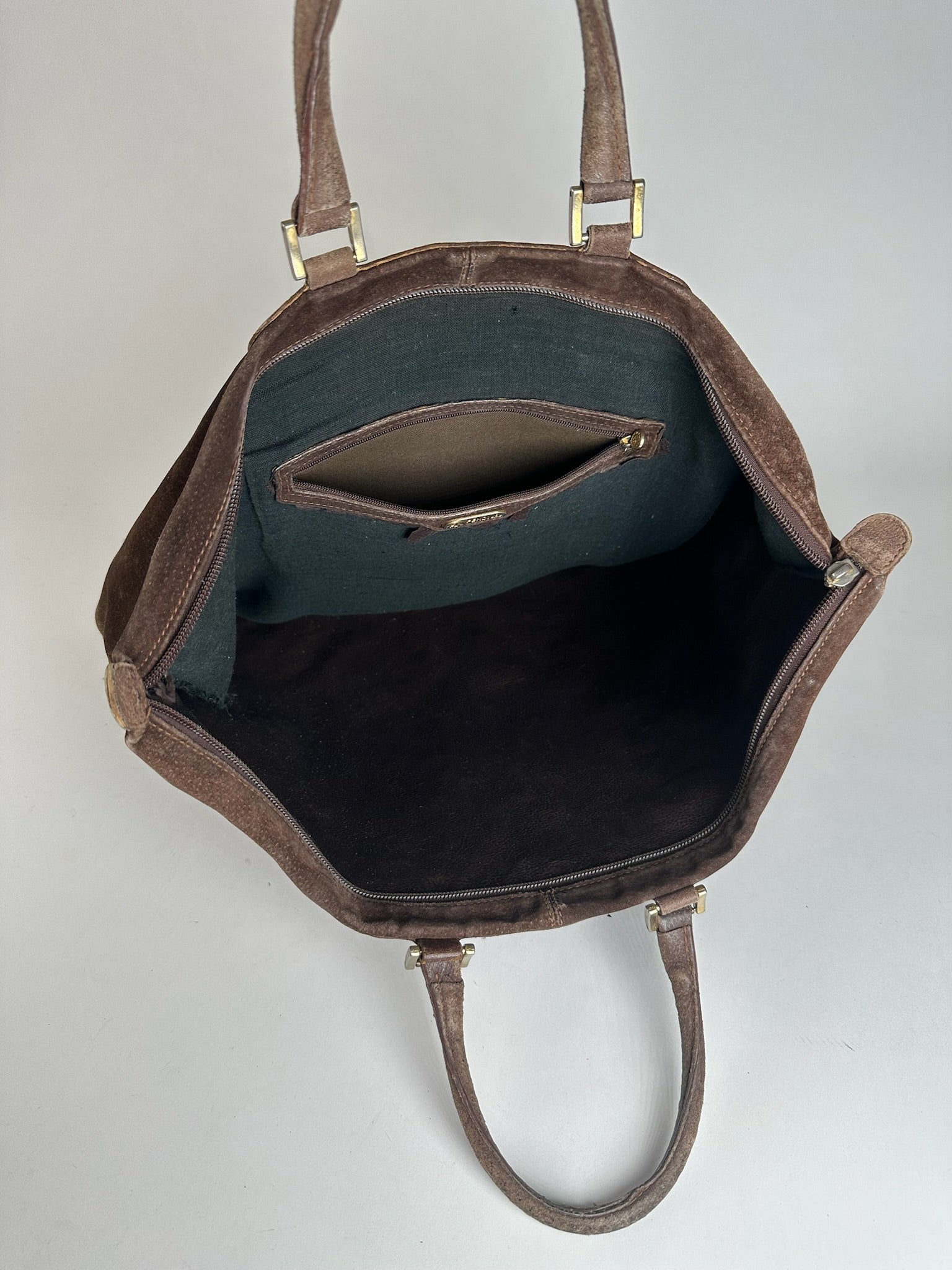 Condition Details: The suede shows minor stains and a vintage odor, but overall the bag is in very good condition.