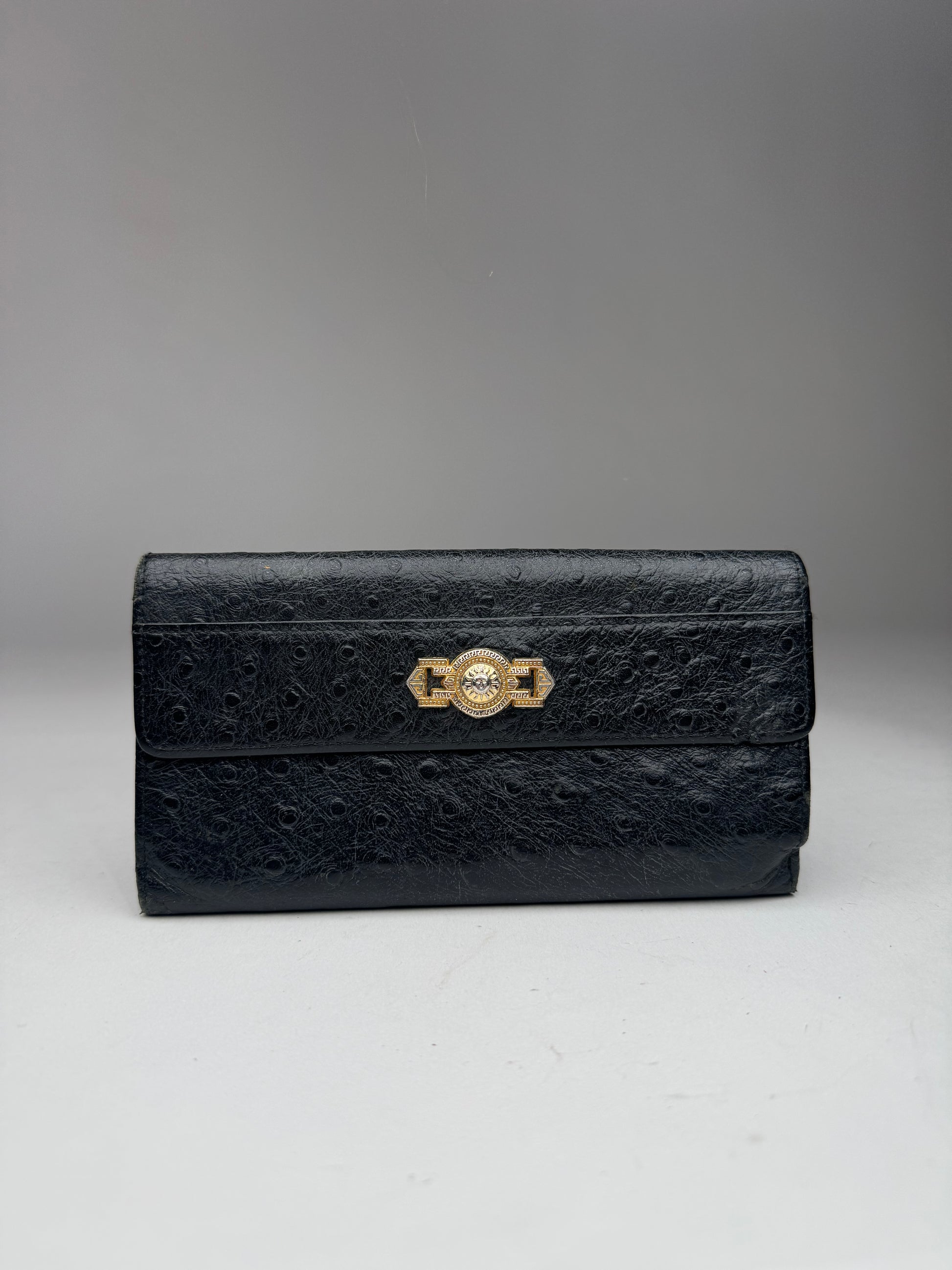 Vintage Gianni Versace Ostrich Leather Wallet Black