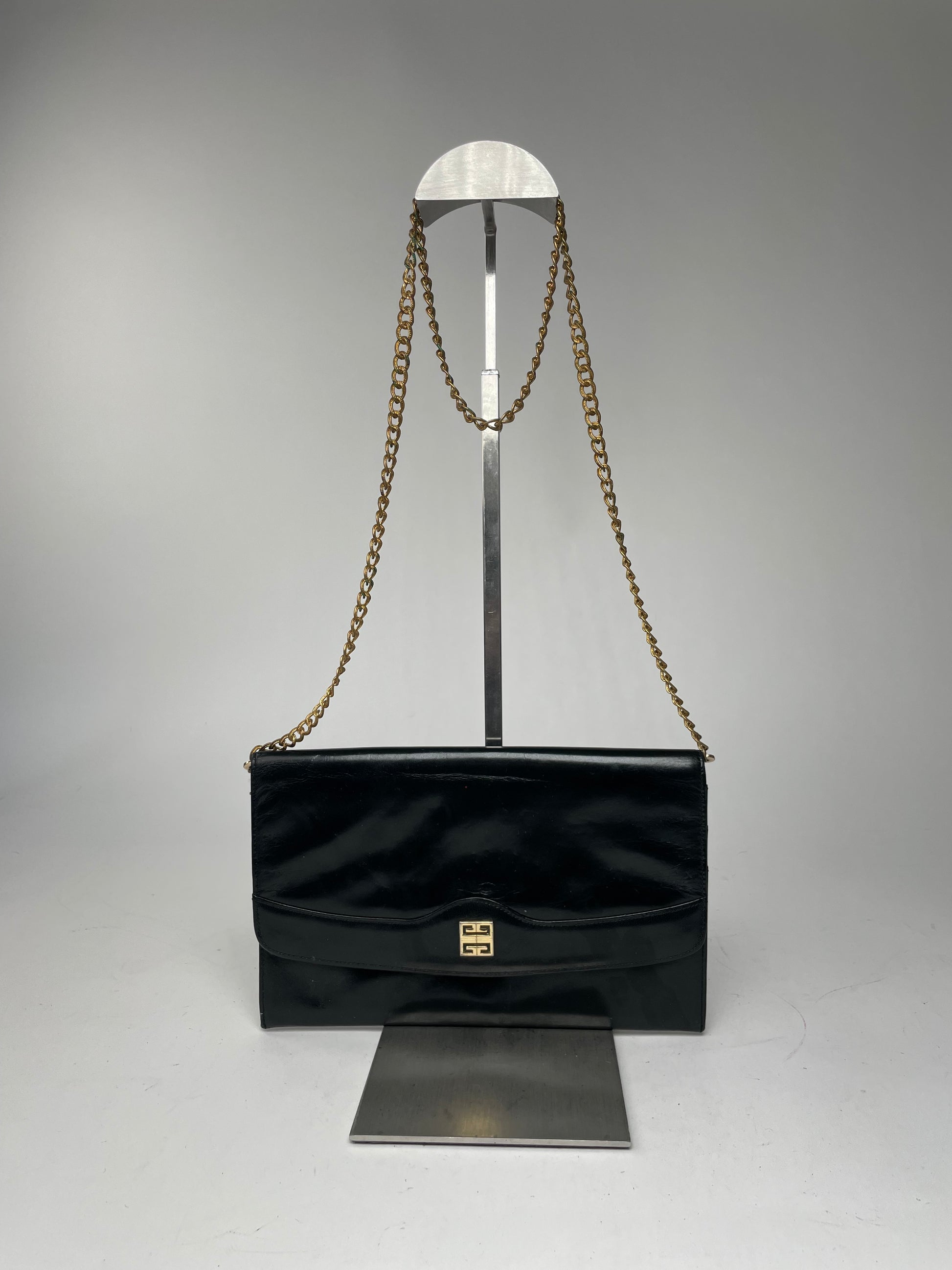 GIVENCHY Vintage 4G Bag. This stylish vintage bag features the iconic 4G design with gold-tone hardware and a chic gold chain strap, making it a timeless statement piece.