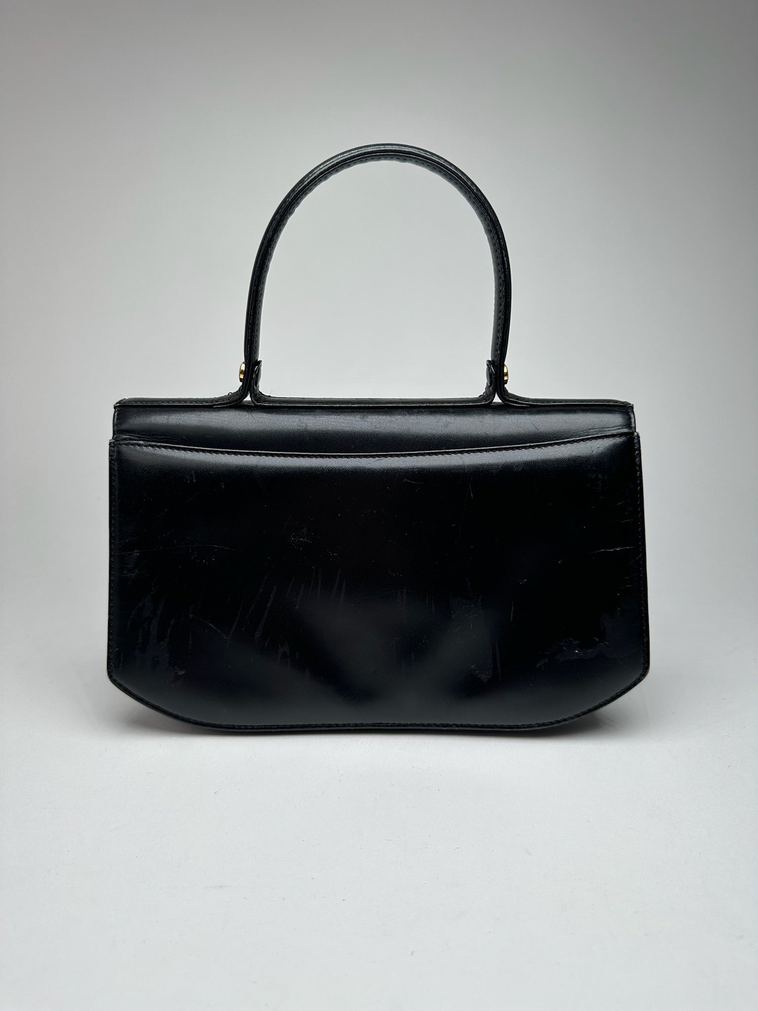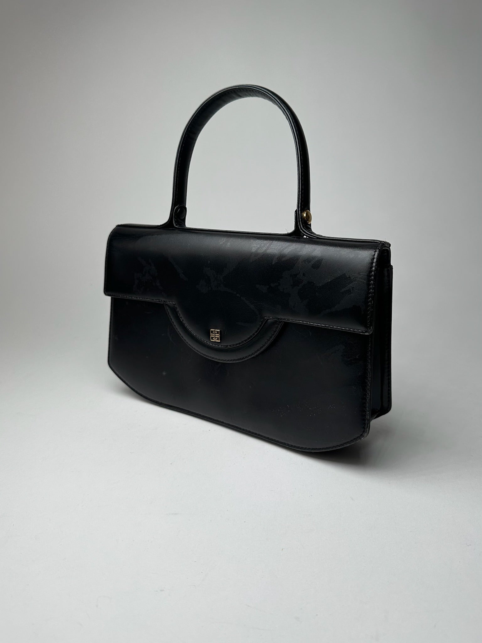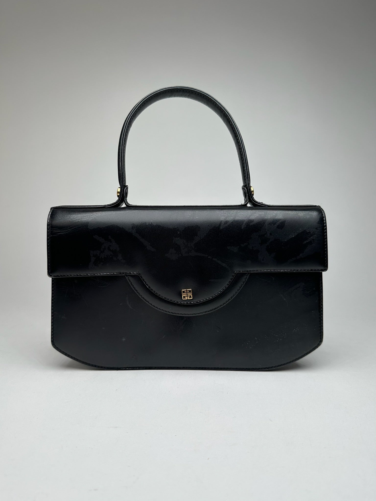 GIVENCHY Vintage Handbag. This chic handbag is finely crafted of black leather and features a single top handle, gold-tone steel hardware, and a magnetic closure.