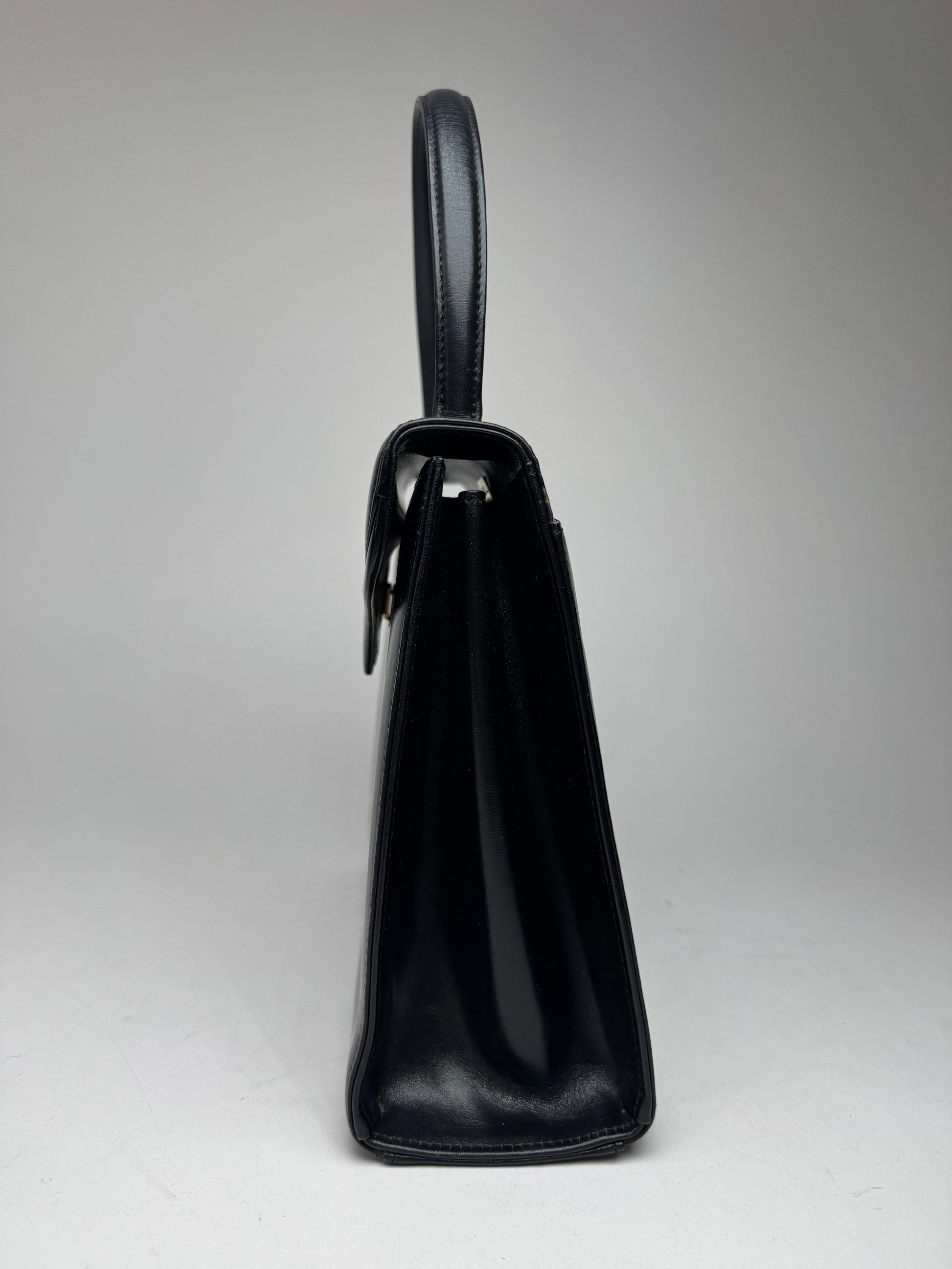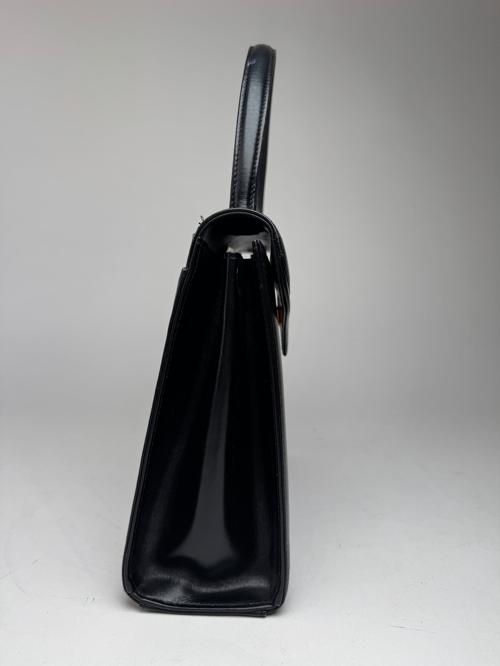 This vintage Givenchy 4G handbag is crafted from sleek black leather, offering a timeless and sophisticated design. It features a short handle and gold-toned steel hardware, adding a refined touch. The bag is secured with a magnetic closure for easy and stylish access.