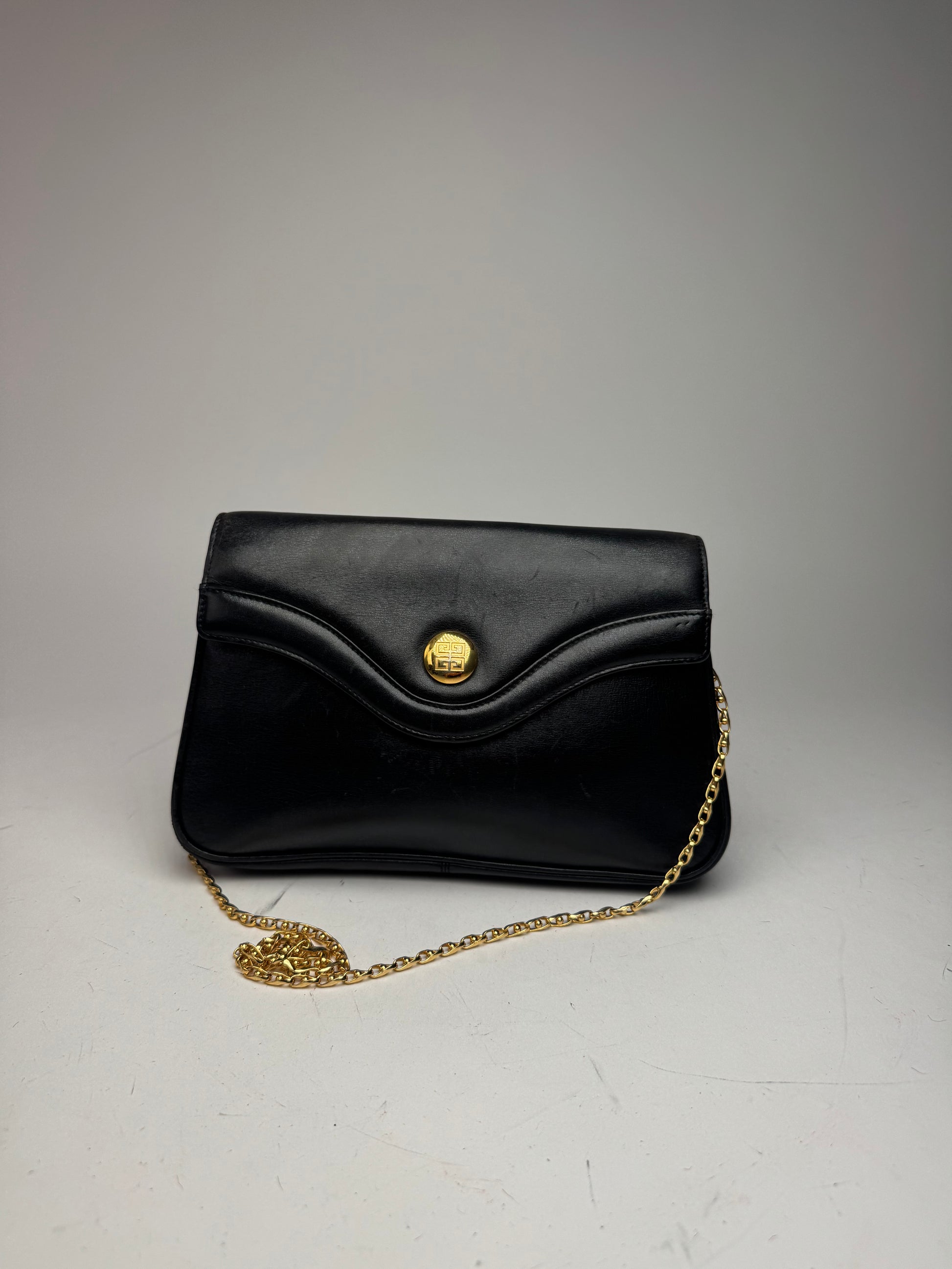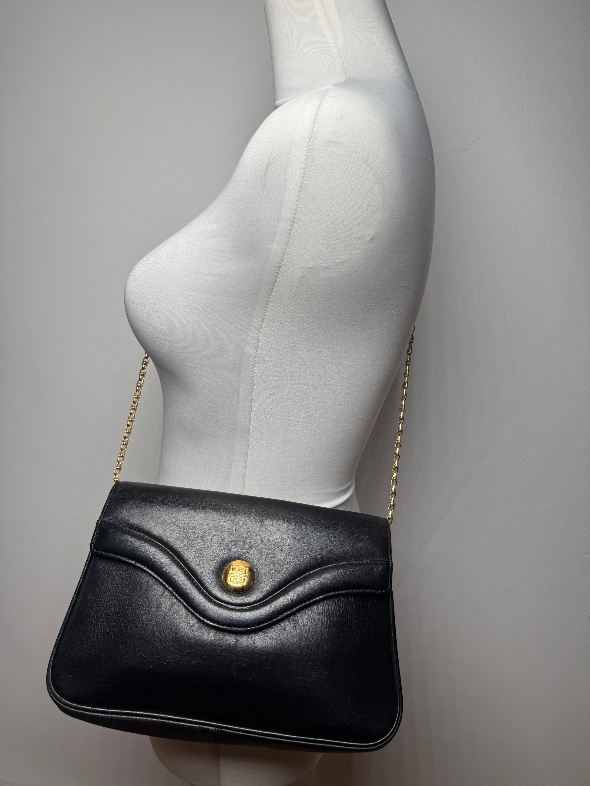 GIVENCHY Vintage Black Leather Shoulder Bag.