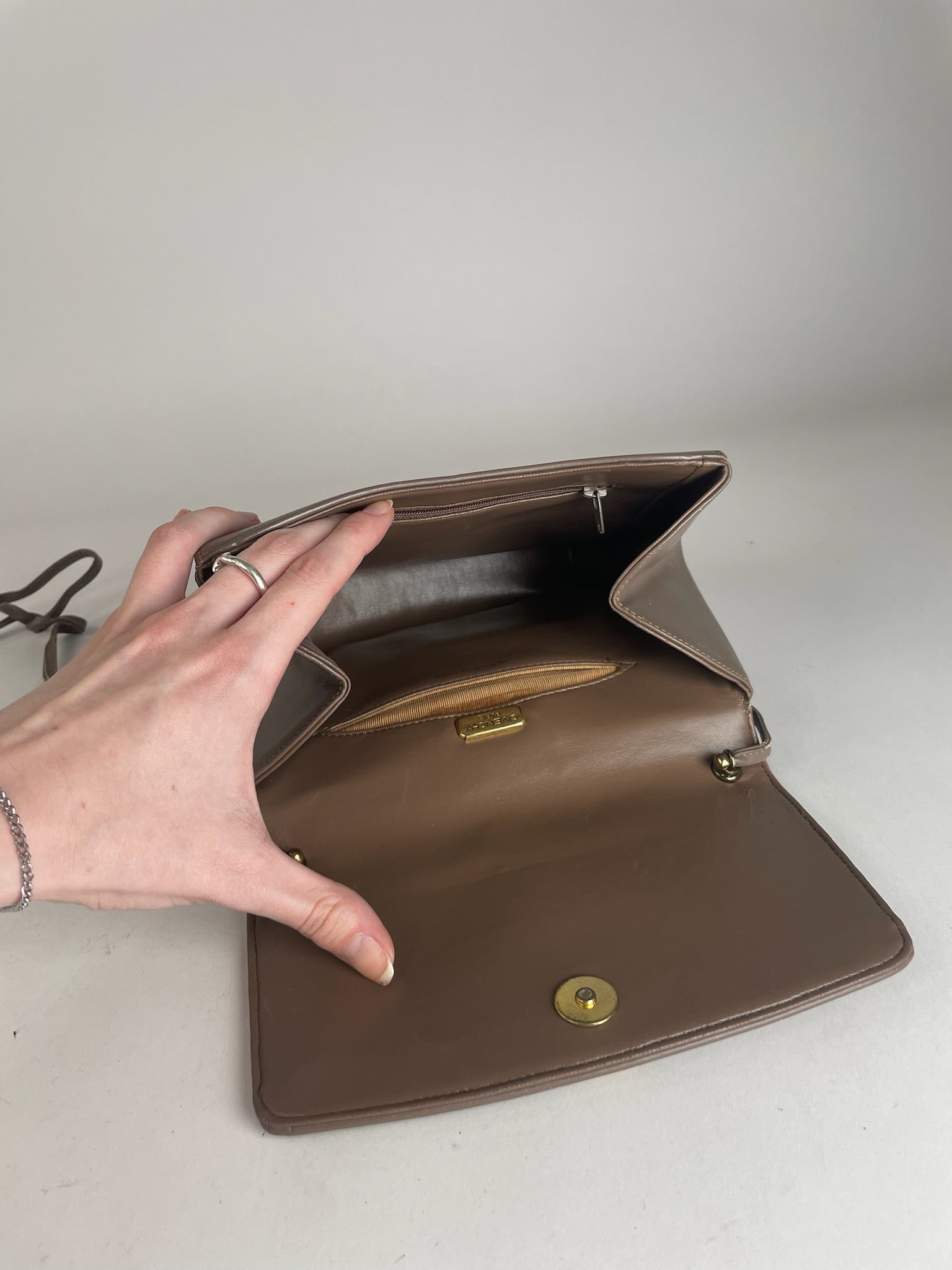 This elegant vintage handbag by Givenchy is crafted from rich brown leather and features the iconic 4G design. The hardware is gold-toned, adding a touch of luxury to the piece. The bag is in very good condition, showing only minor scratches.