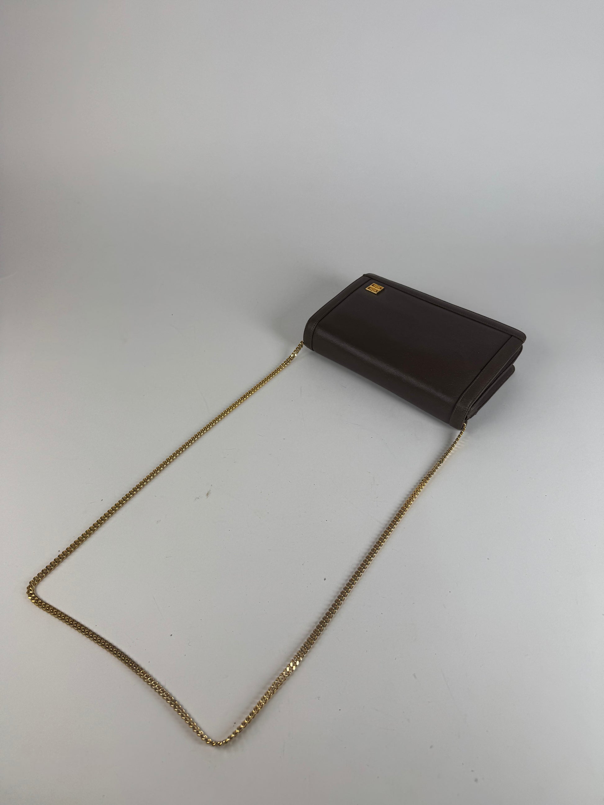 GIVENCHY Vintage Brown Leather Chain Shoulder Bag