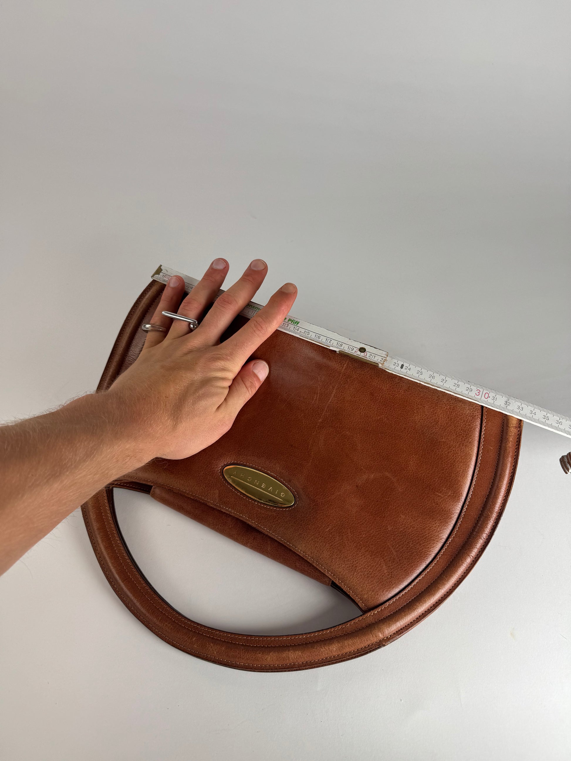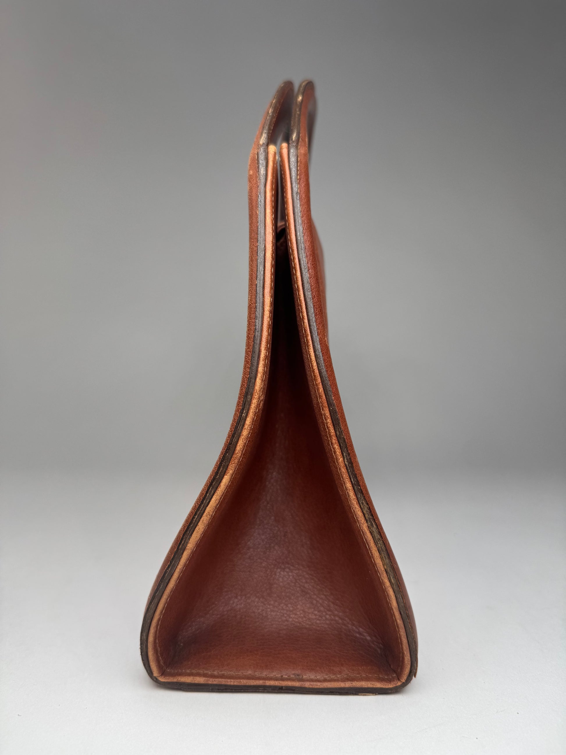 GIVENCHY Vintage Antigona Handbag. This vintage Givenchy Antigona handbag is crafted from brown leather and features a unique, distinctive shape. It has a short handle and gold-tone steel hardware, adding a refined touch. The interior is lined with brown leather, ensuring a luxurious finish. Despite minor scratches, the bag remains in very good condition. Made in Japan.