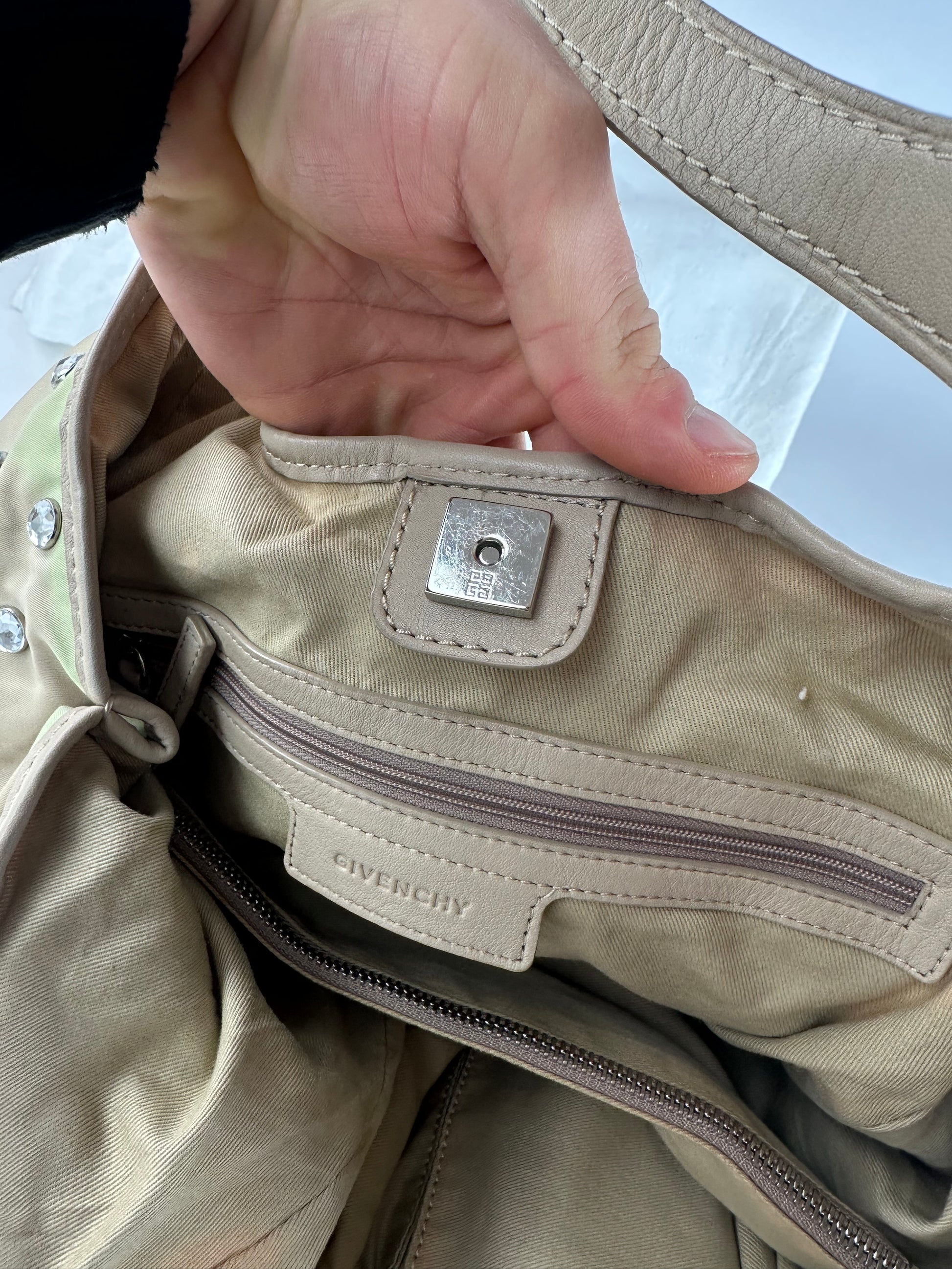 Vintage Givenchy Cristal Polyester Leather Handbag Beige Brown