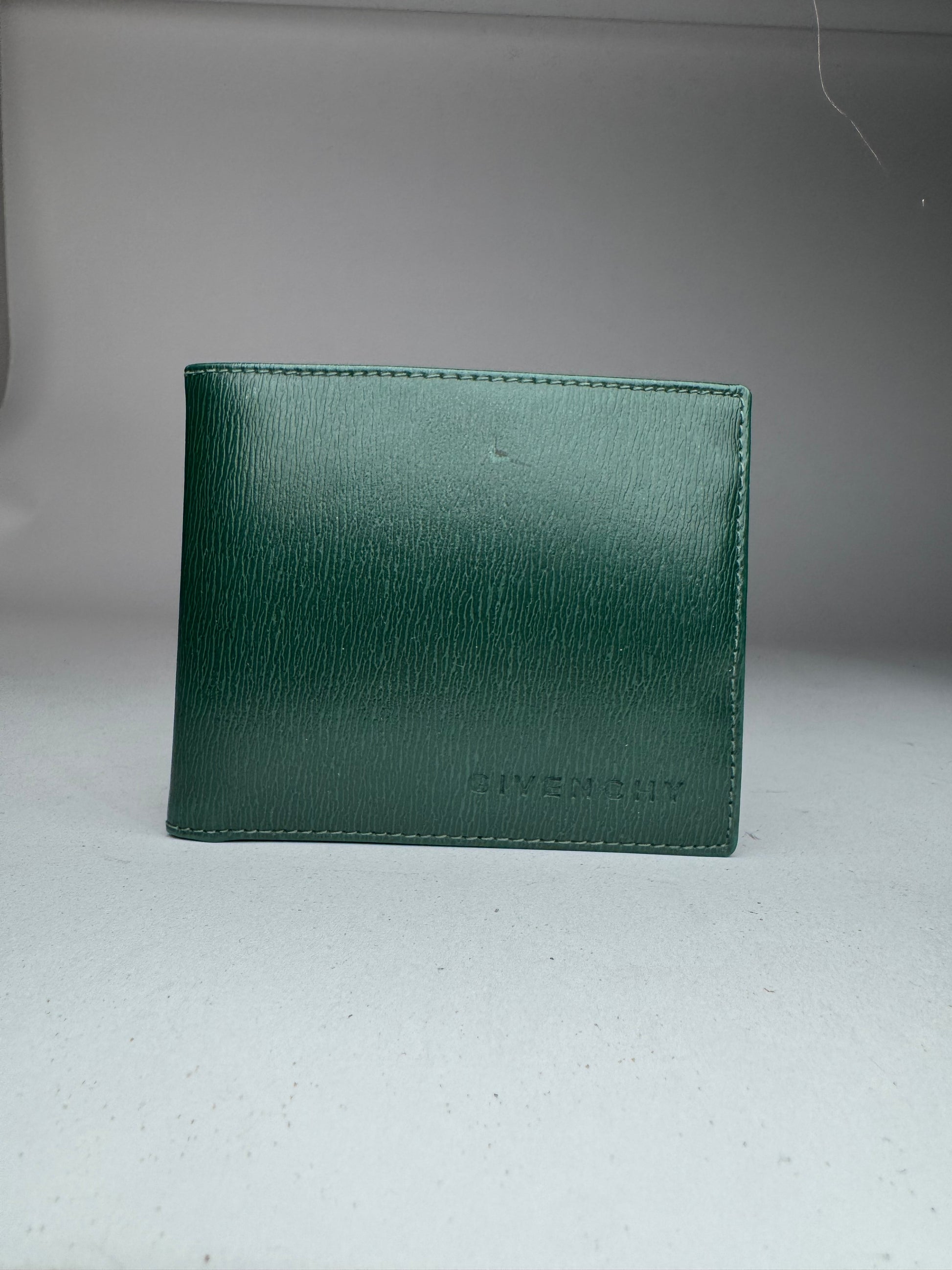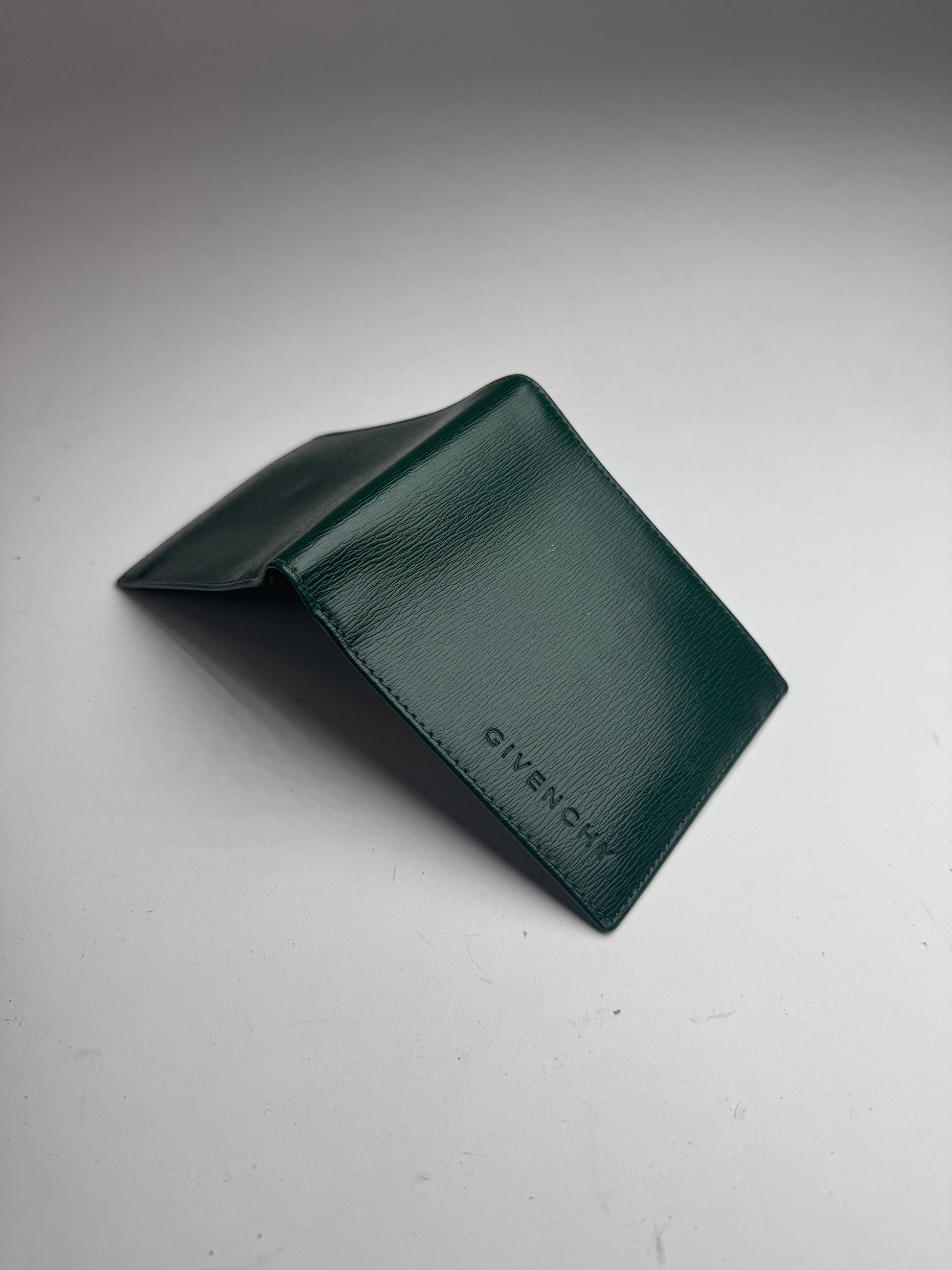 GIVENCHY Vintage GV3 Wallet. This vintage Givenchy GV3 wallet is crafted from green leather in a foldable design, combining elegance with everyday functionality. The interior is lined with green canvas featuring the Givenchy monogram. Despite minor scratches, the wallet remains in very good condition. A stylish and timeless unisex accessory.