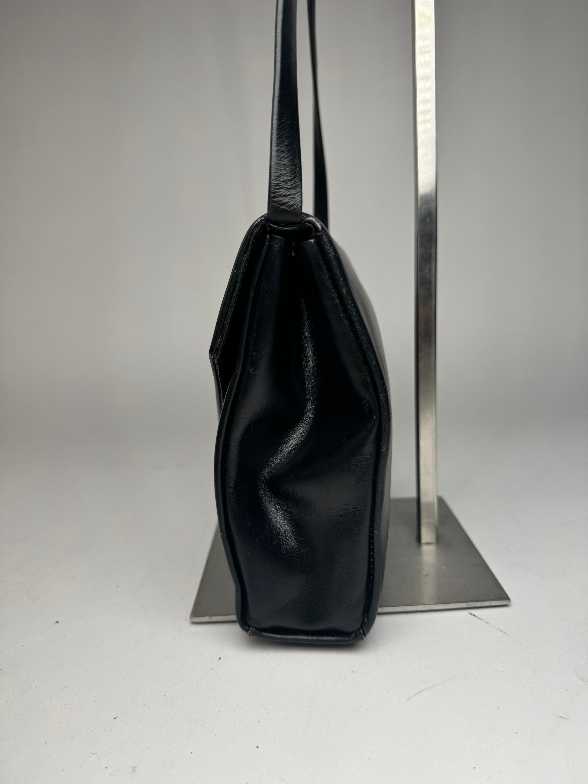 Condition Details: The exterior leather is clean and beautiful overall. The snap button closure does not close properly and part of the mechanism inside appears broken, recommended to replace. Otherwise, the bag remains in very good condition.