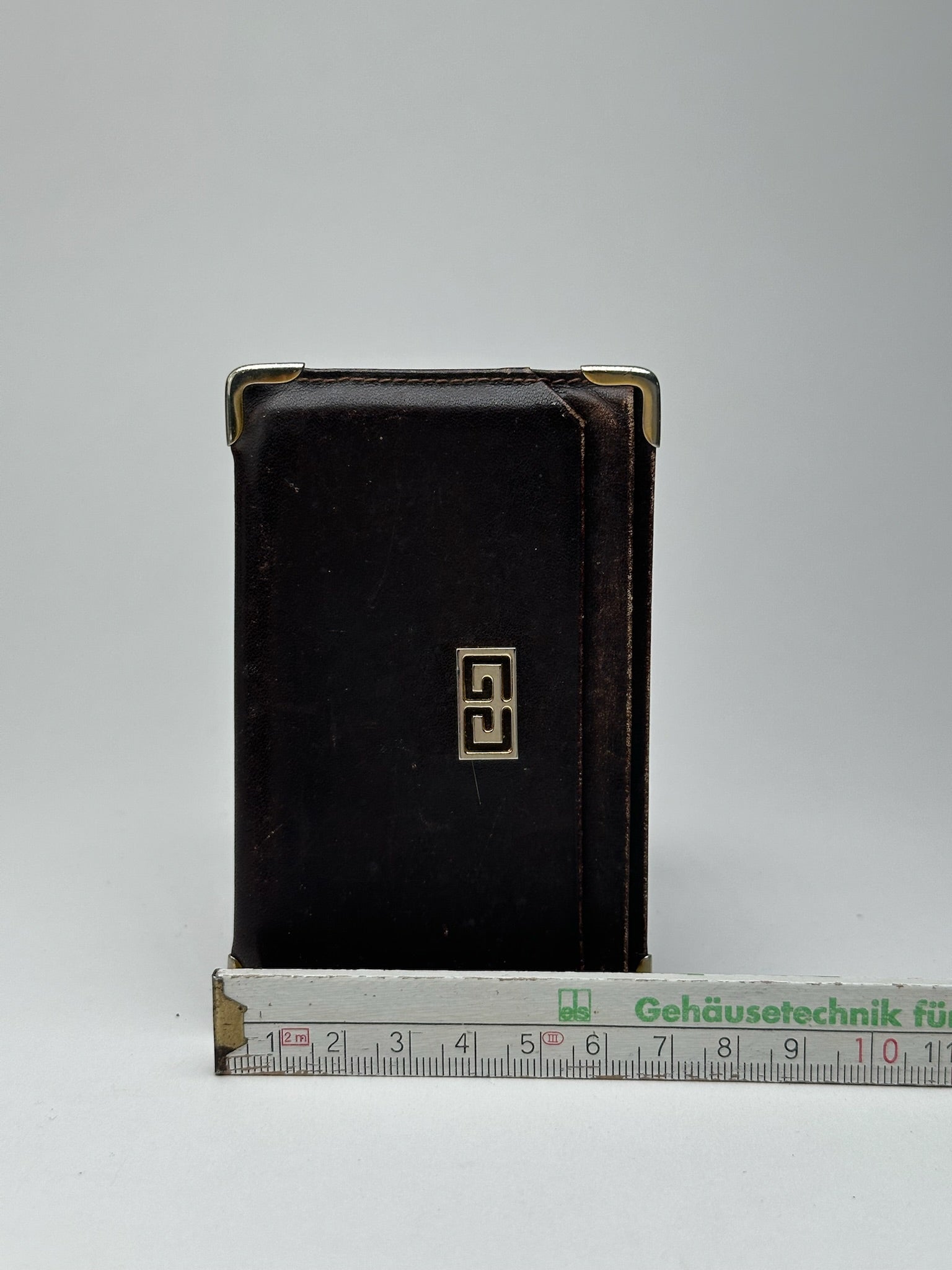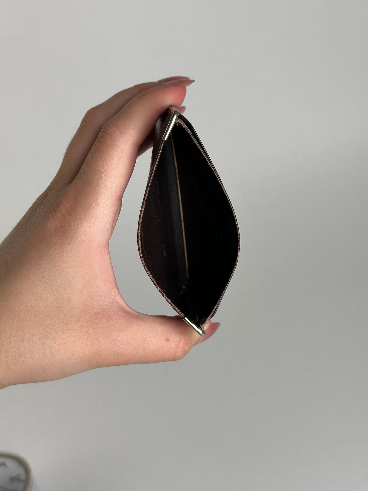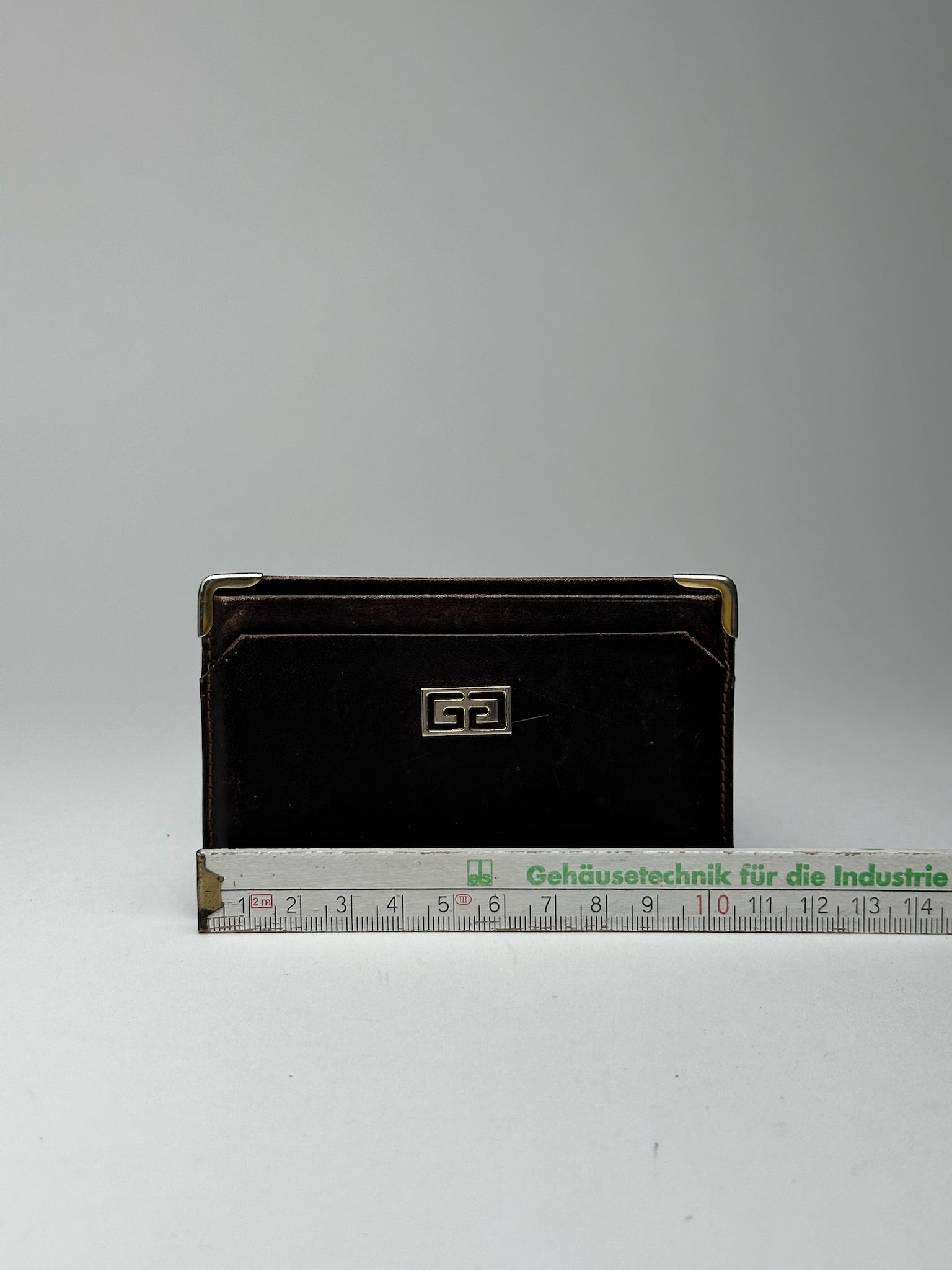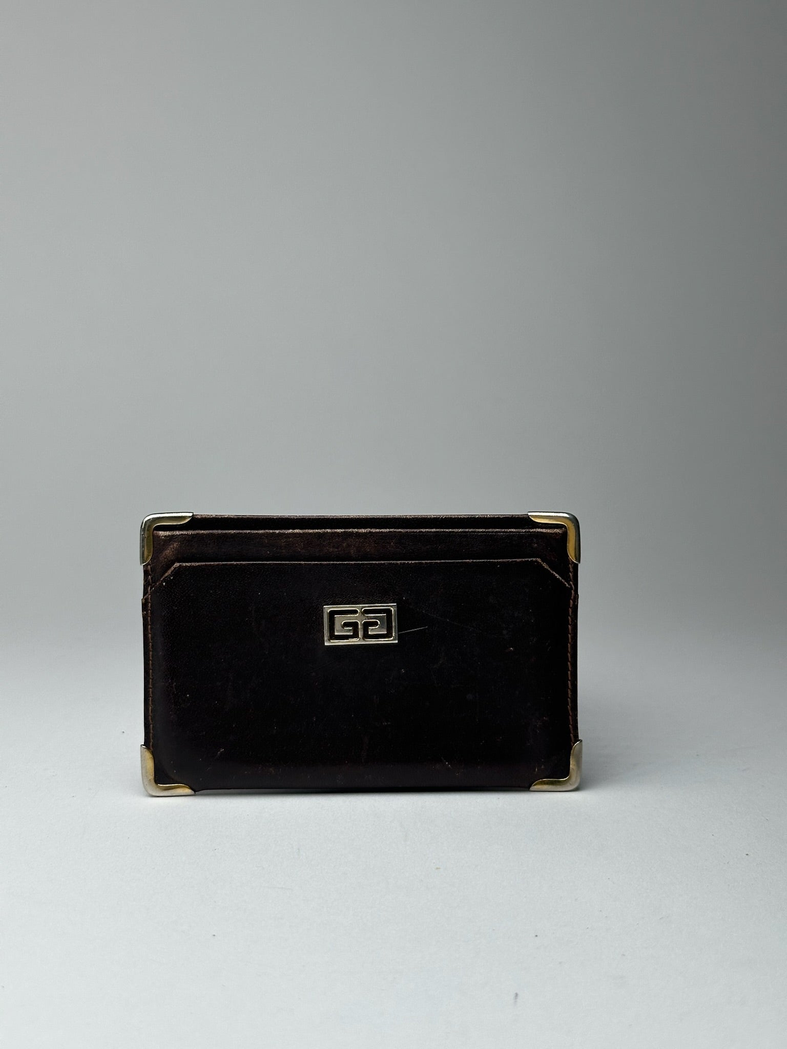 GIVENCHY Vintage Brown Leather Cardholder. This chic cardholder is finely crafted of brown leather. The accessory features gold-tone stainless steel hardware and offers space for at least eight cards.