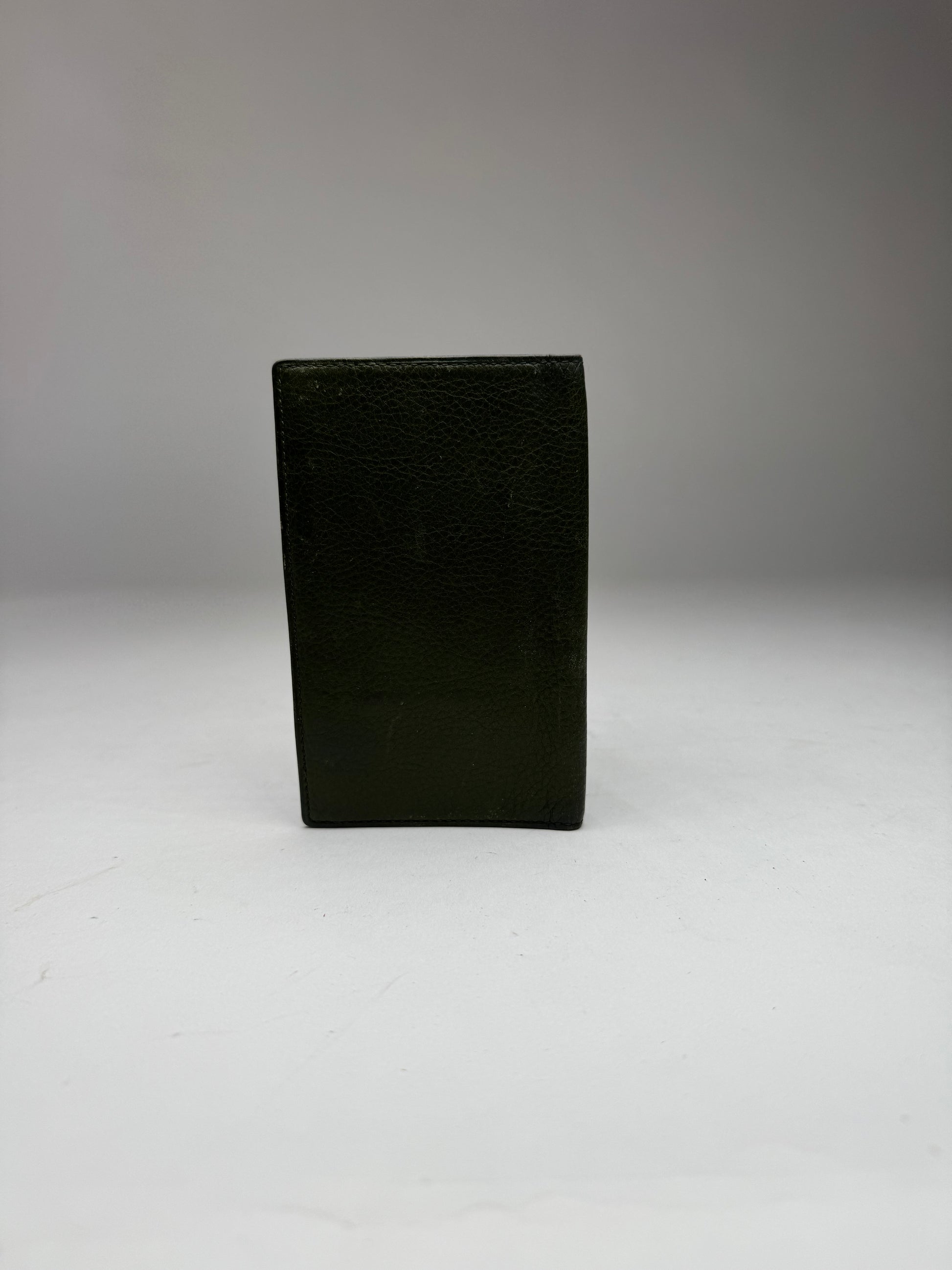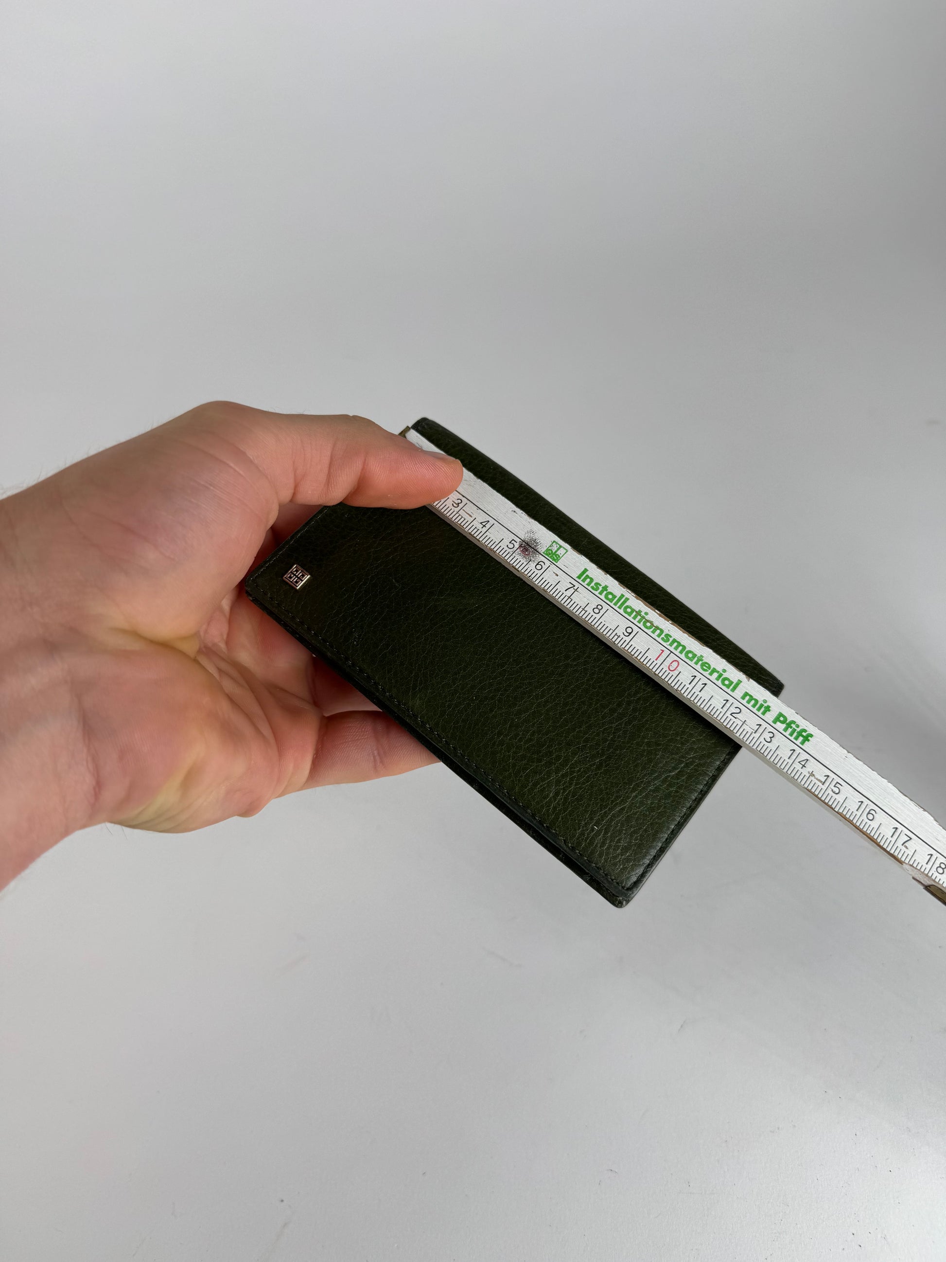 This vintage Givenchy card holder is crafted from elegant green leather, offering a timeless and sophisticated design. It features silver-toned steel hardware for a refined finish. The black lining adds a sleek contrast, making it a stylish and practical unisex accessory.