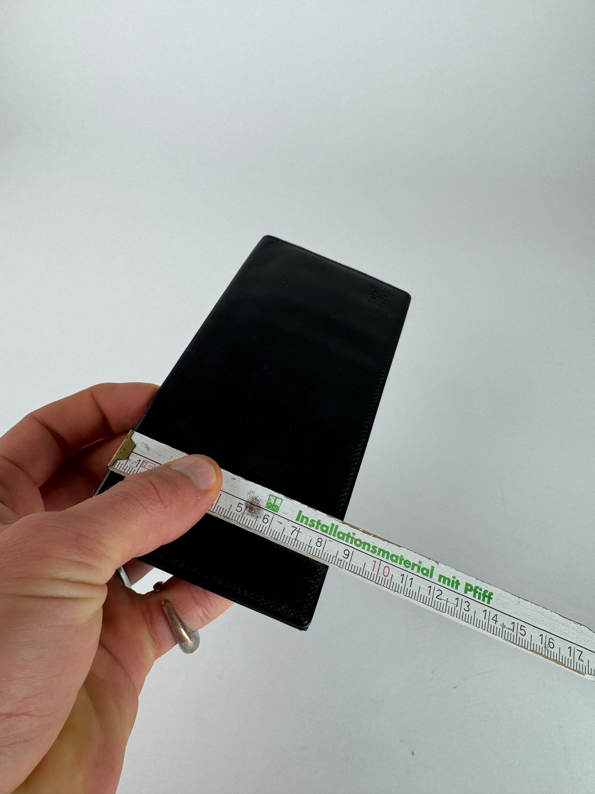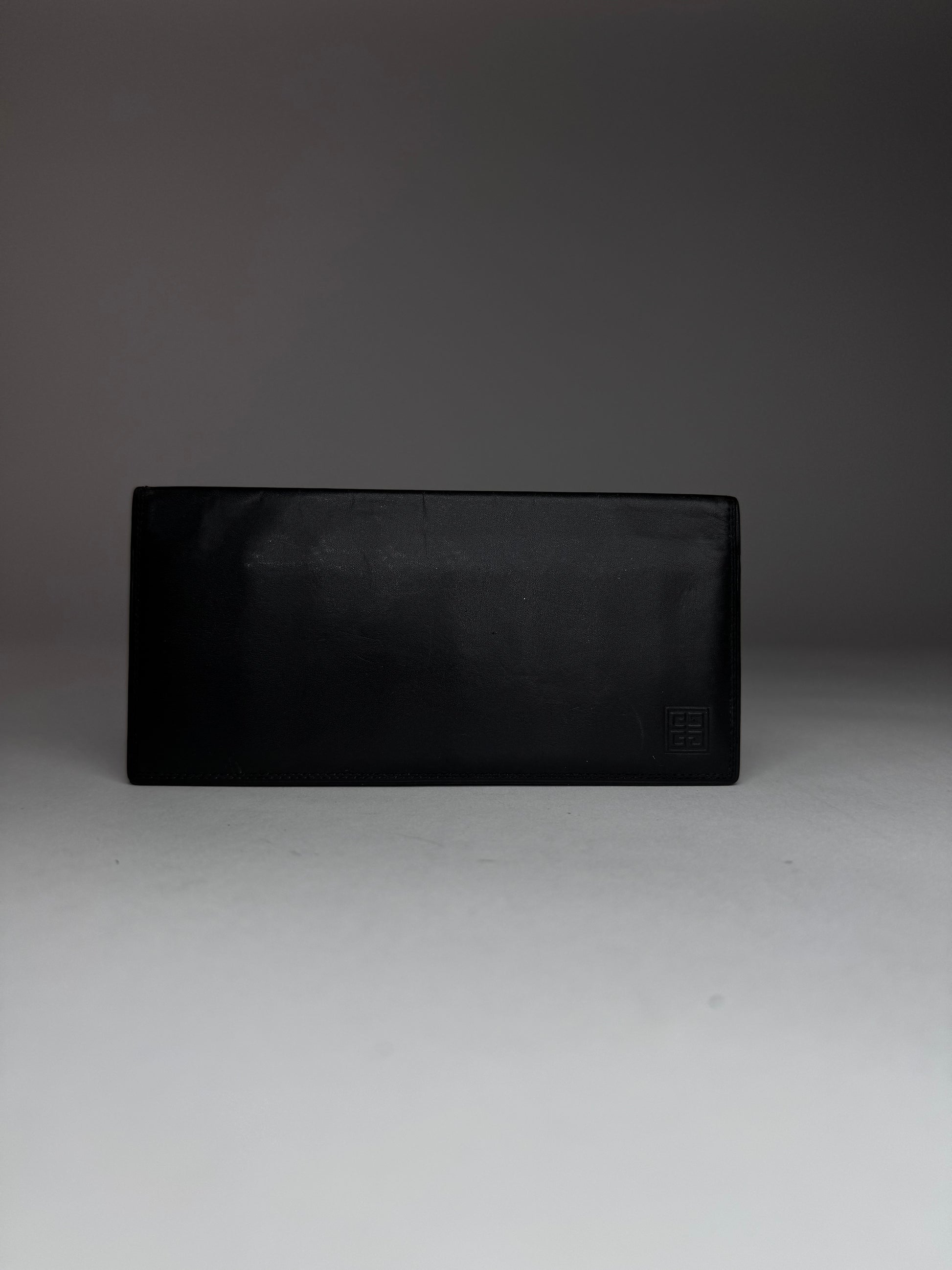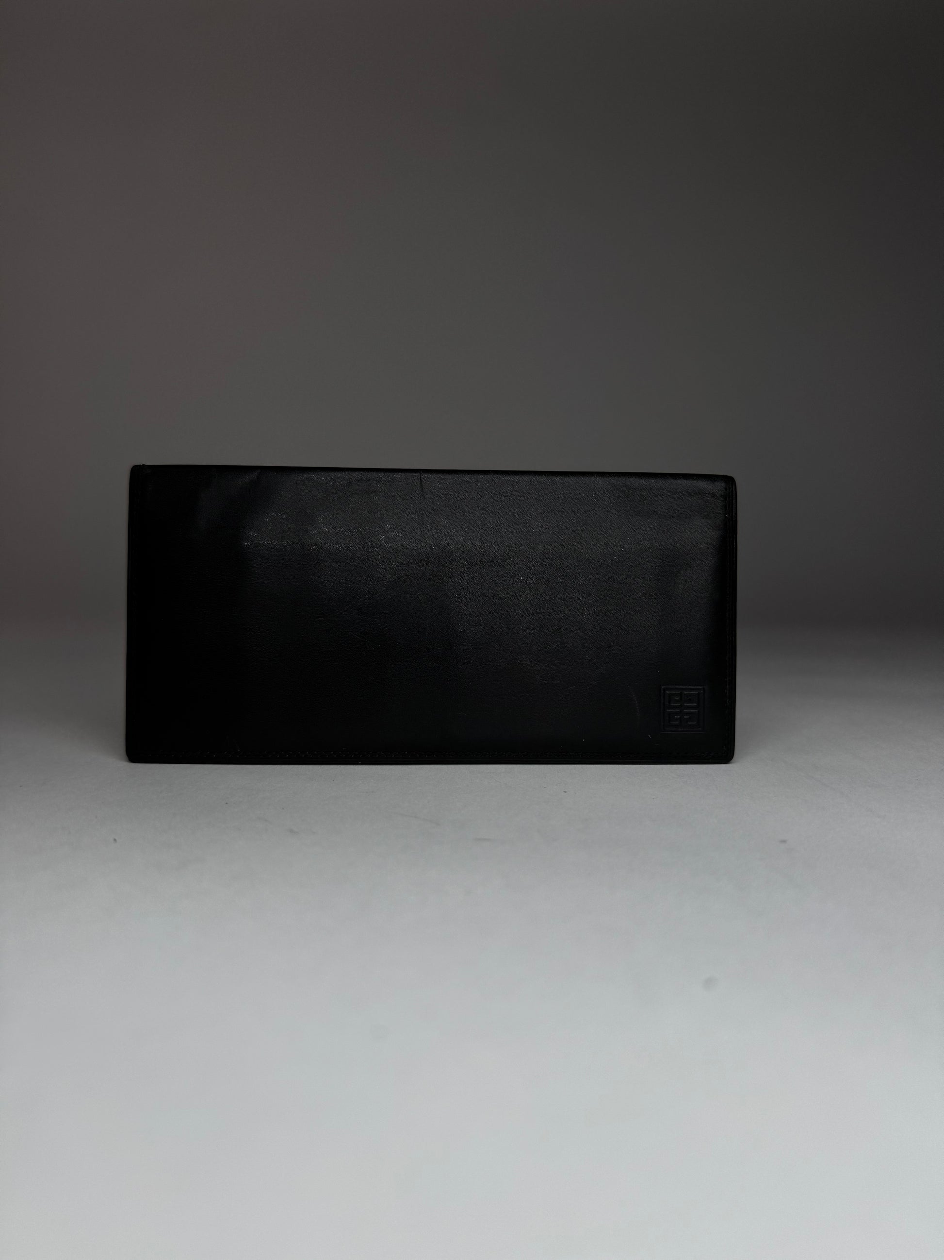 GIVENCHY Vintage Card Holder / ID Wallet. This elegant vintage card holder / ID wallet from Givenchy is crafted from black leather, offering a sleek and sophisticated design. The Givenchy logo is prominently displayed on the front, adding a refined touch.