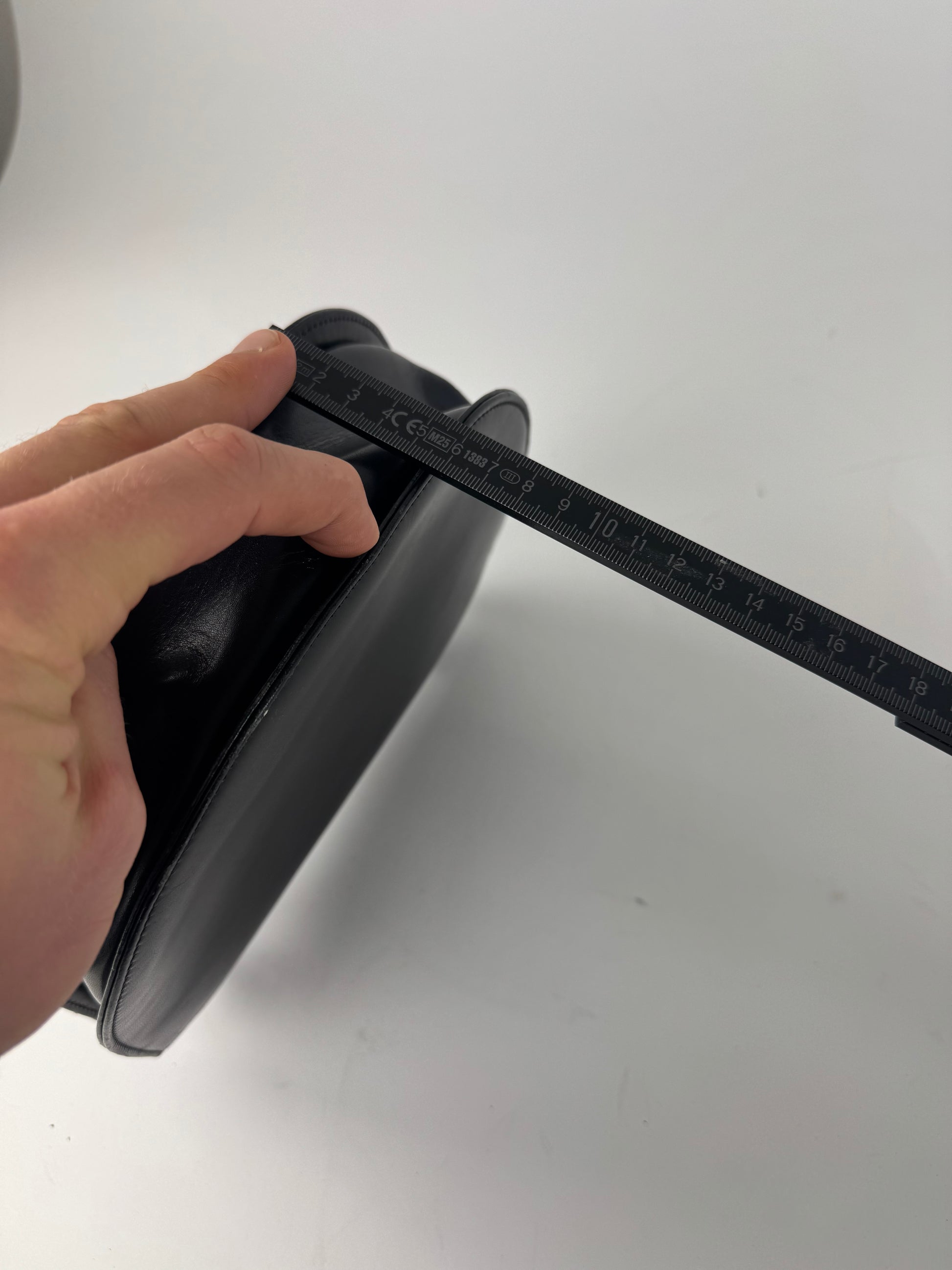 GIVENCHY Vintage Handbag. This chic handbag is finely crafted of black leather. Givenchy is a prestigious French luxury house founded in 1952, renowned for its elegant designs and refined craftsmanship. The bag features a short handle, a distinctive semi-round semi-square silhouette, a gold steel Givenchy logo on the front, and a magnetic closure. The closure opens to an interior lining.