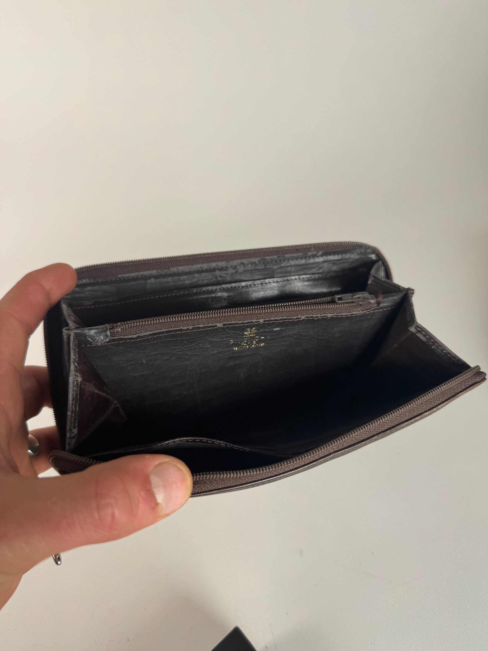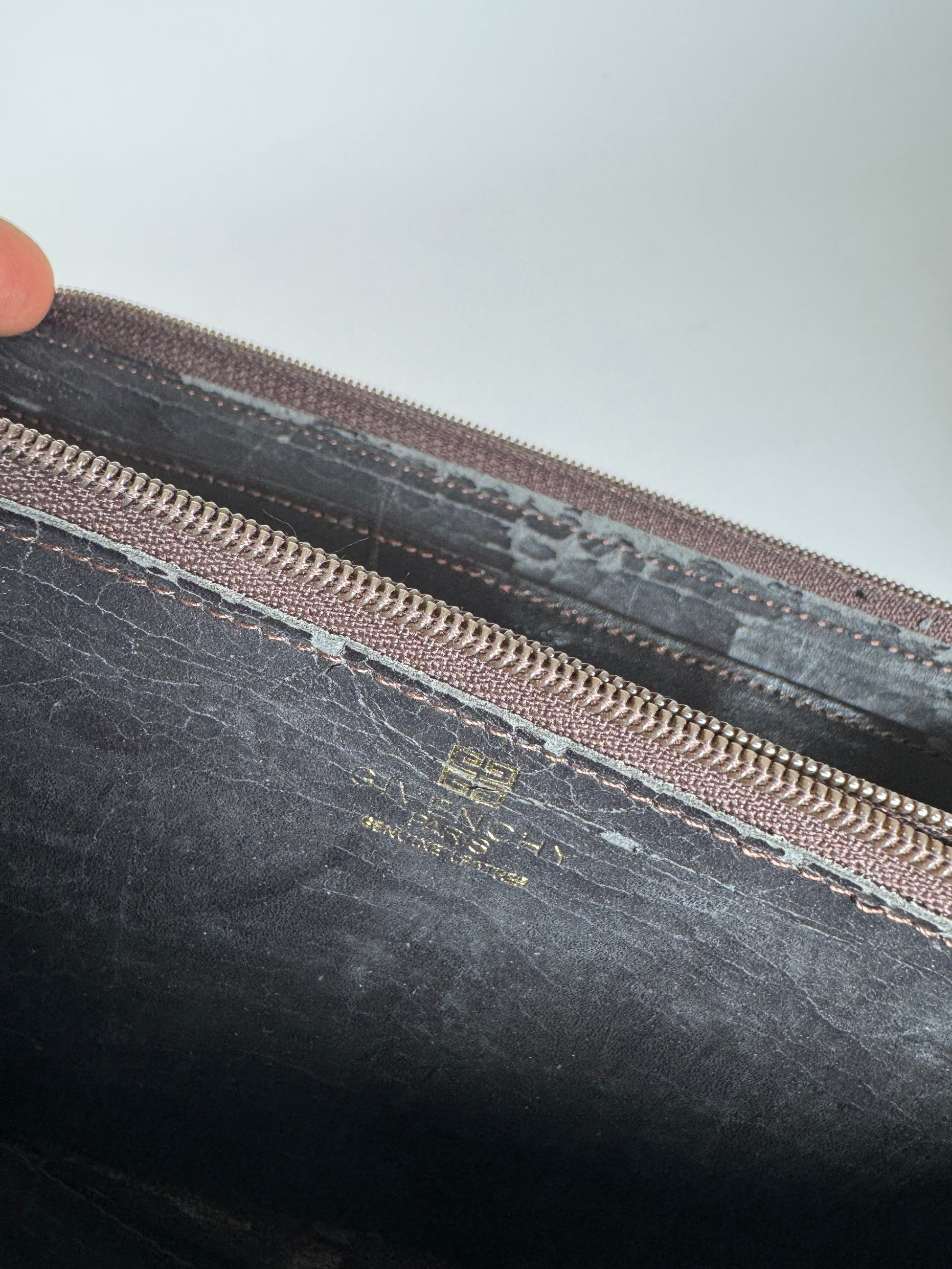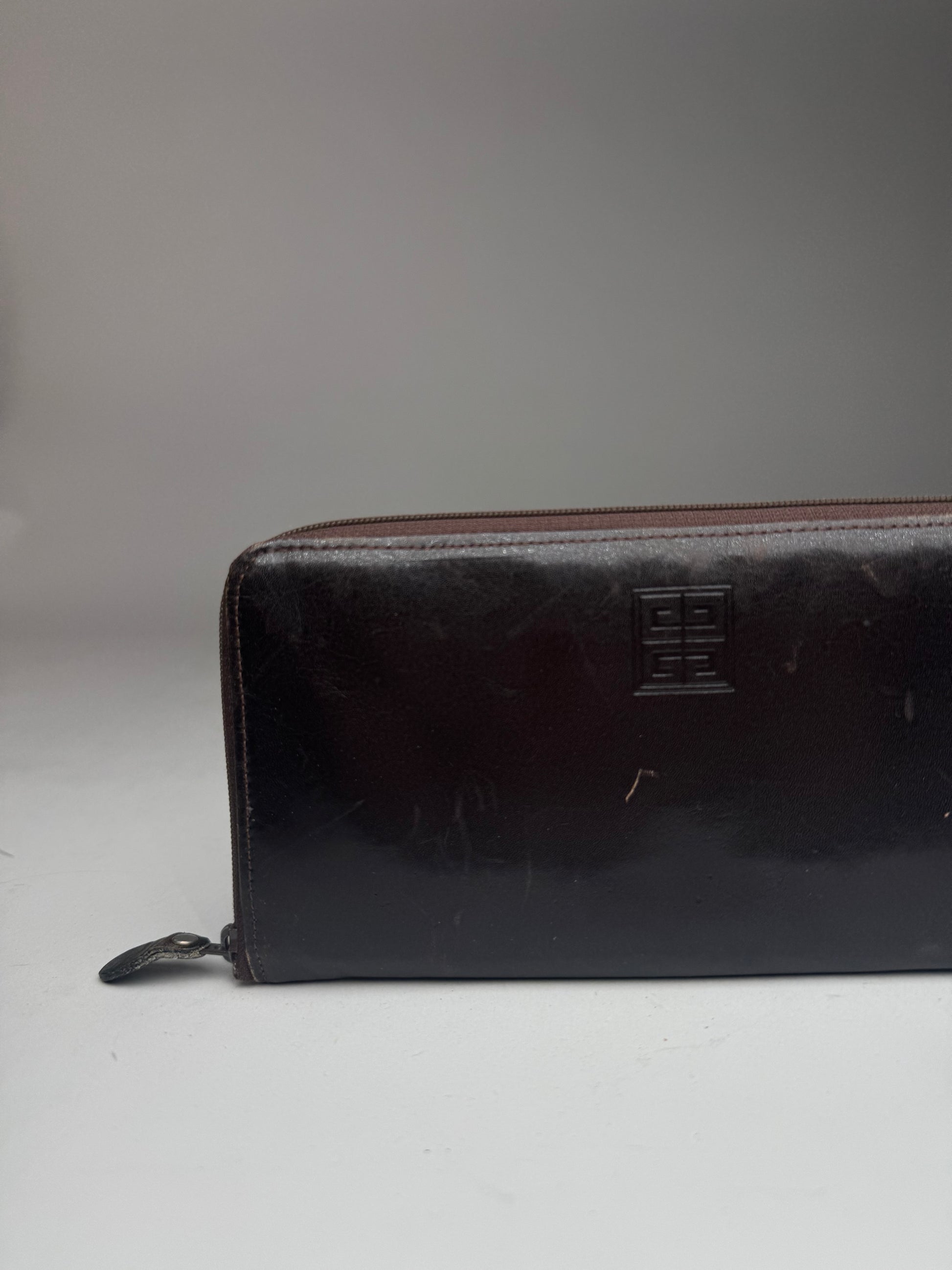 GIVENCHY Vintage Wallet. This vintage Givenchy wallet is crafted from brown leather and features a top zipper closure for secure storage. While the exterior remains in solid shape, the interior shows signs of damage, so the overall condition is rated as good. A timeless and practical piece.