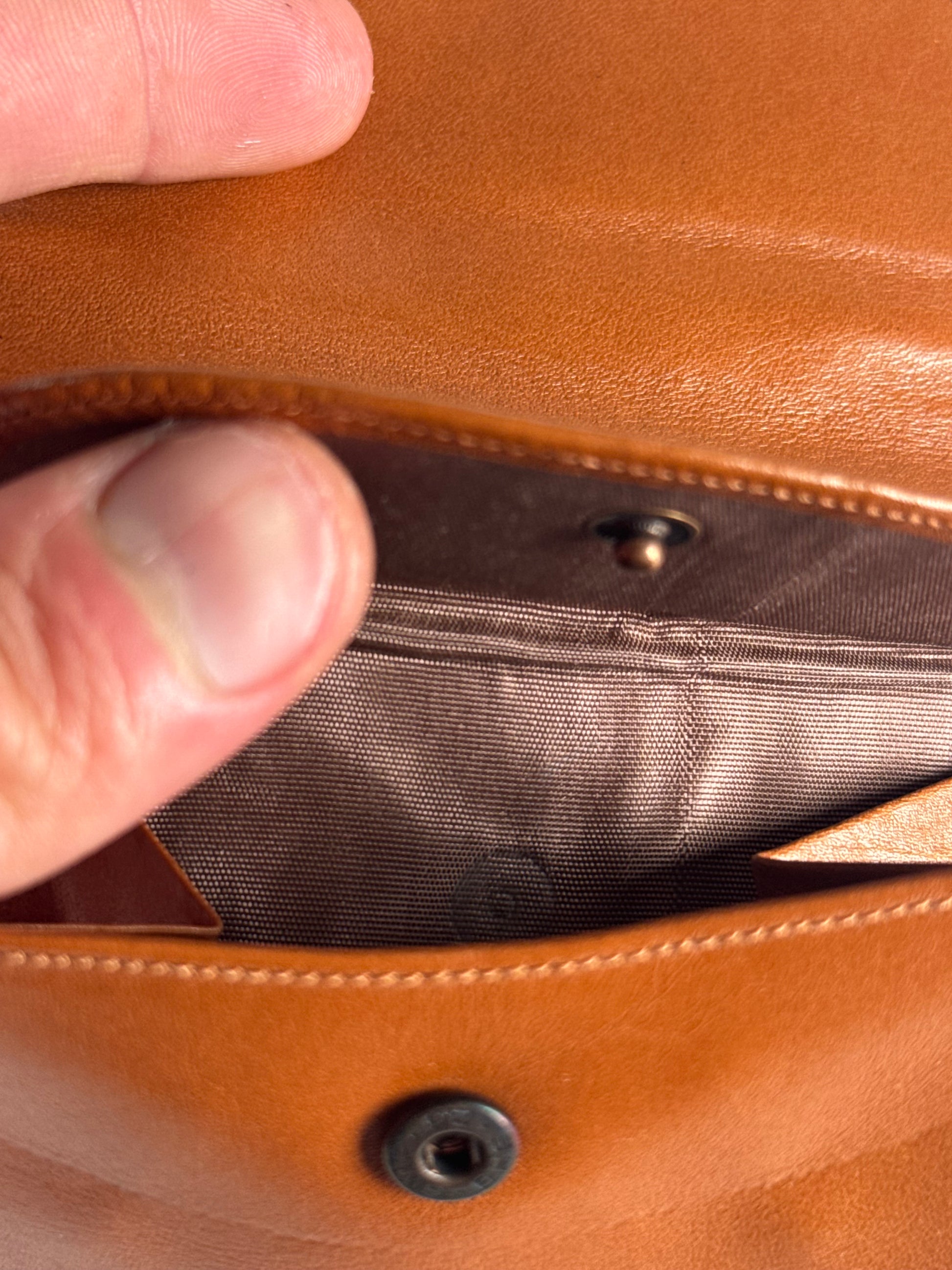 Condition Details: The exterior leather and hardware are in very good condition with minor signs of wear. The interior canvas is clean and well-preserved.