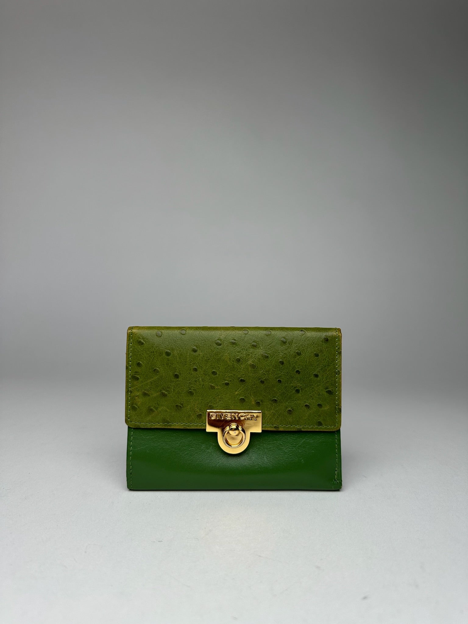 GIVENCHY Green Ostrich Leather GV3 Vintage Wallet.