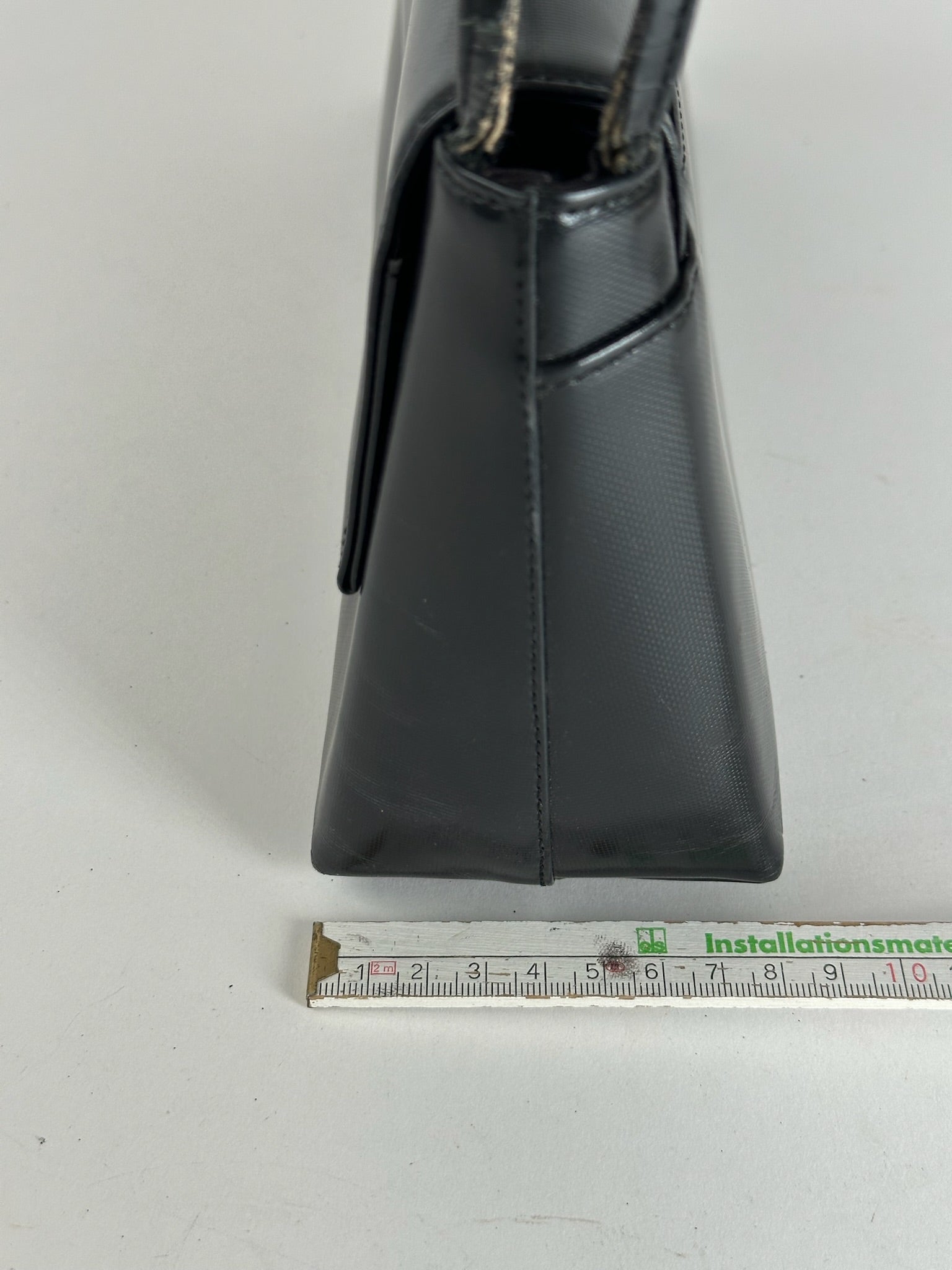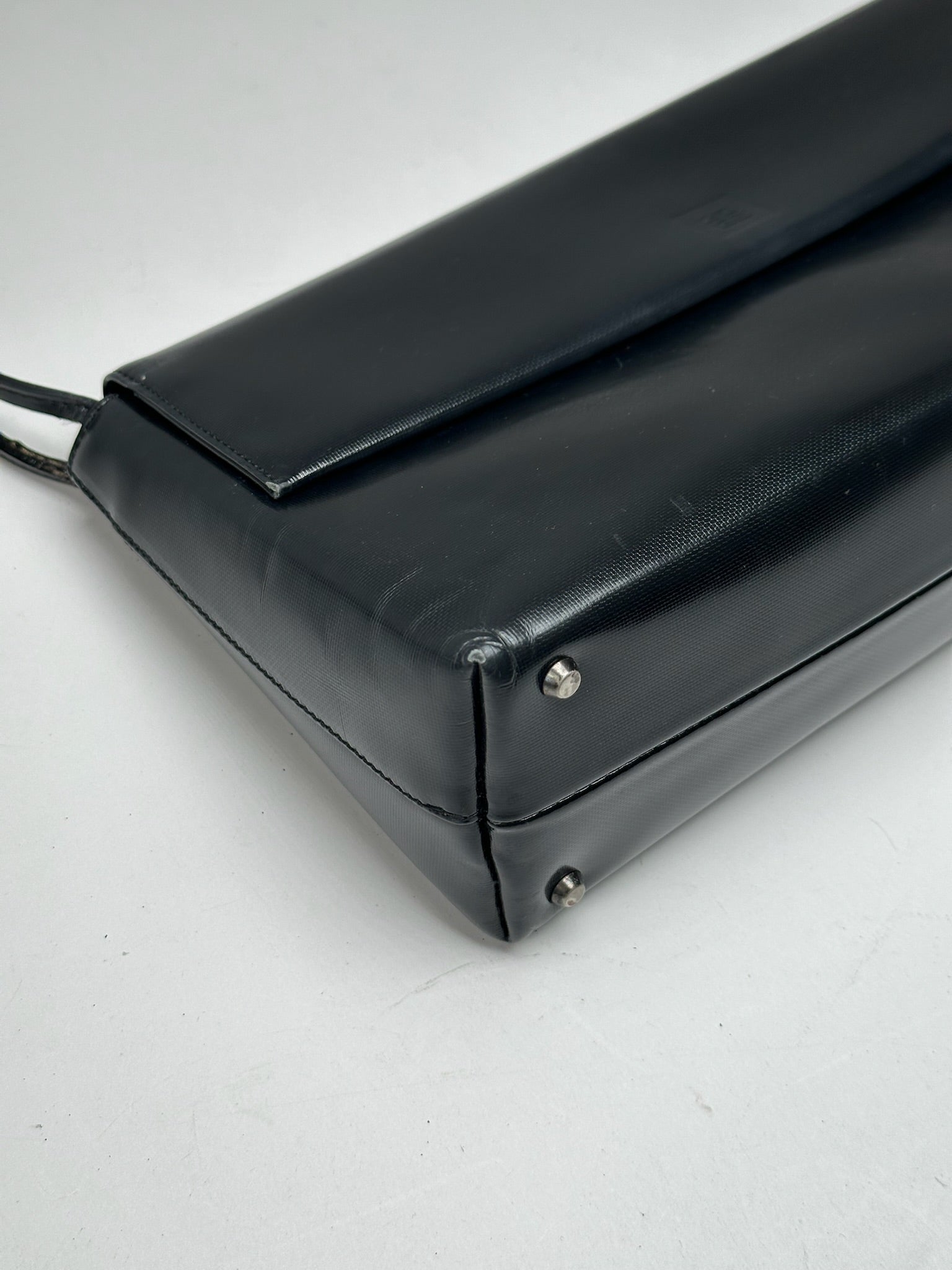 Condition Details: The exterior patent leather shows visible scratches but remains in very good overall condition. The hardware has minor surface wear. The interior is lined with anthracite canvas and is clean and well-maintained.