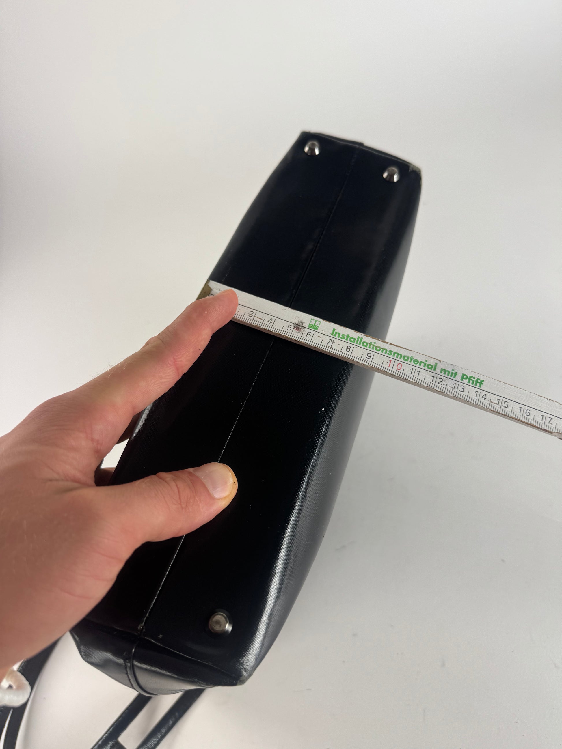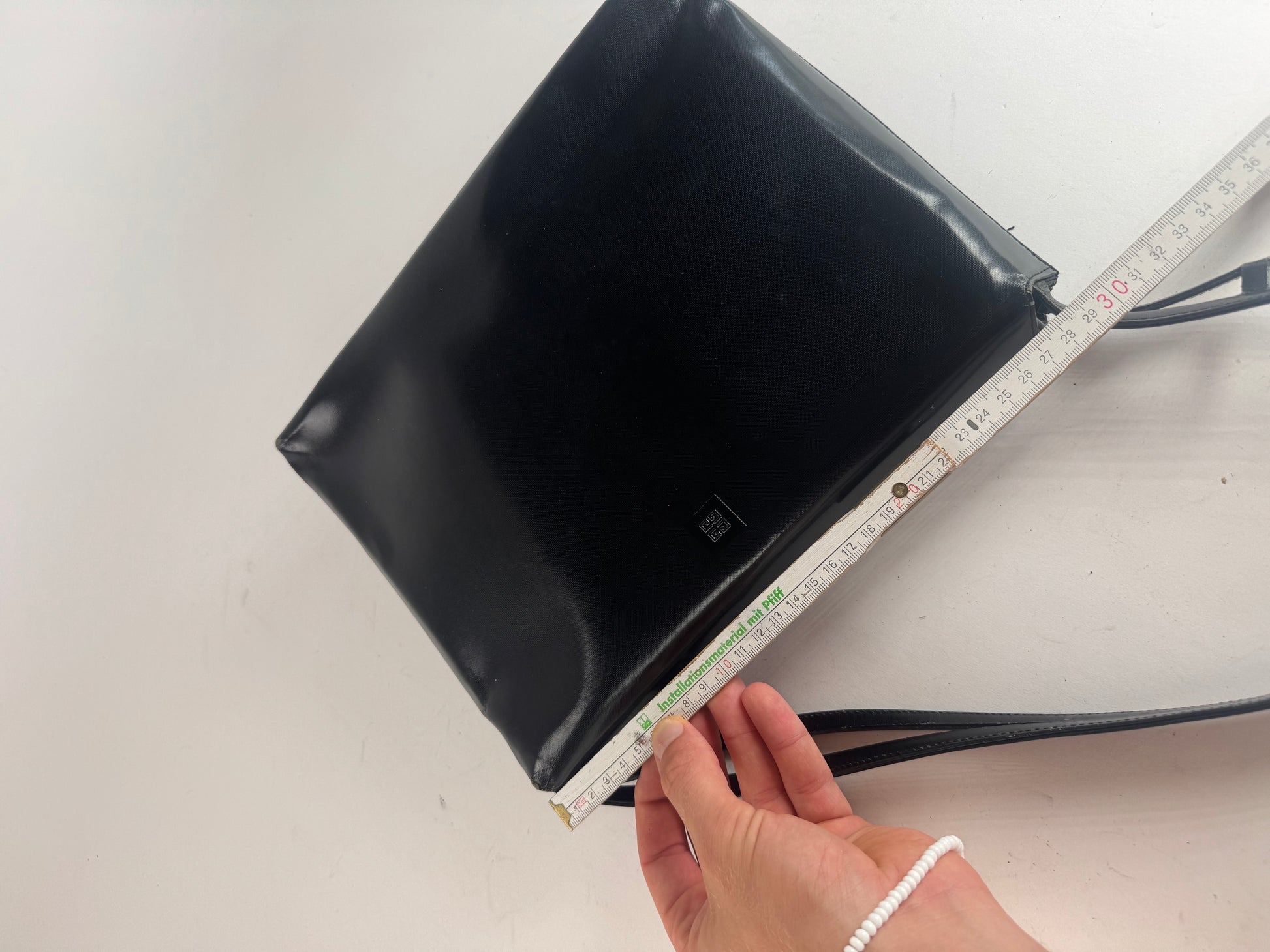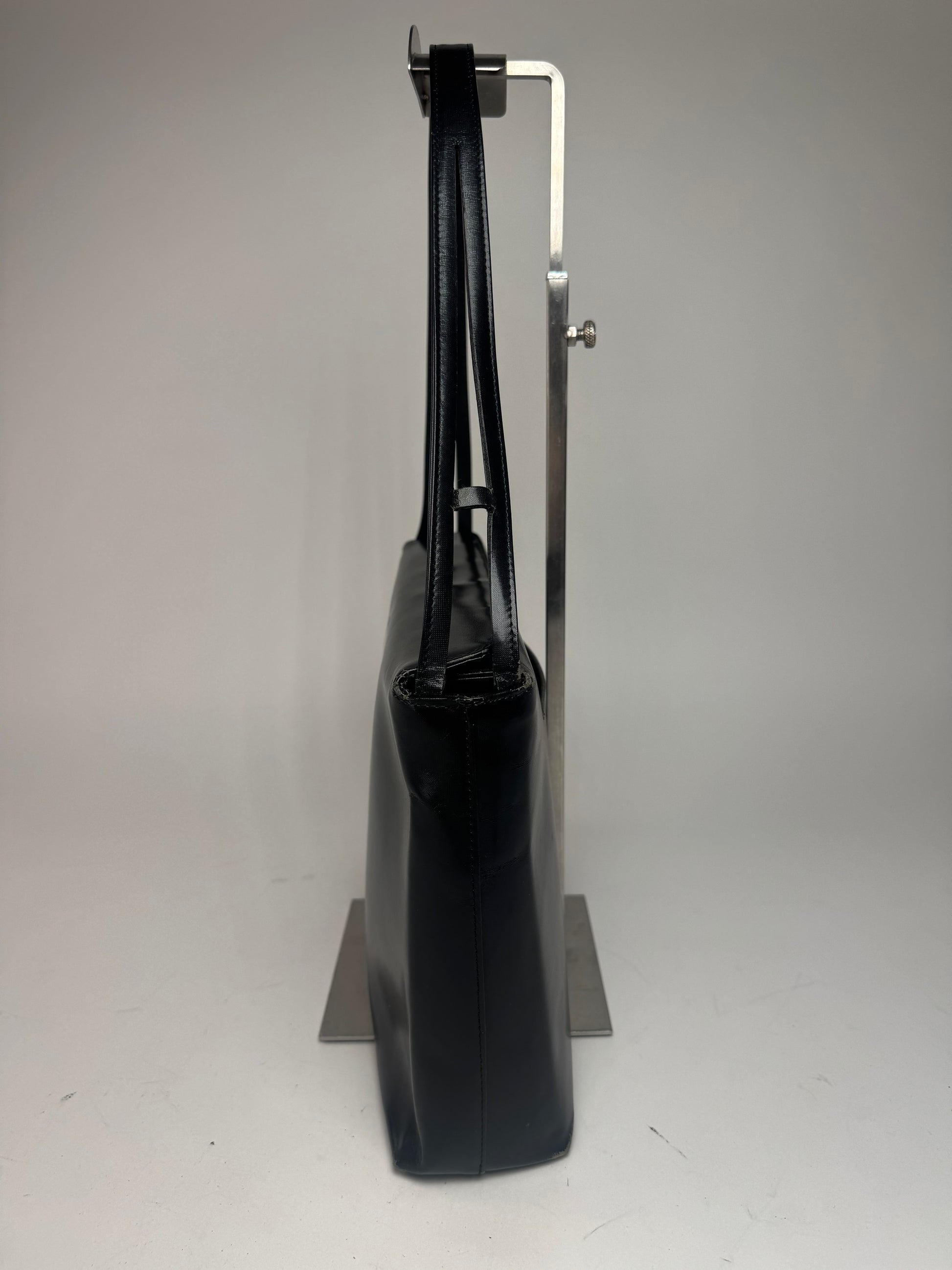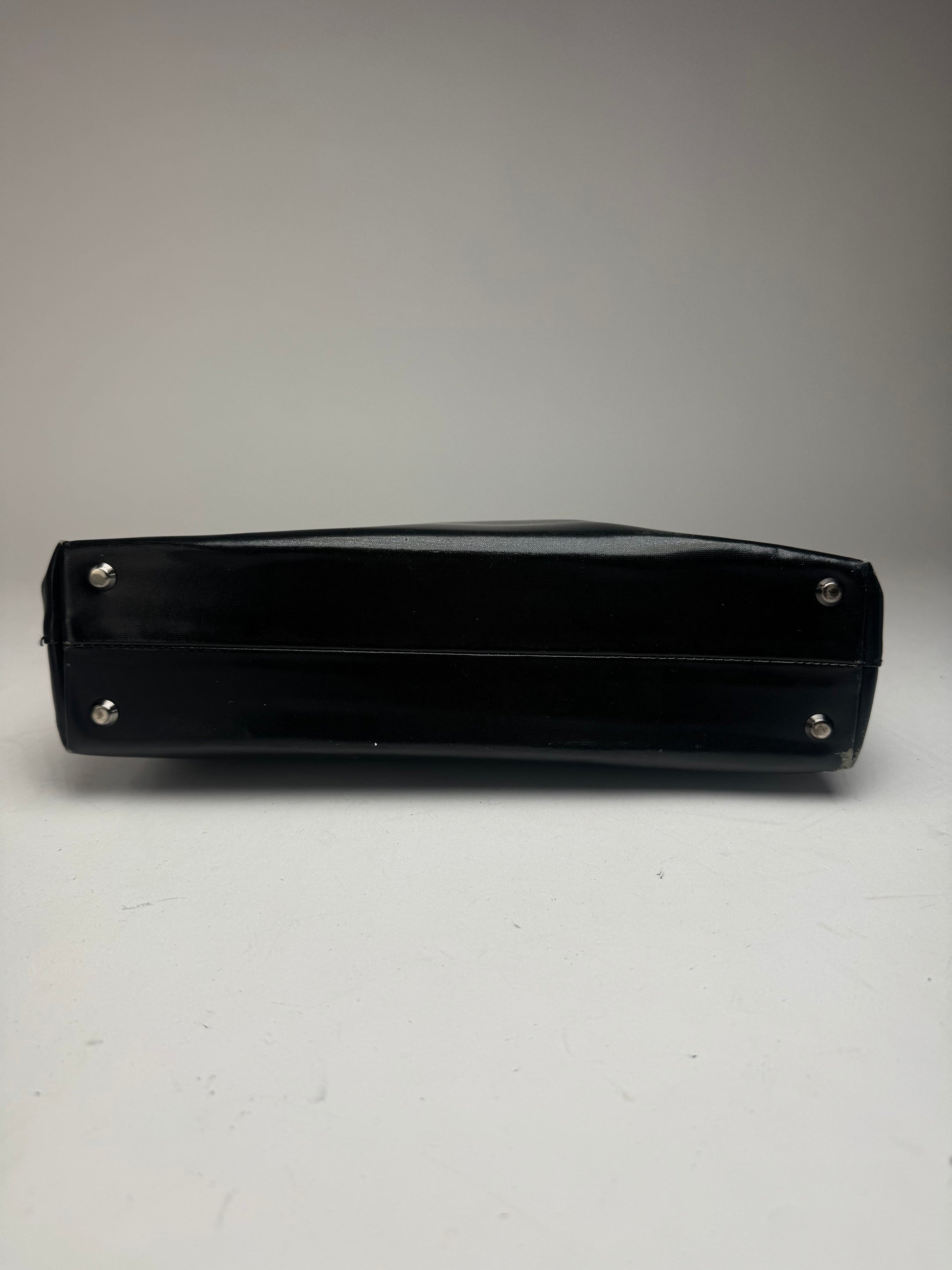 Condition Details: The exterior patent leather is beautiful and shiny in very good condition with only light creases. The handles are strong and well-shaped. The hardware is clean with minimal signs of wear. The interior polyester lining is clean and well-kept.