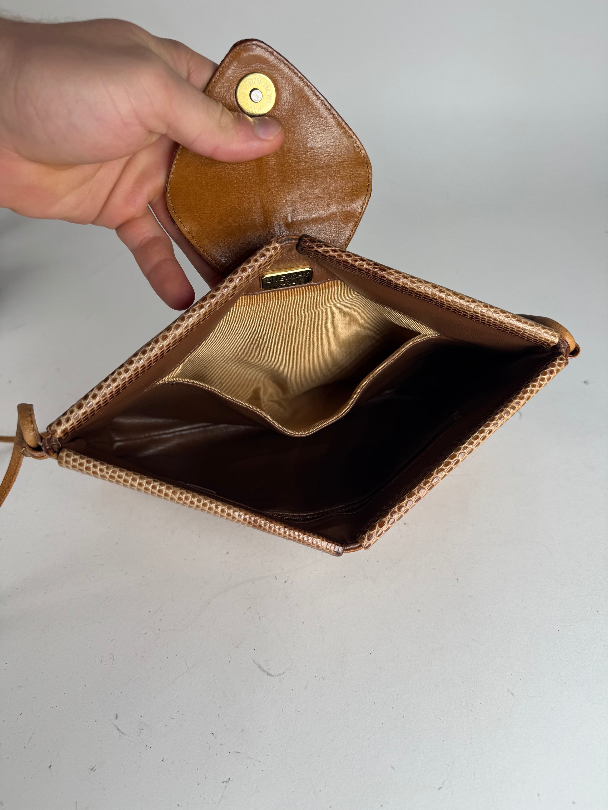Vintage Givenchy Snake Embossed Leather Crossbody Bag Camel