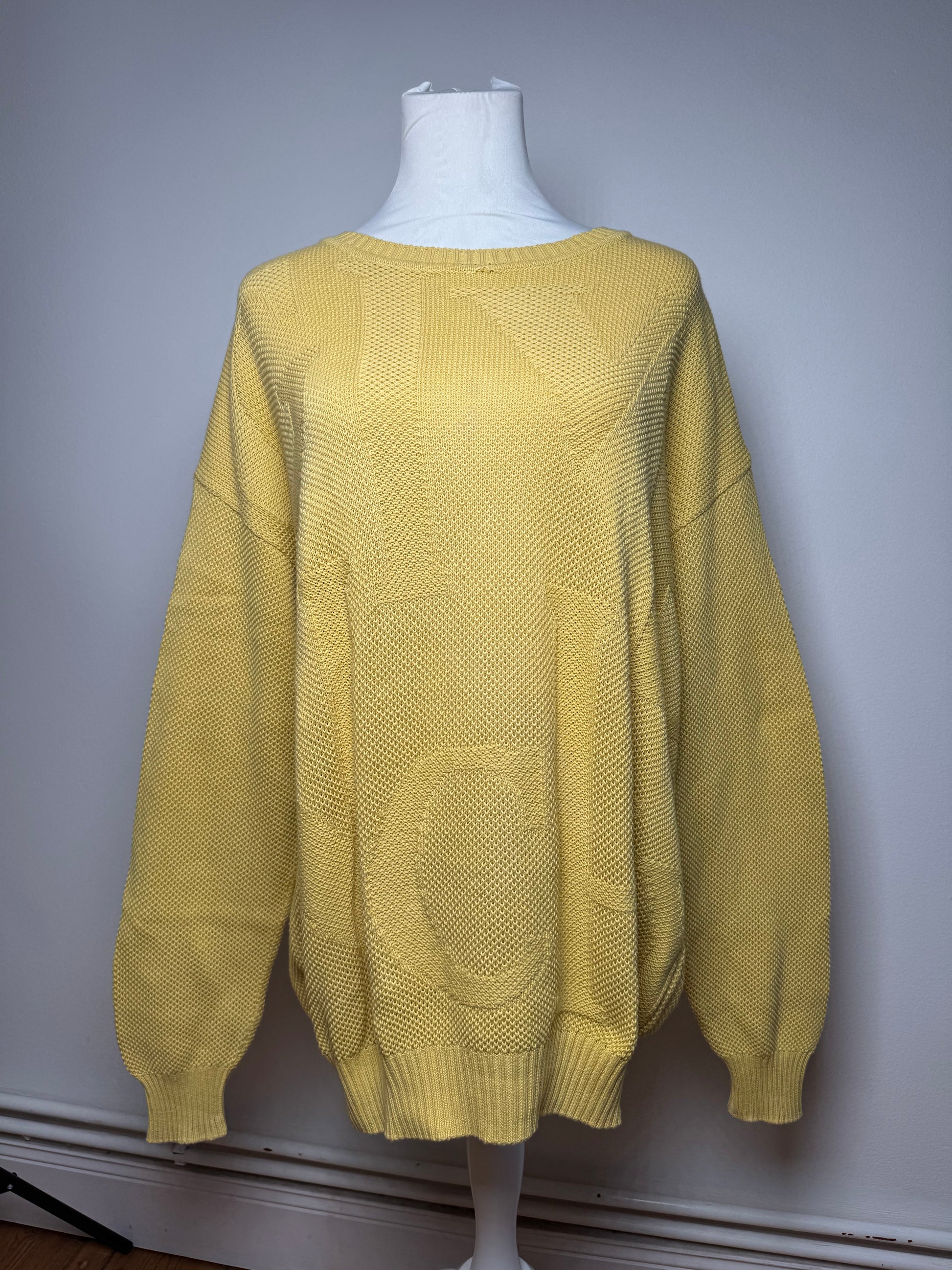 This classic vintage sweater is finely crafted of yellow 100% cotton. The front features subtle Givenchy logo lettering in the same tone for a clean, tonal look.