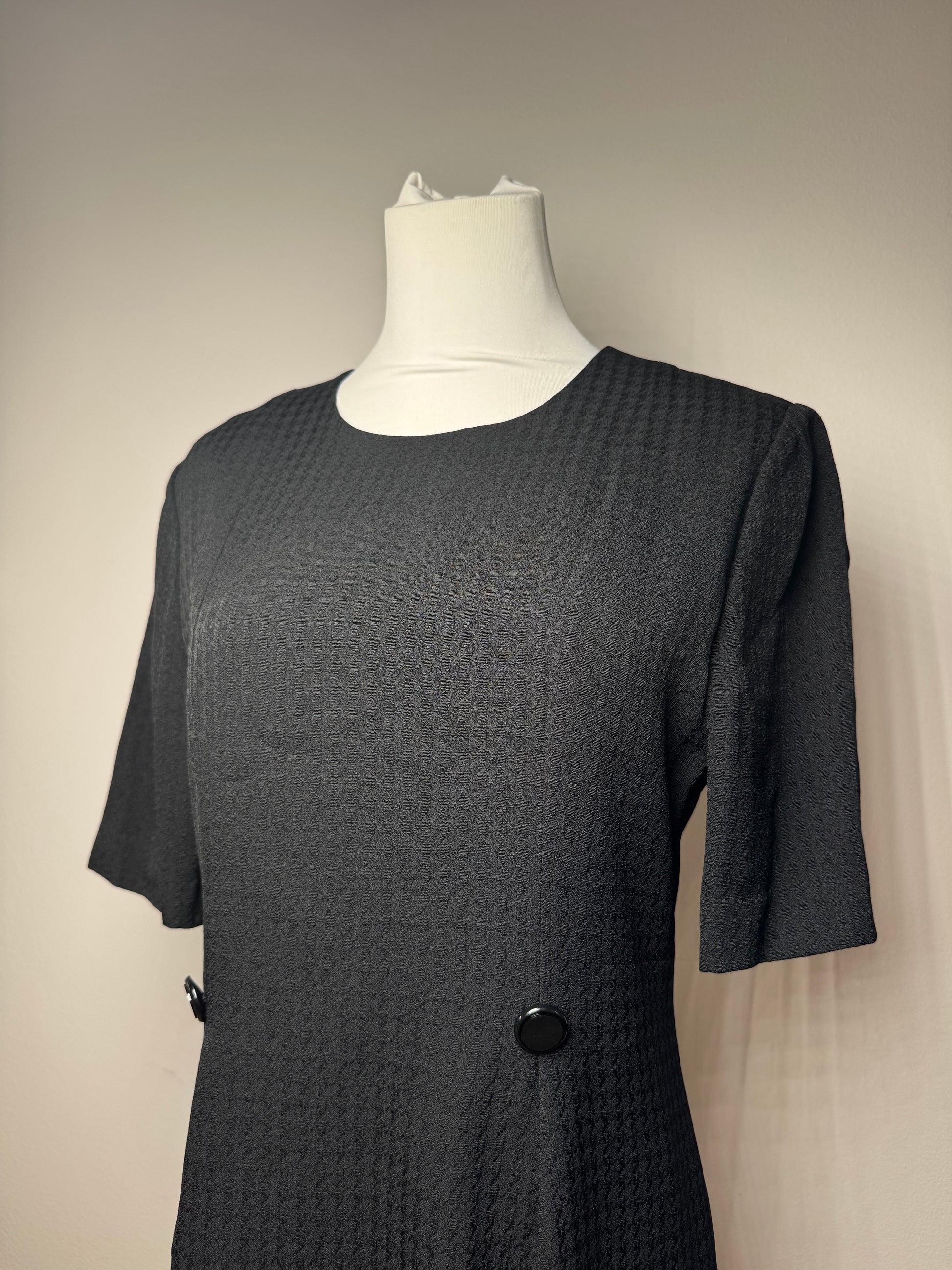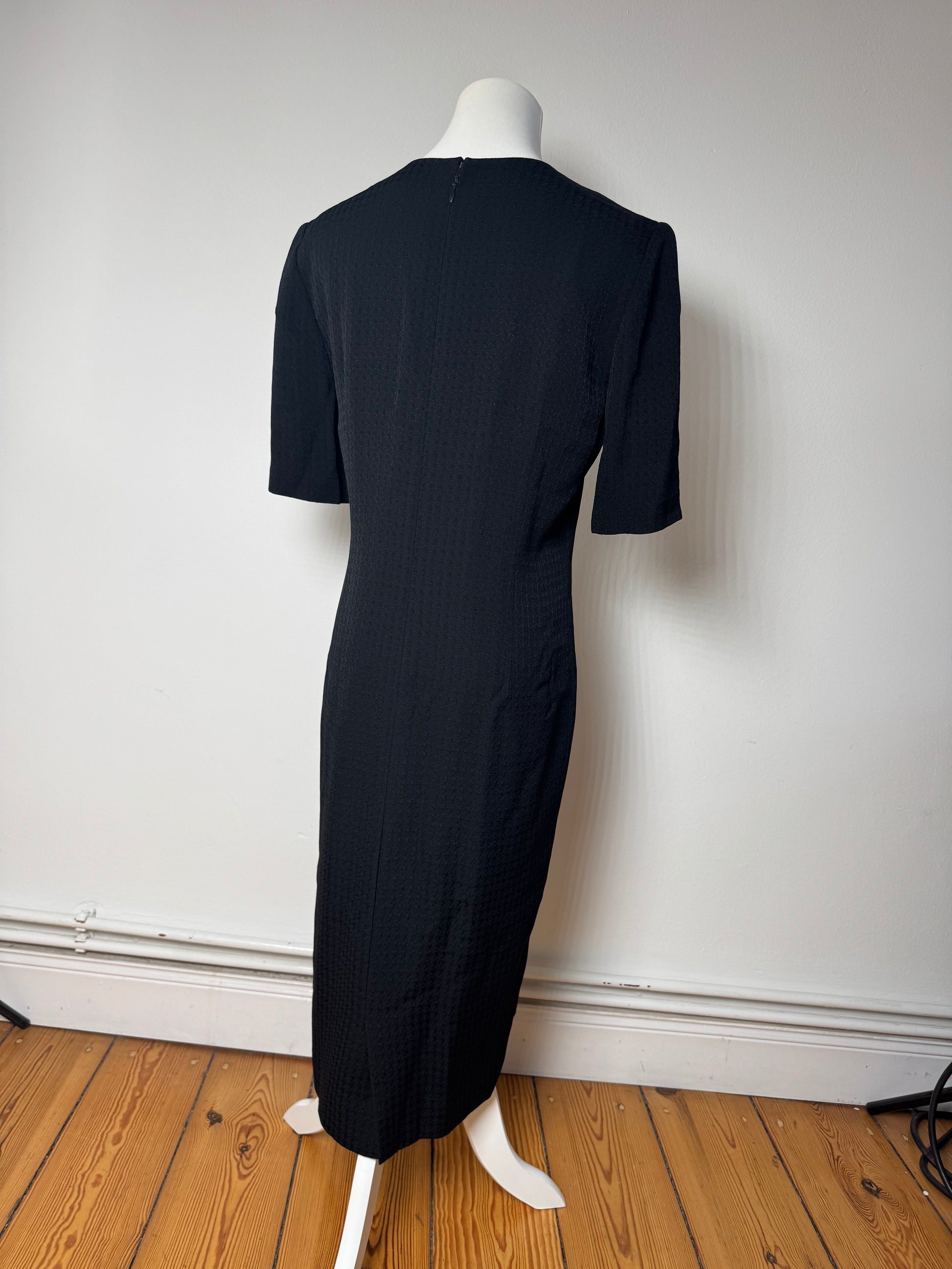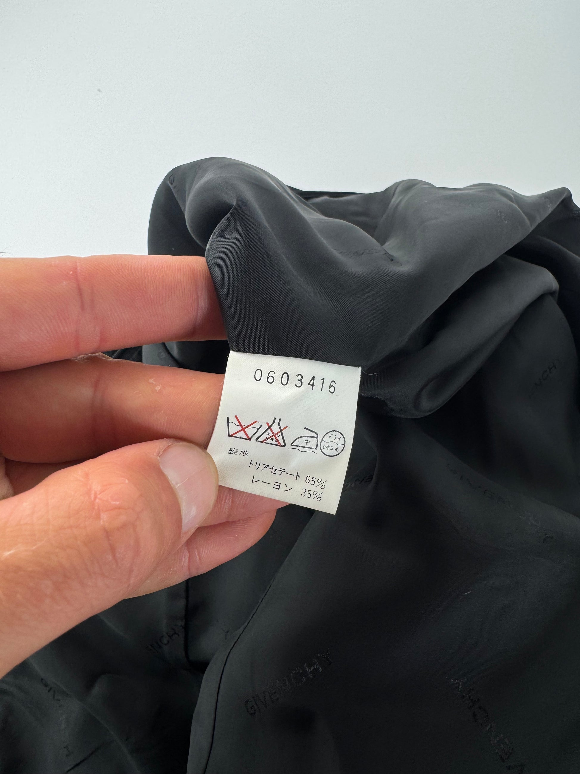 This elegant vintage dress is finely crafted of black fabric composed of 65% triacetate and 35% viscose. The lining is made of black viscose and features subtle Givenchy logo detailing. The design includes black plastic hardware elements.