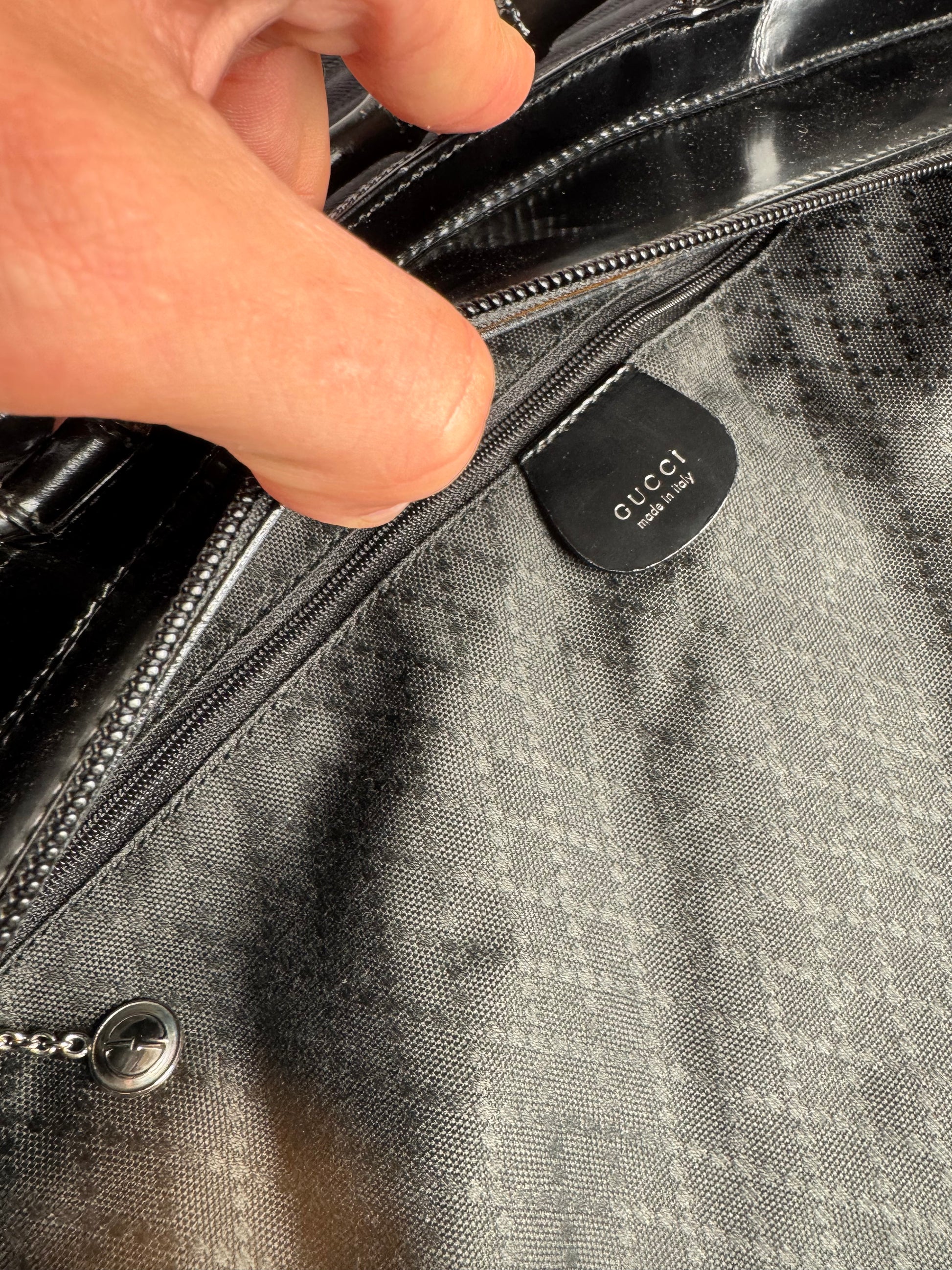 Condition Details: The exterior canvas and patent leather trim are clean with minimal signs of use. The bamboo handles are well preserved. The silver-tone hardware is bright with light surface scratches. The interior lining is in excellent condition.
