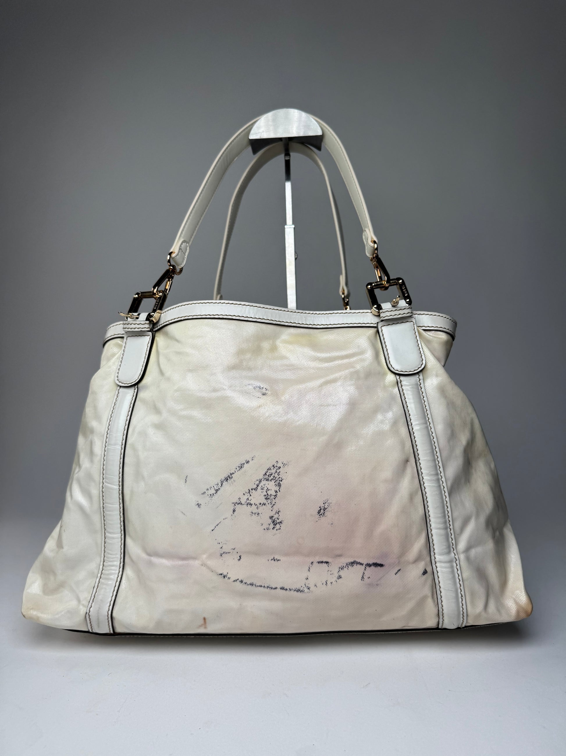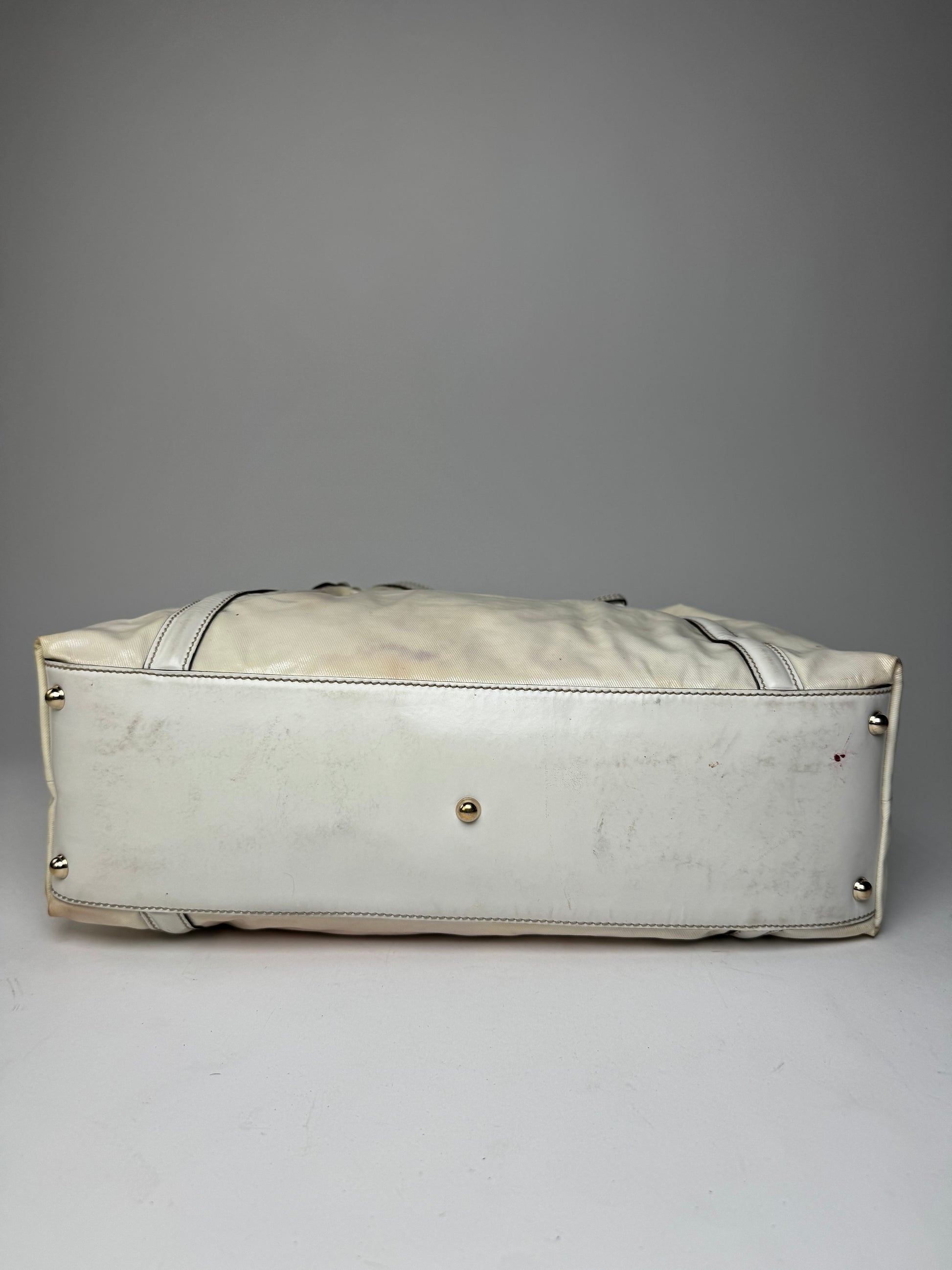 Vintage Gucci GG Leather / Polyester Tote Bag White