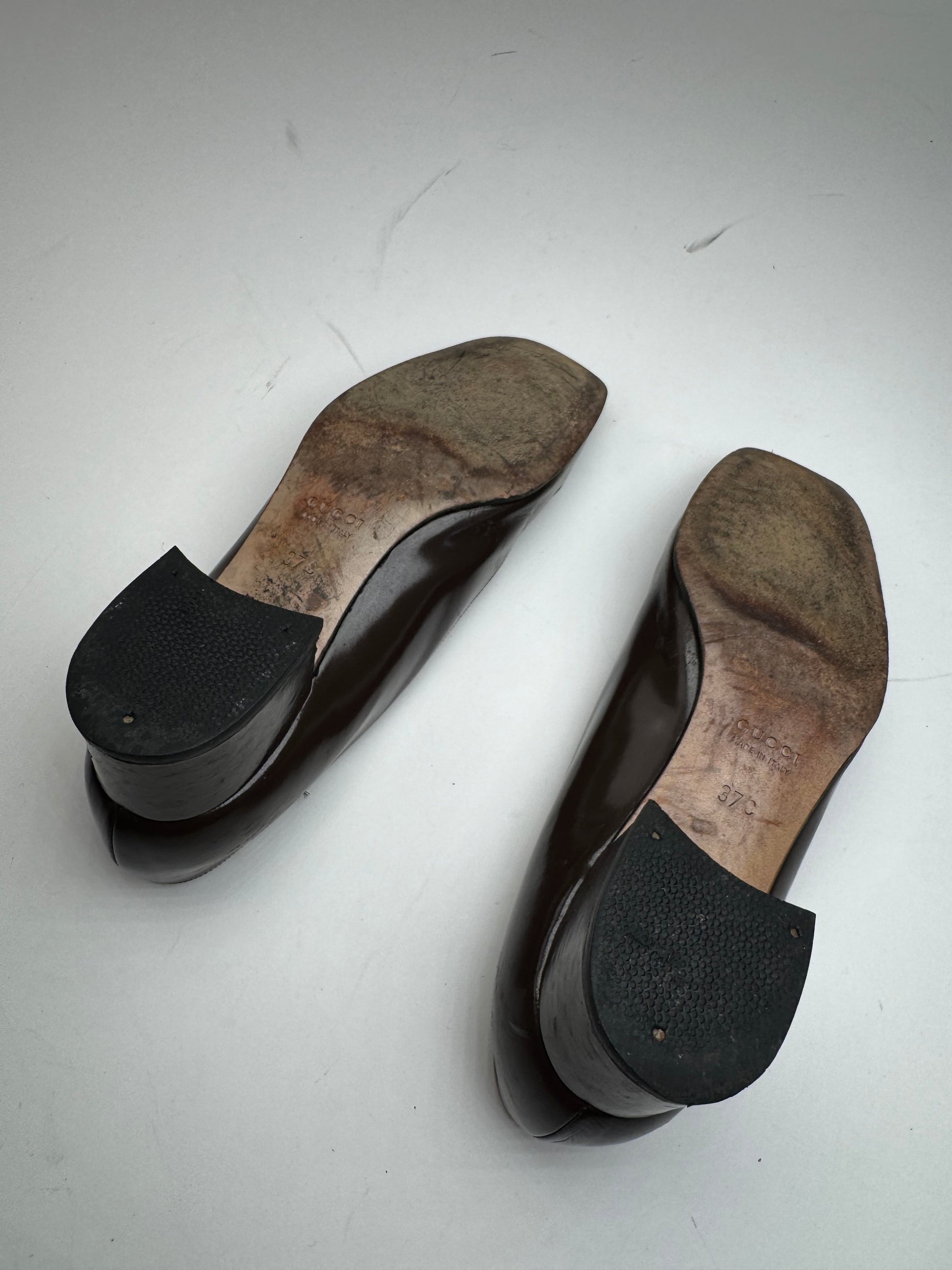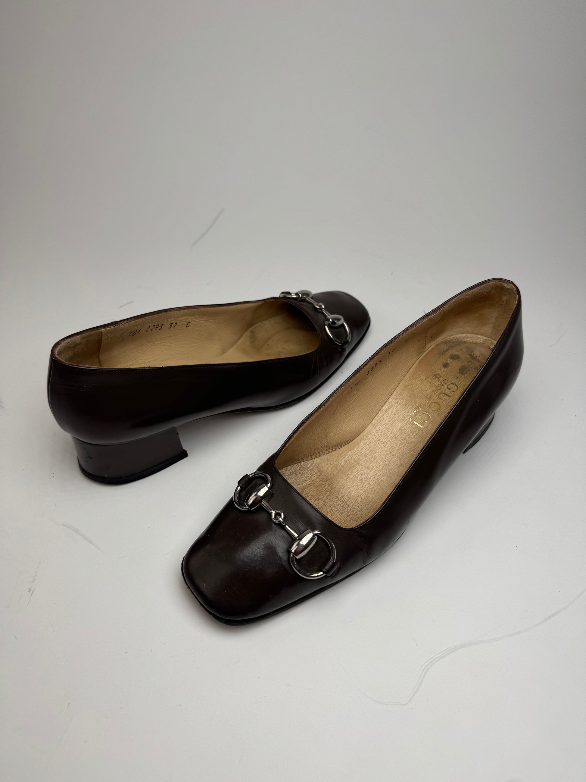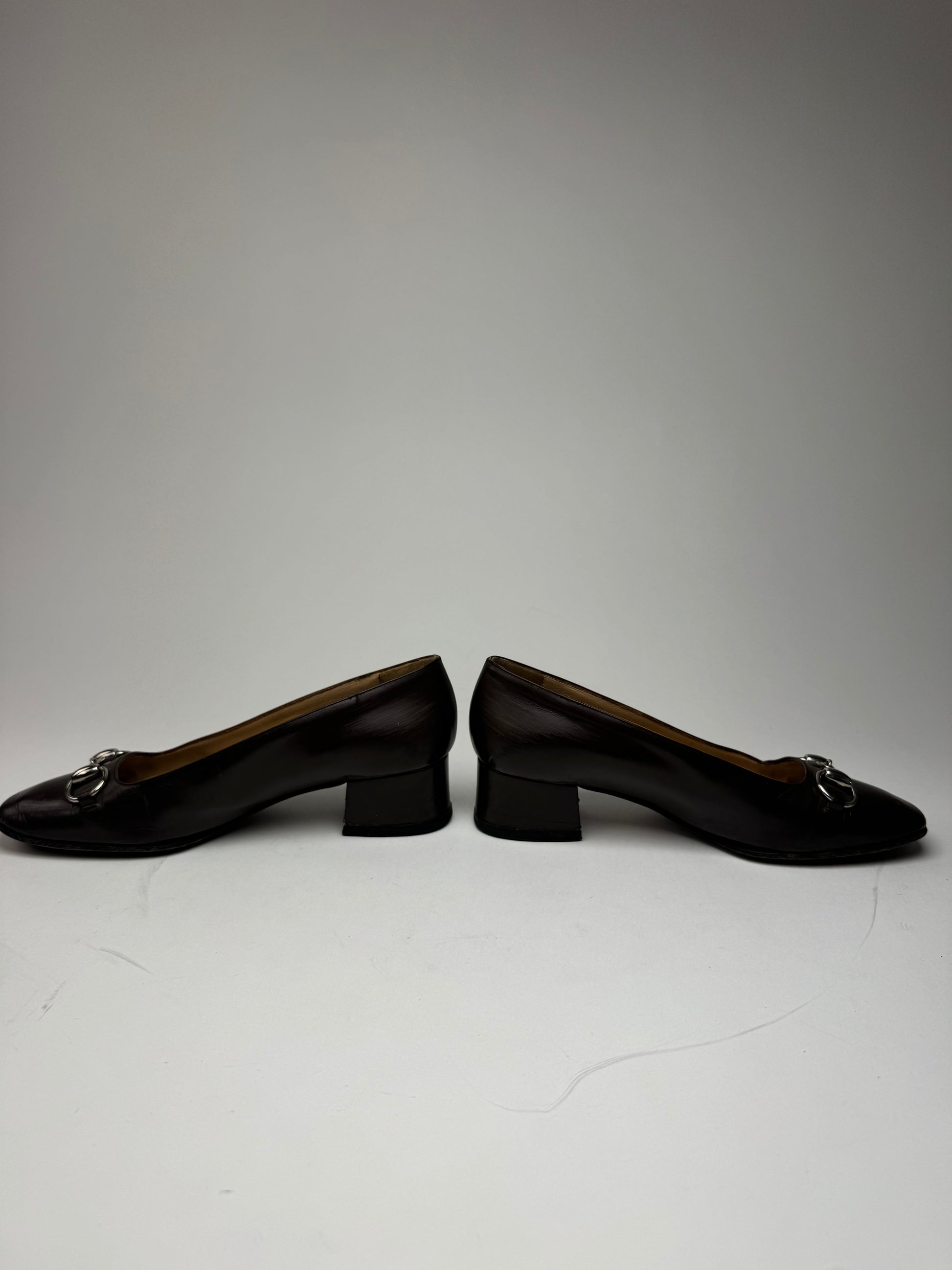 Vintage Gucci Horsebit Patent Leather Pumps Brown 37C