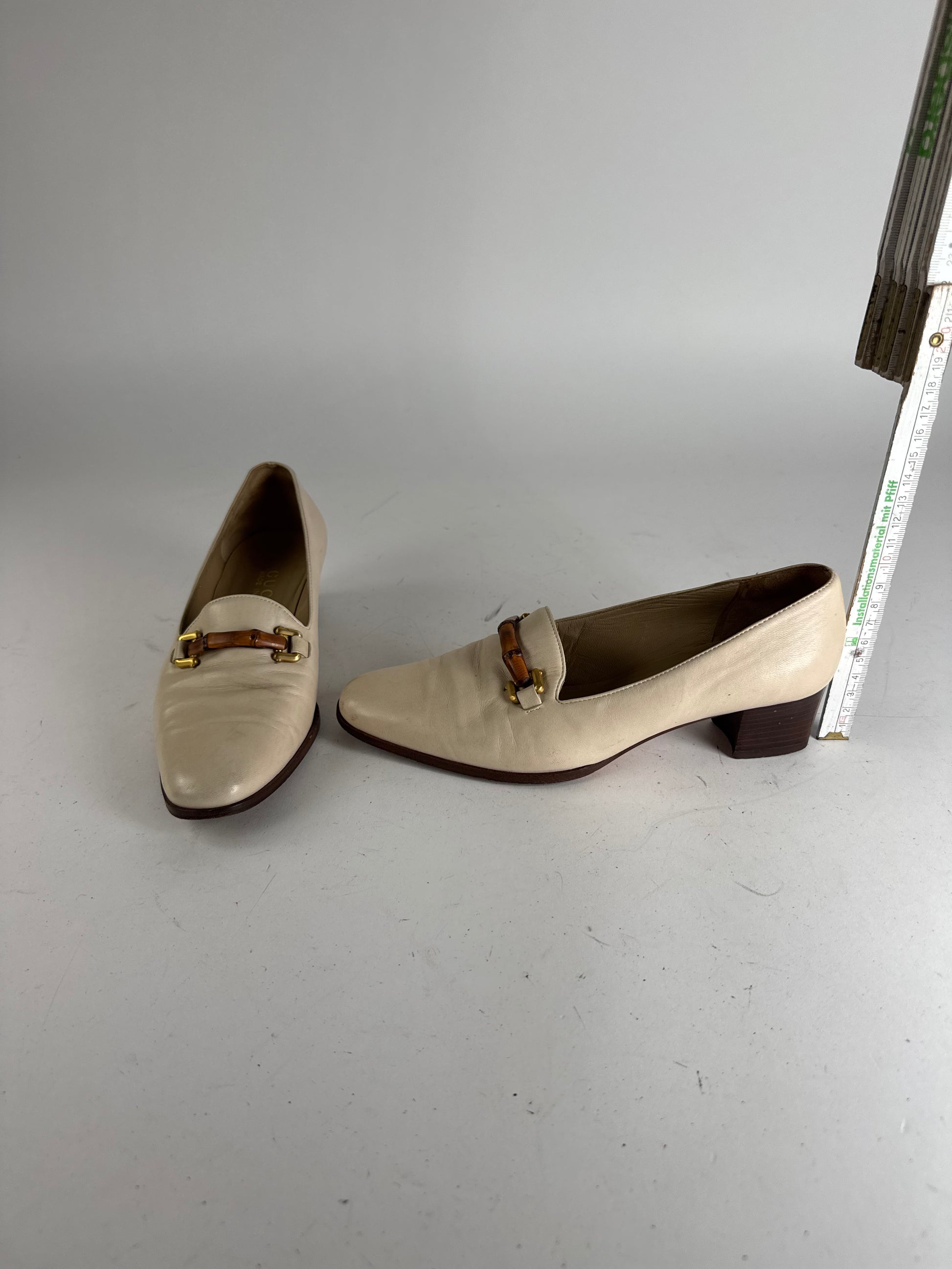 Vintage Gucci Leather Bamboo Pumps 36,5 Beige Black