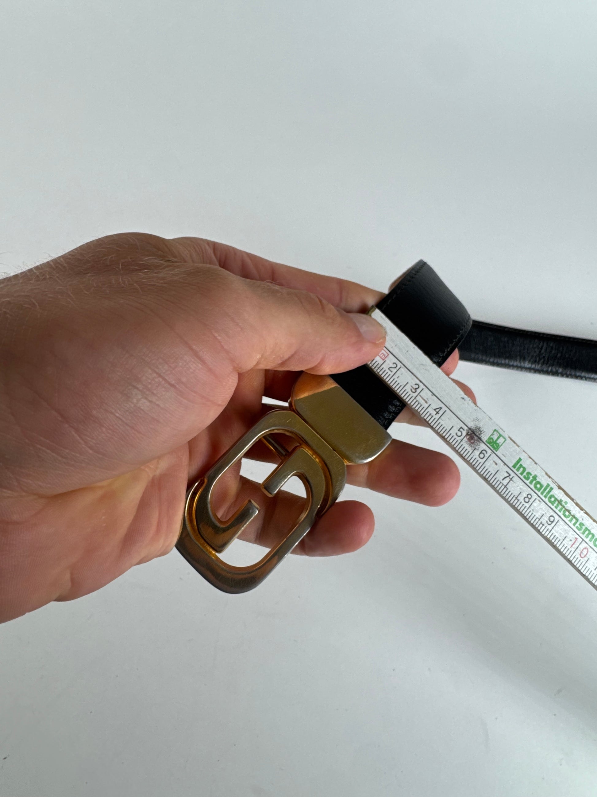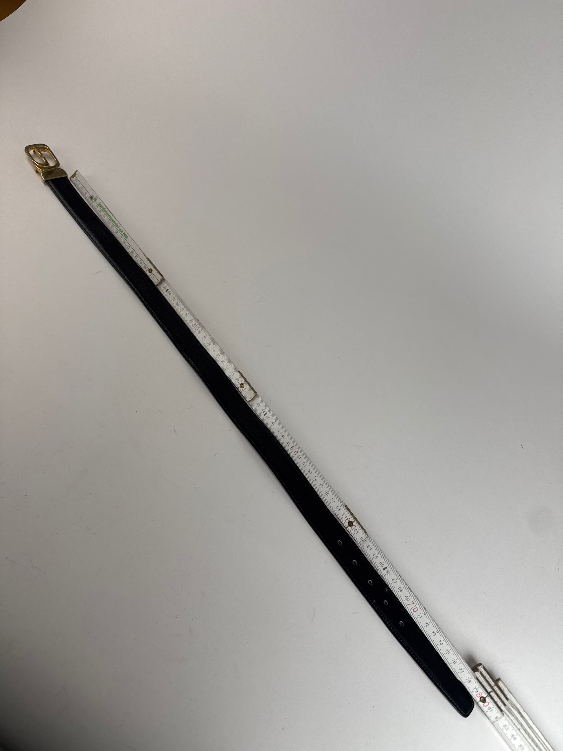 This vintage belt is finely crafted of black leather with a brown leather interior and features a gold-tone steel buckle with the iconic interlocking GG logo. A timeless accessory that reflects Gucci’s signature blend of bold branding and classic craftsmanship.
