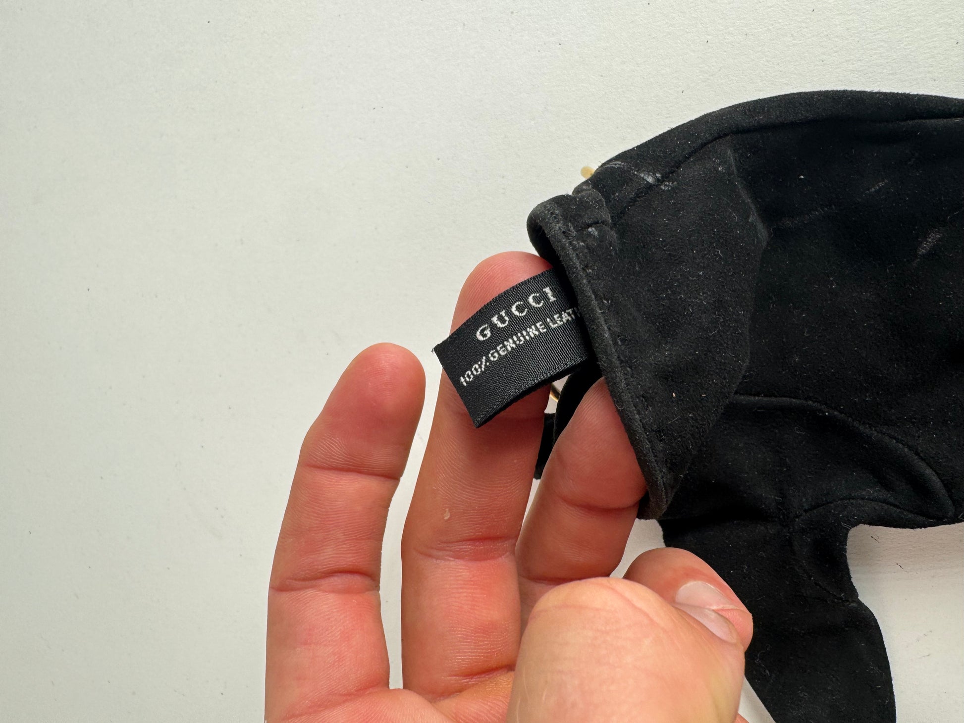 GUCCI Vintage Gloves. These elegant gloves are finely crafted of black grained nappa leather with a gold-tone steel horsebit appliqué. The interior is lined in black canvas.