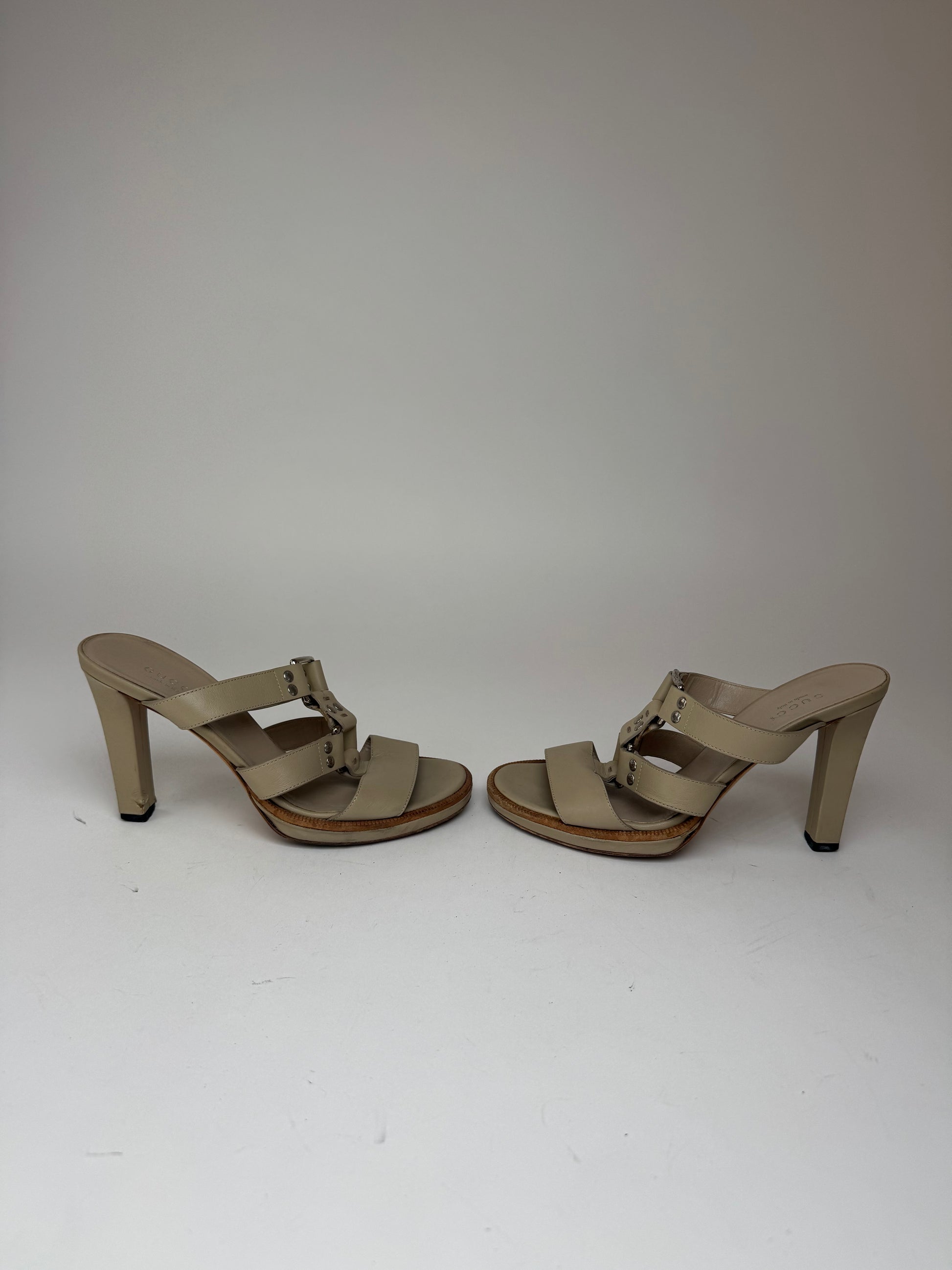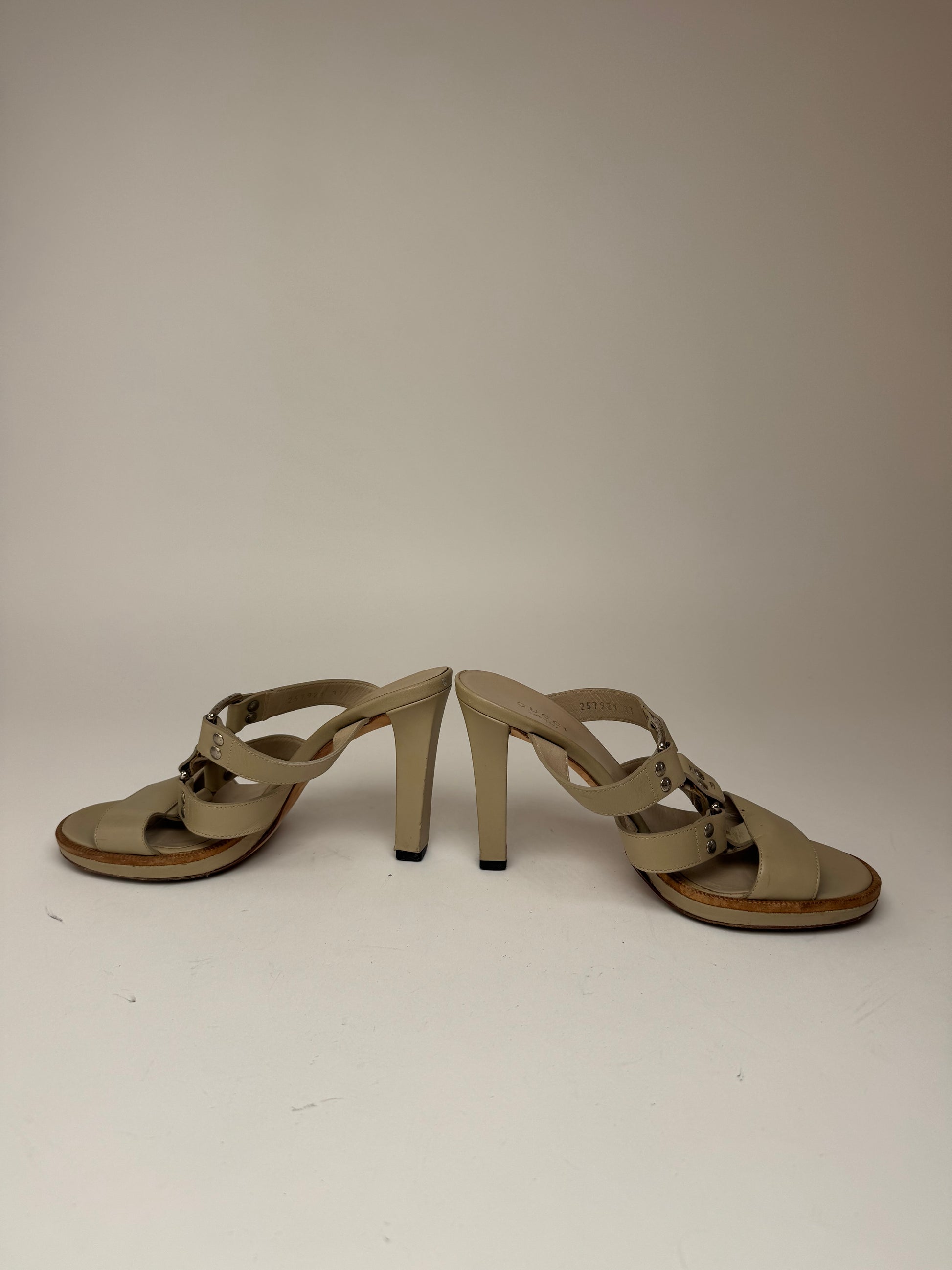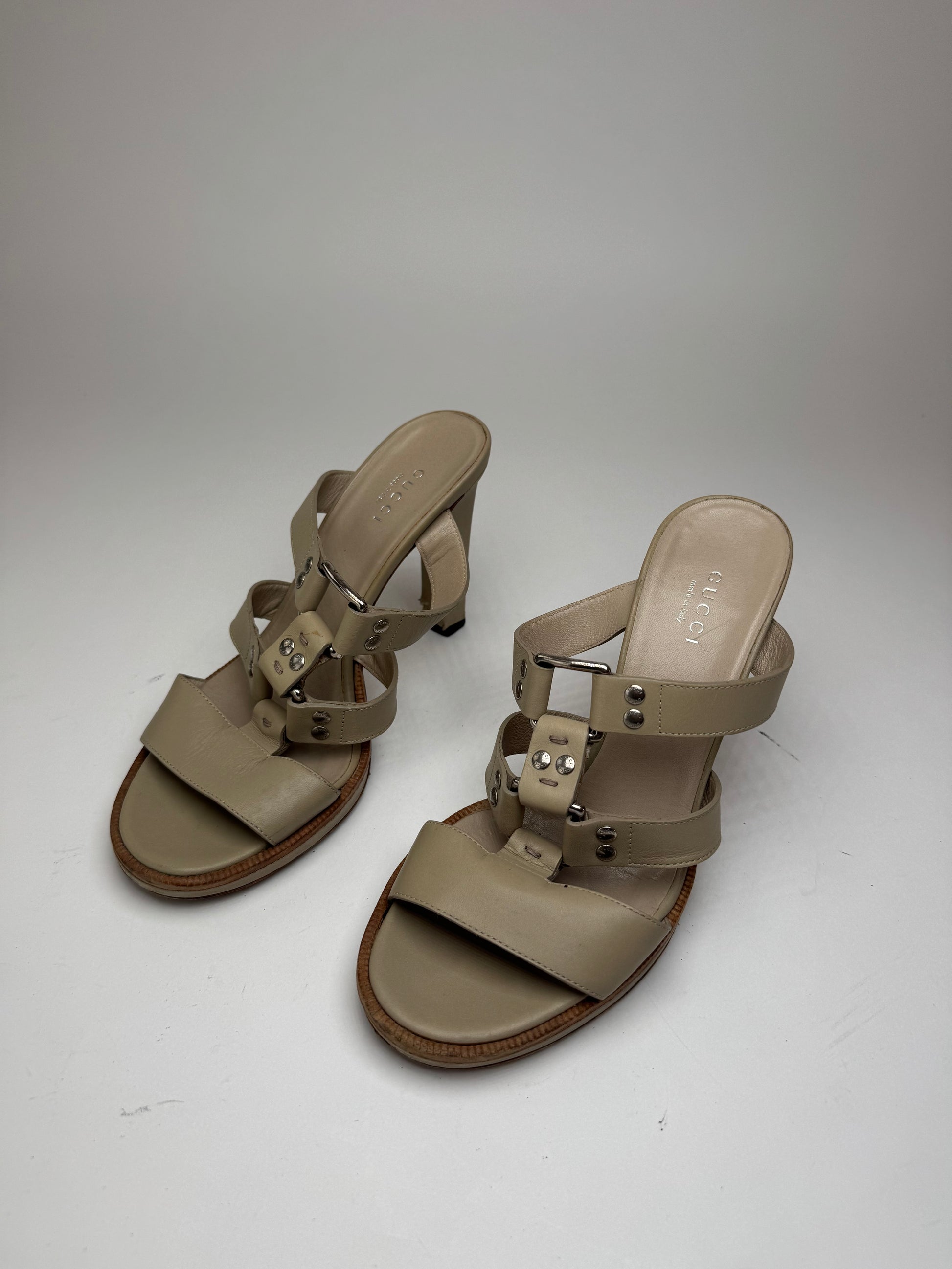 GUCCI Vintage Grey-Beige Leather Studded Pumps.