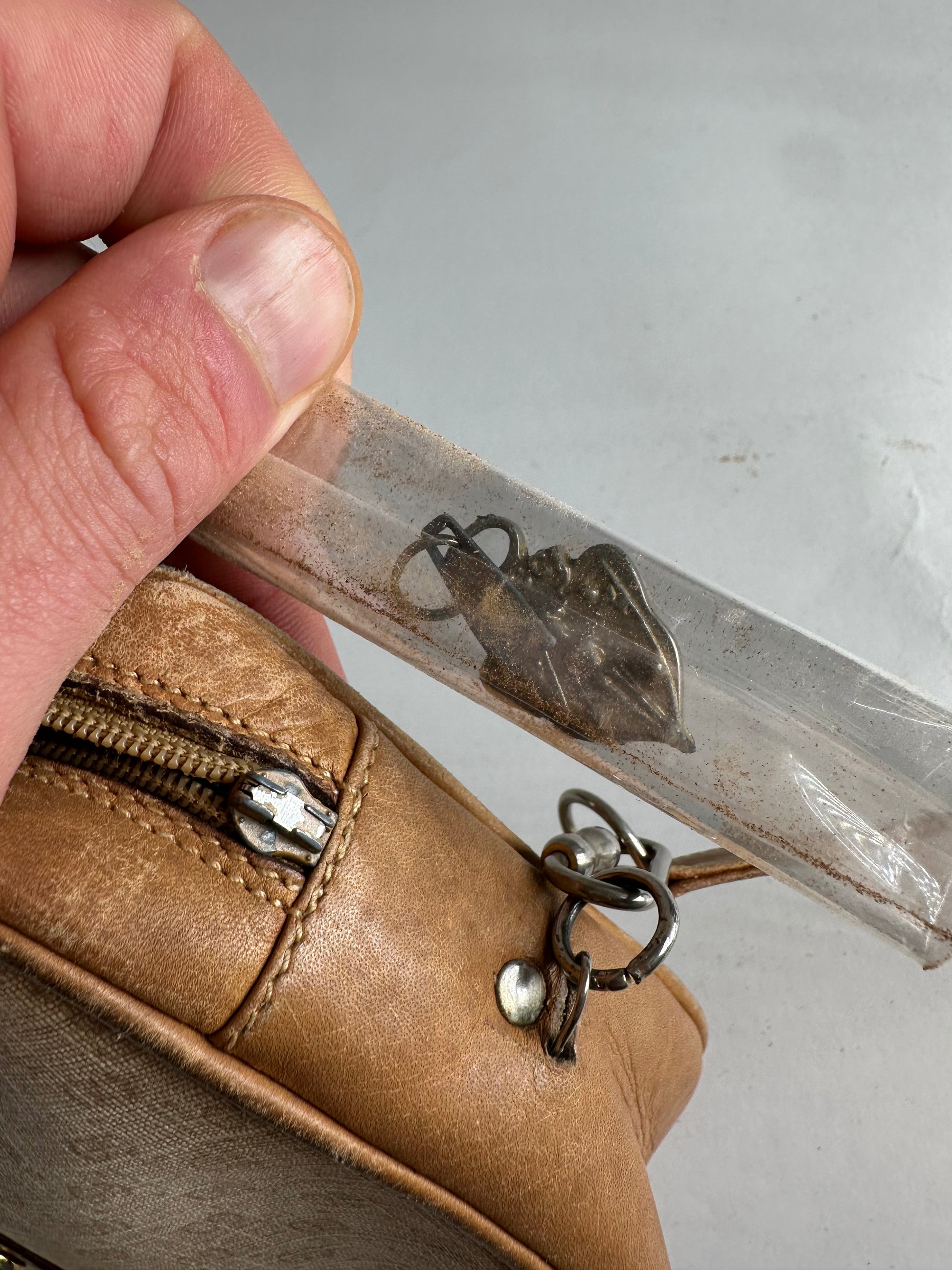 Condition Details: The exterior leather shows light signs of wear. The zipper pull is missing. The interior coated lining has been partially removed, remains slightly dusty, and would benefit from further cleaning. The hardware shows minor scratches.