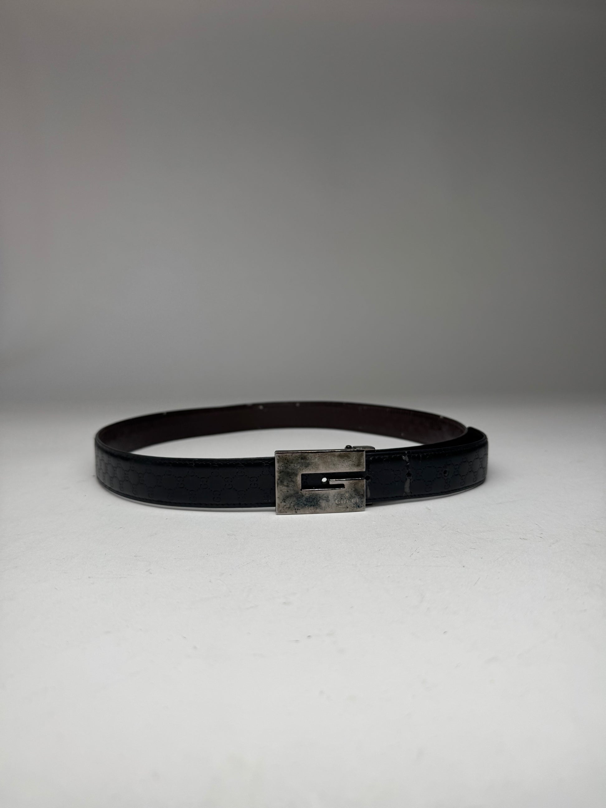 This classic unisex belt is crafted in the iconic Gucci monogram canvas and features an anthracite-tone steel buckle.
