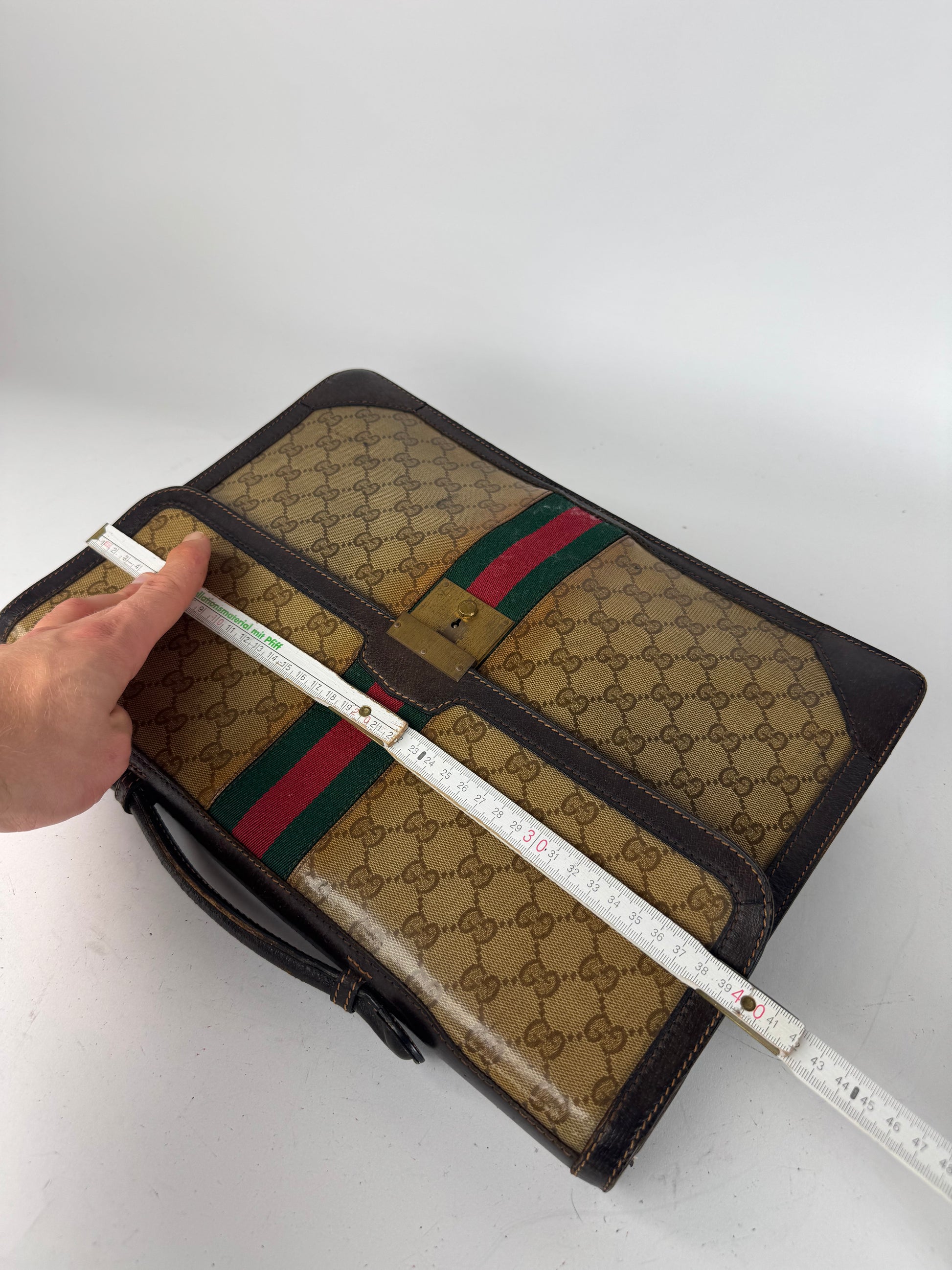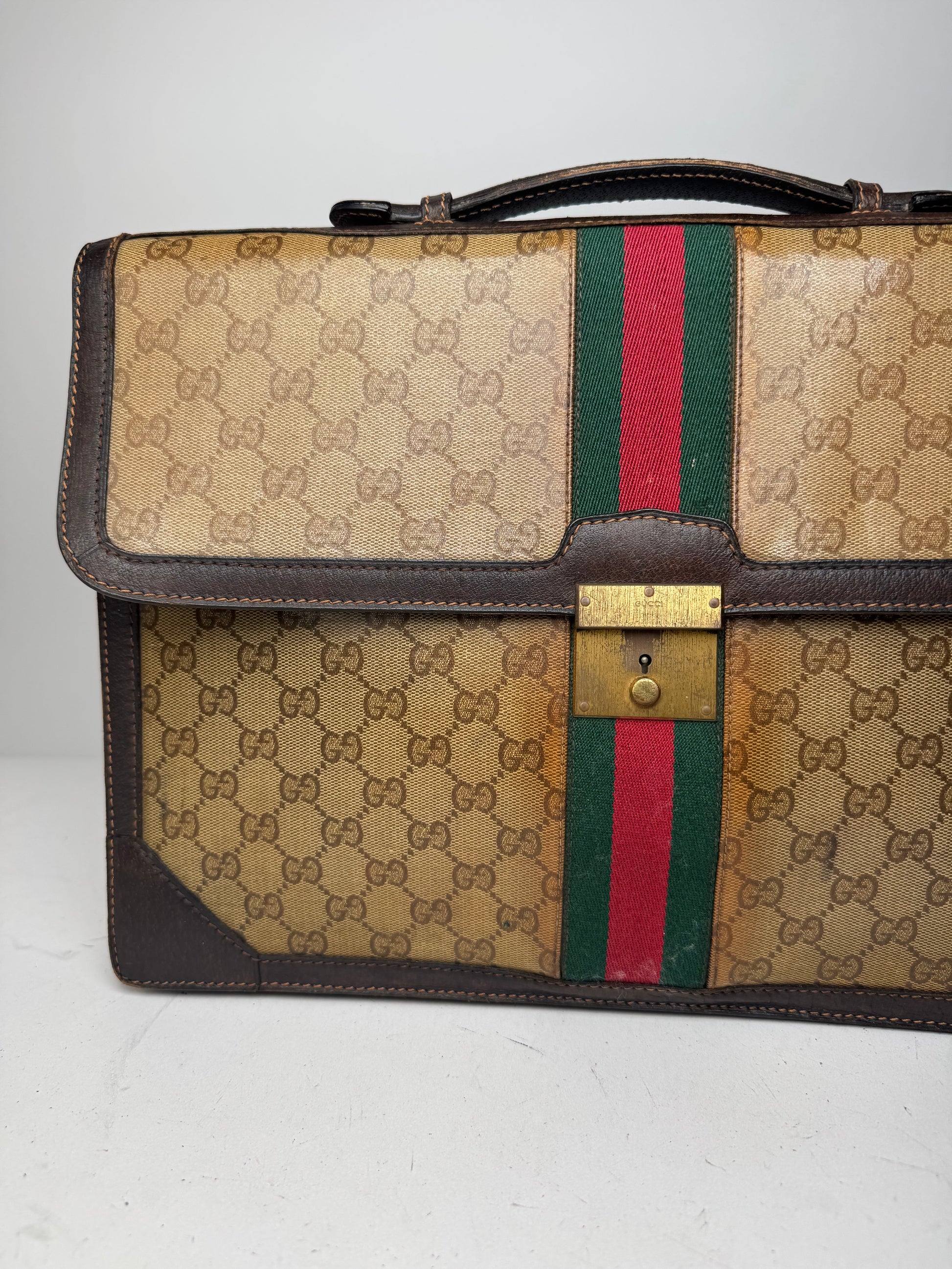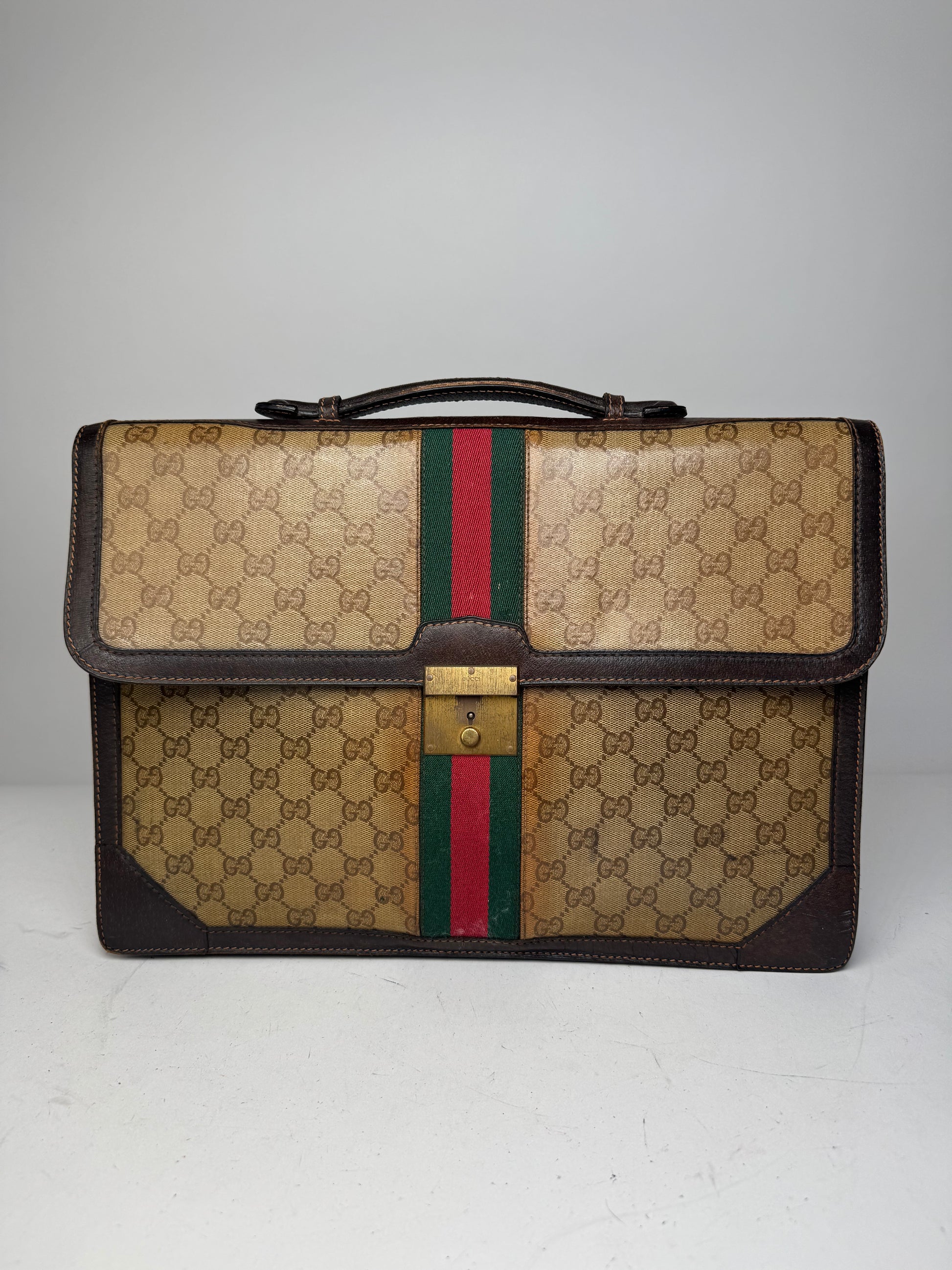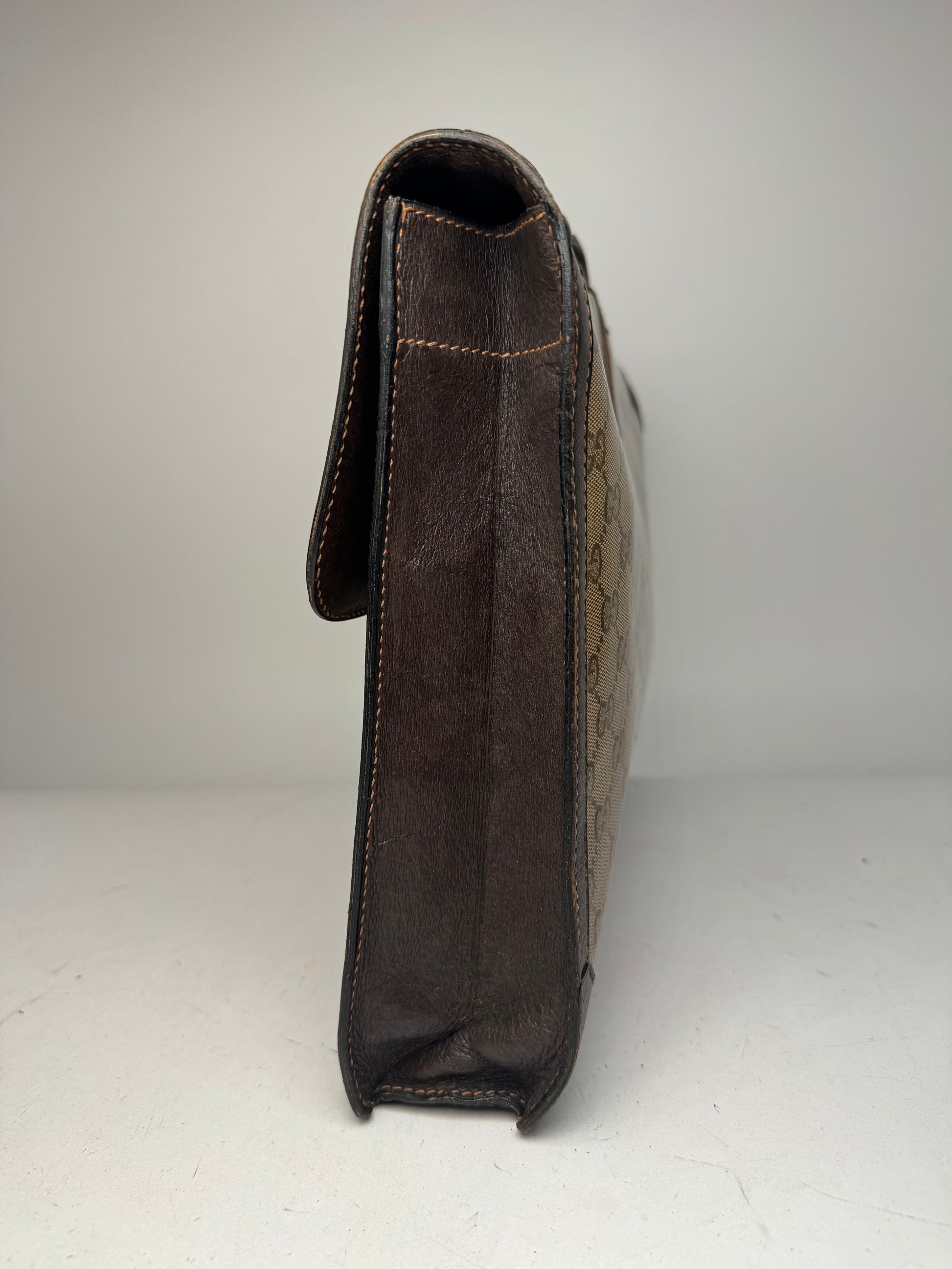 Vintage Gucci Monogram Leather Bruefcase Brown Golden